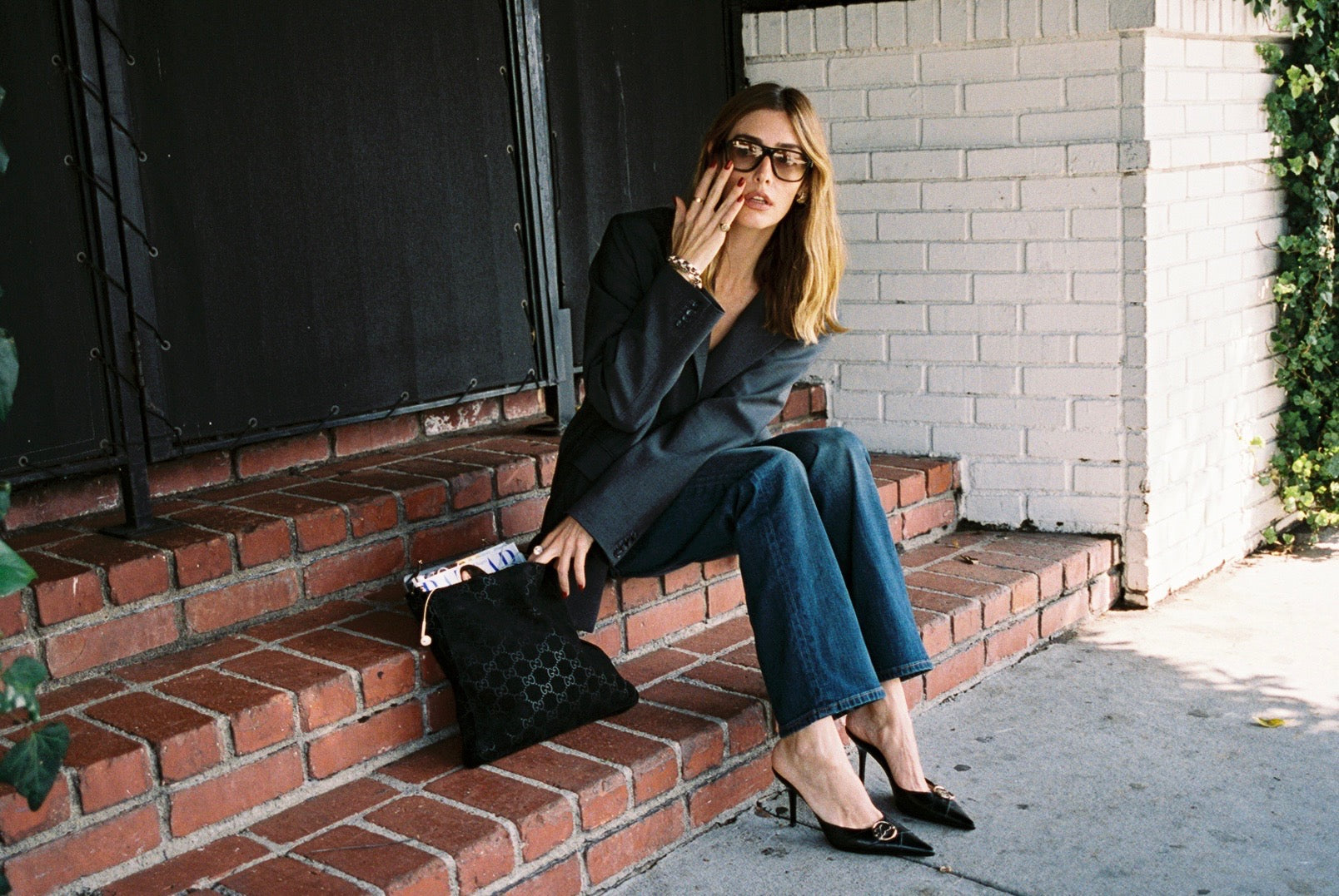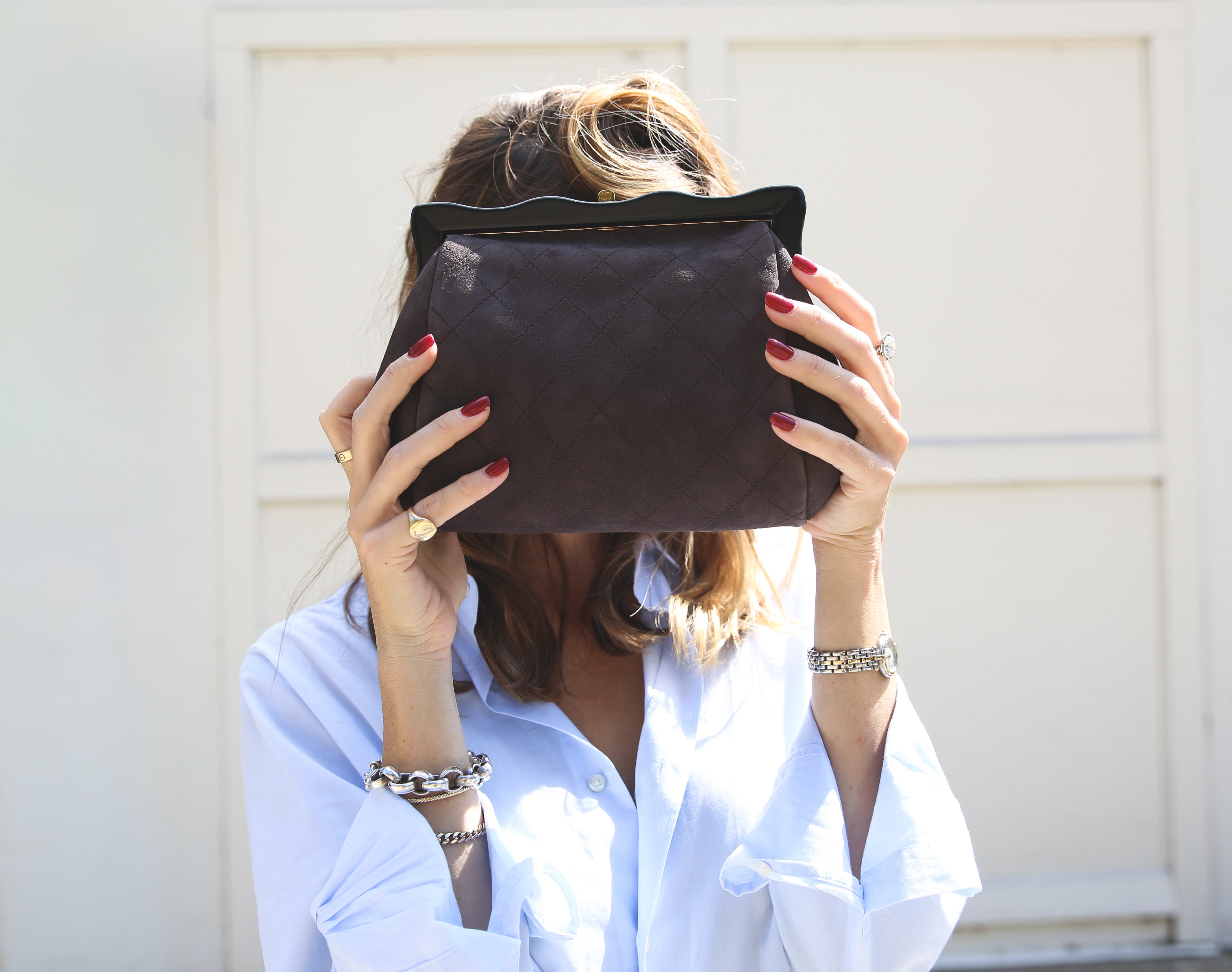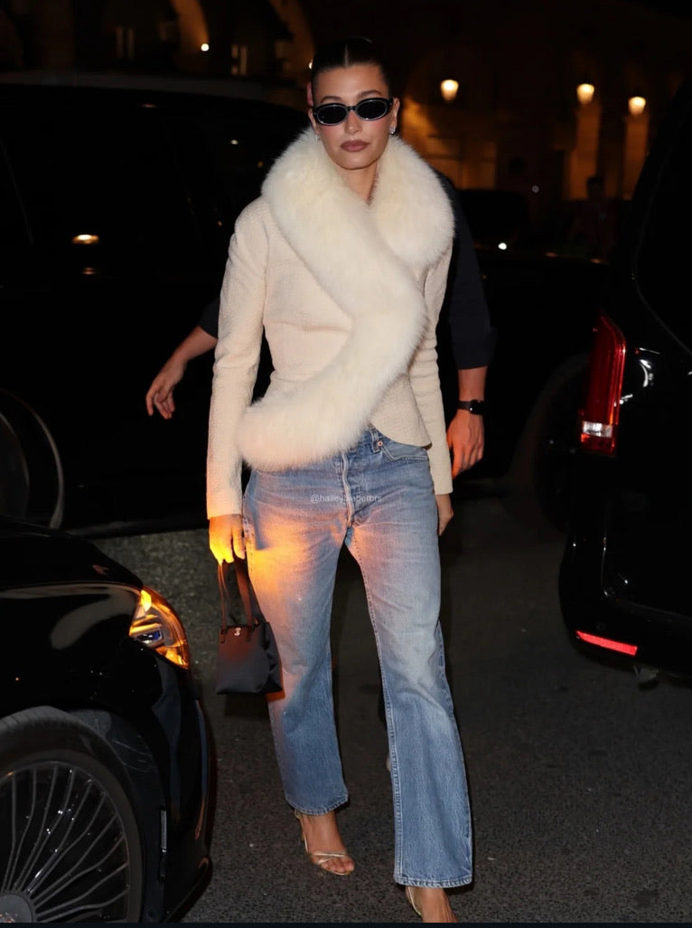 Haley Bieber in our Vintage Chanel Handbag and Vintage Manolo Blahnik Slingbacks at Paris Fashion Week