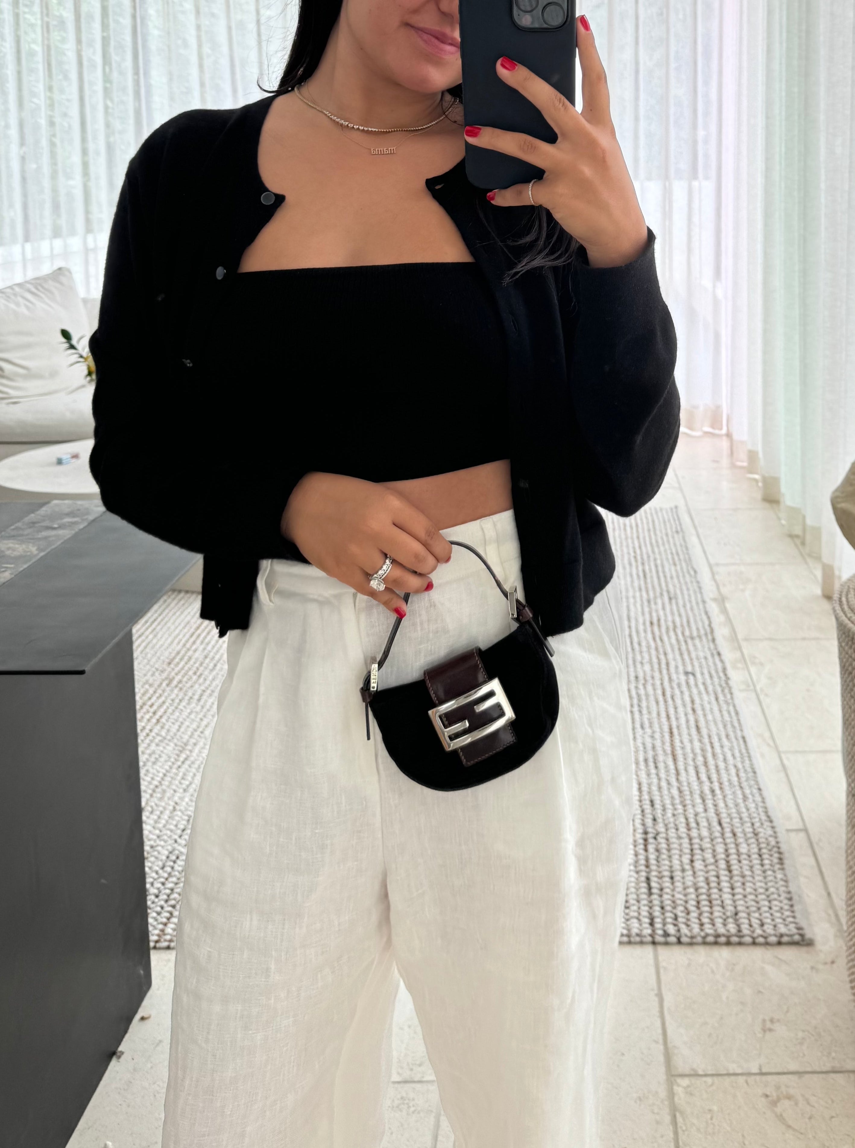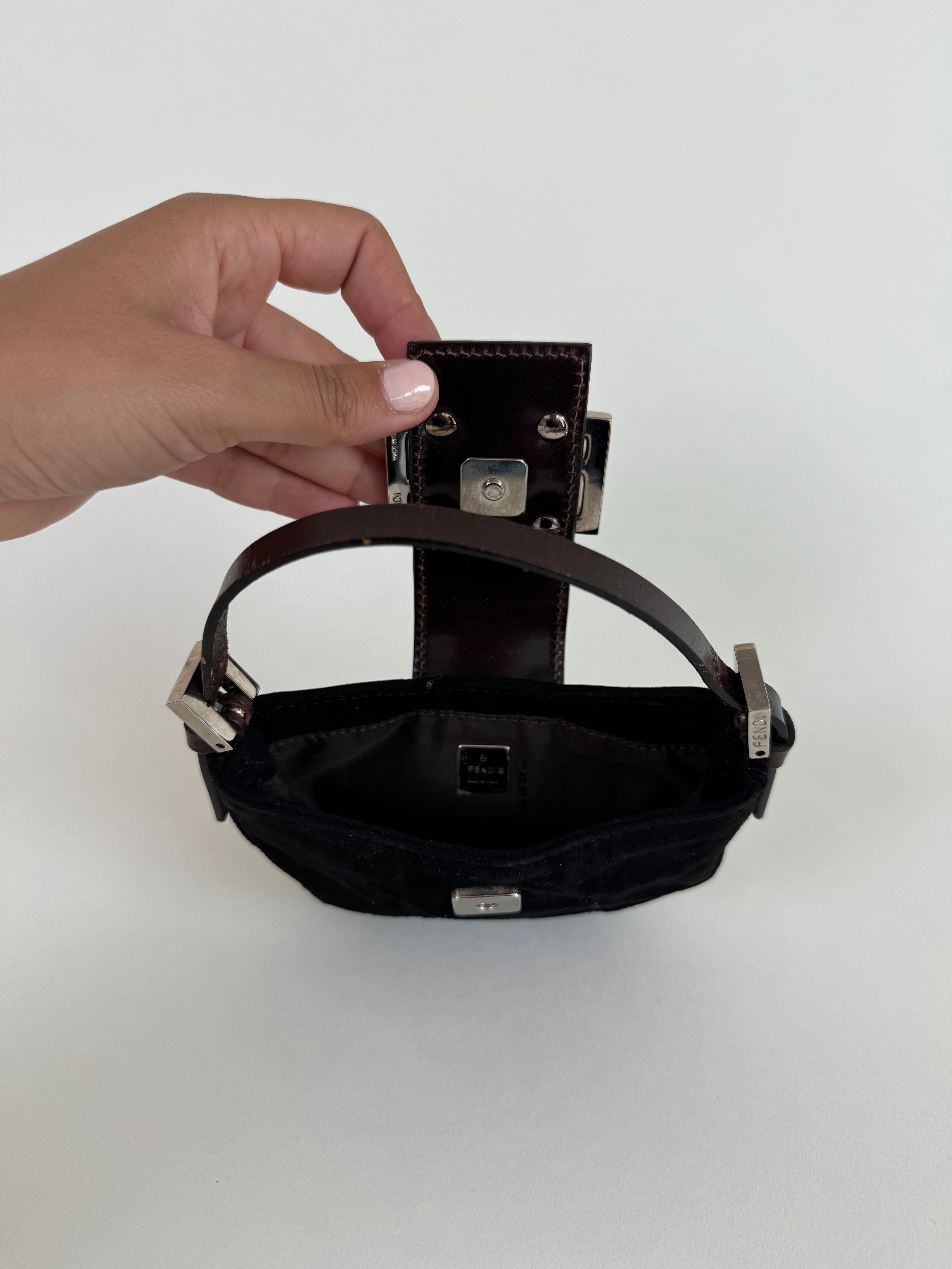 View Similar ProductsBlack Suede Bag ft. Brown Handle and Flap