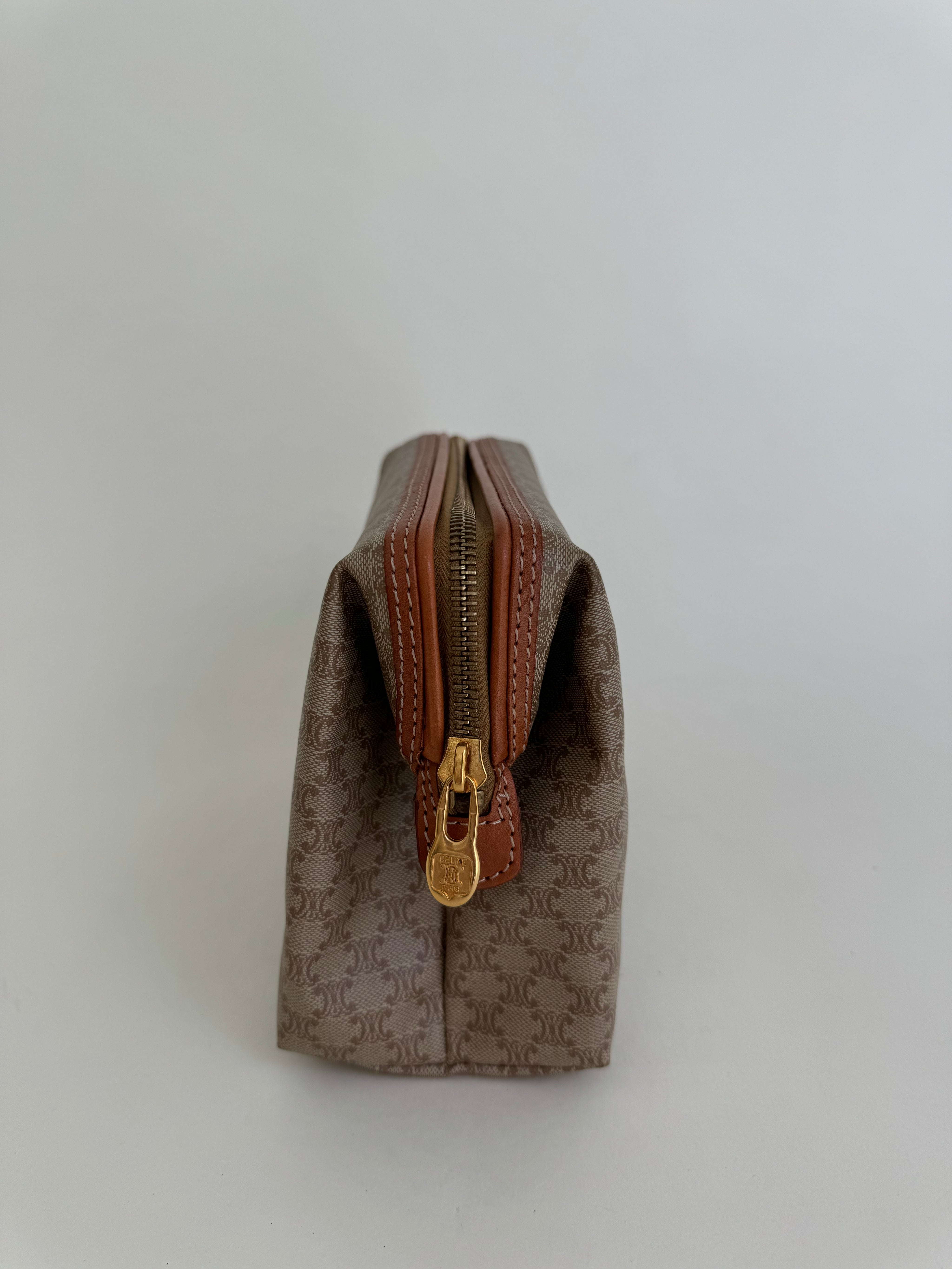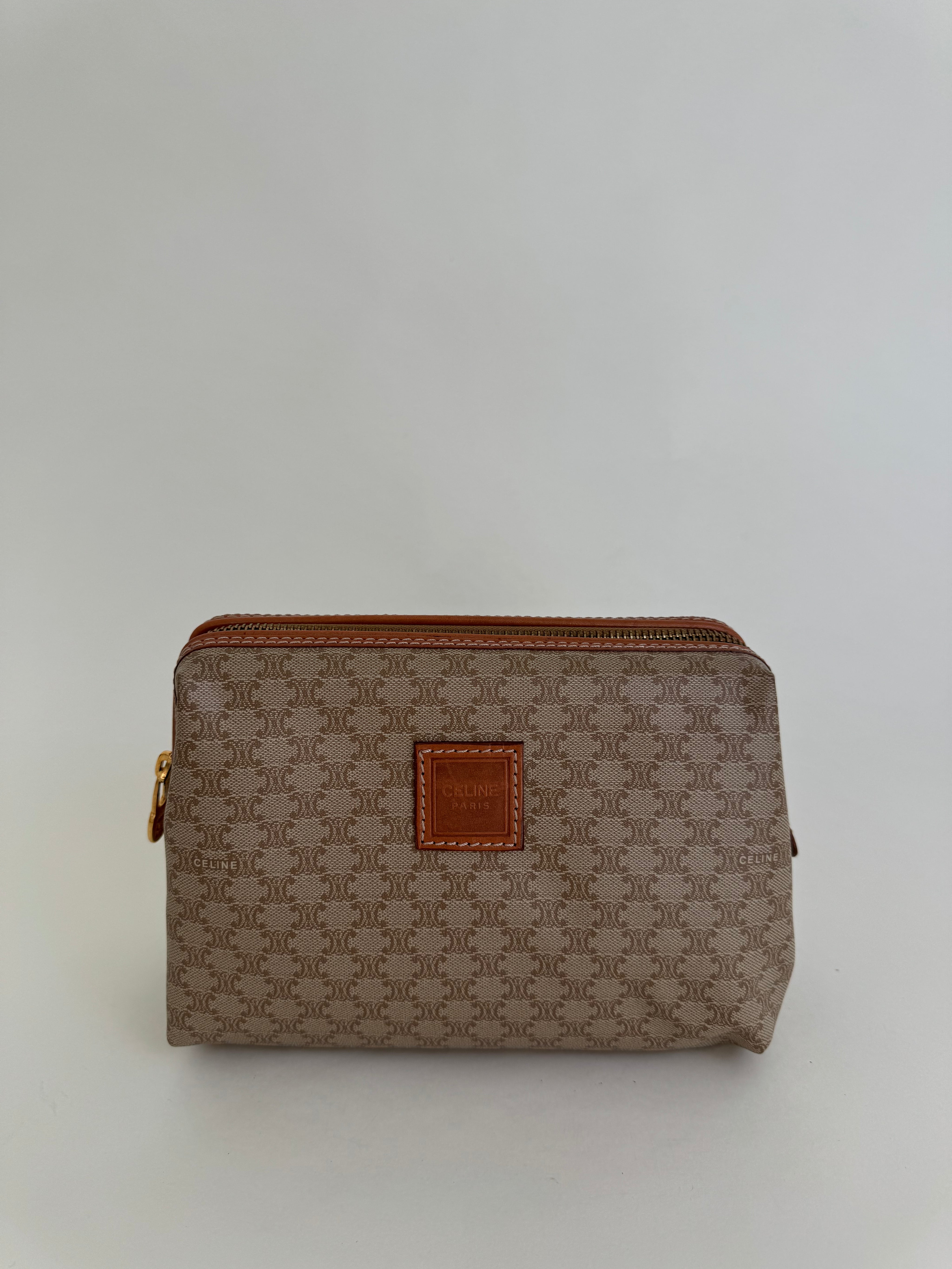 Celine Cream PVC Leather Cosmetic Pouch Medium