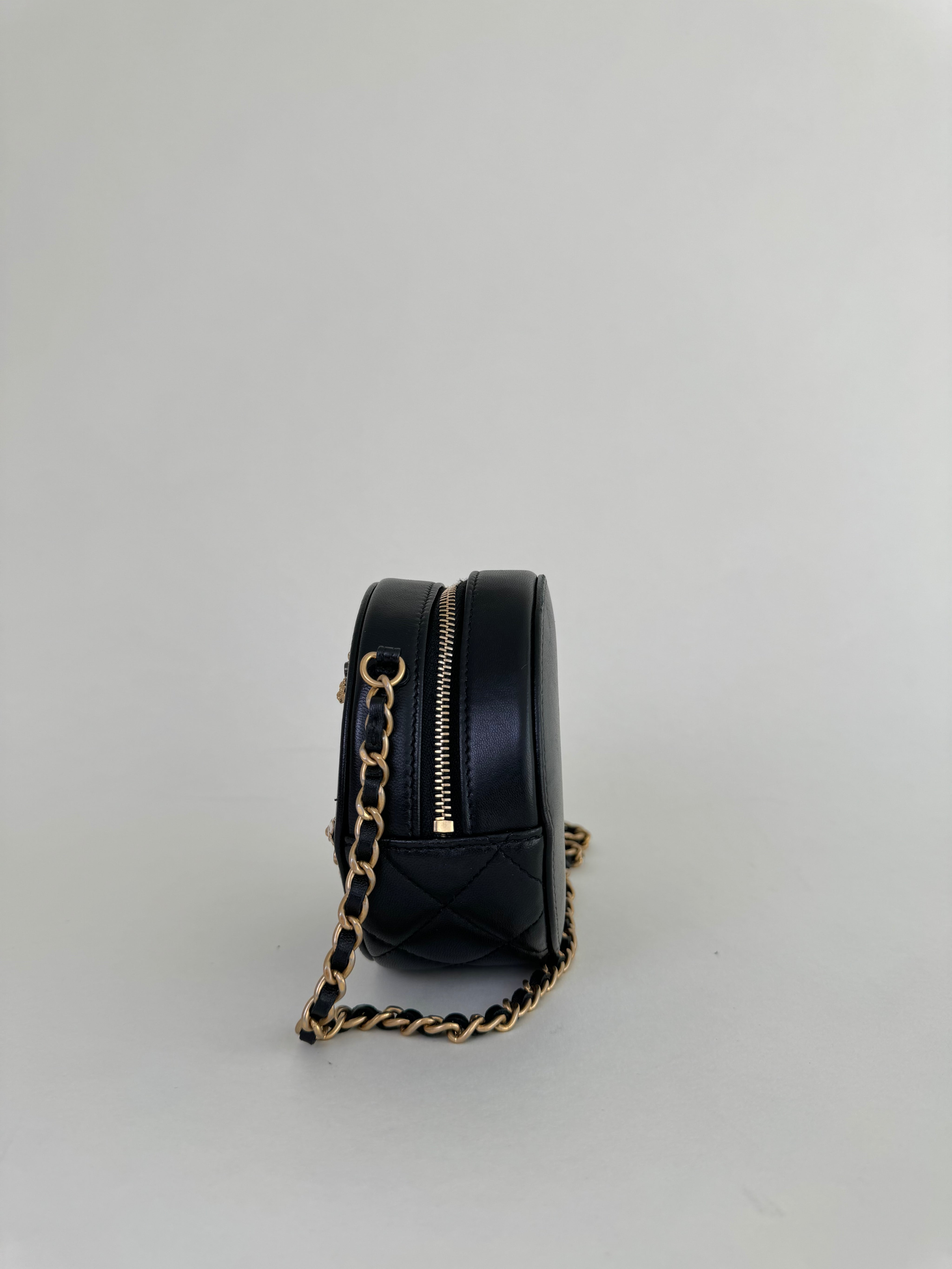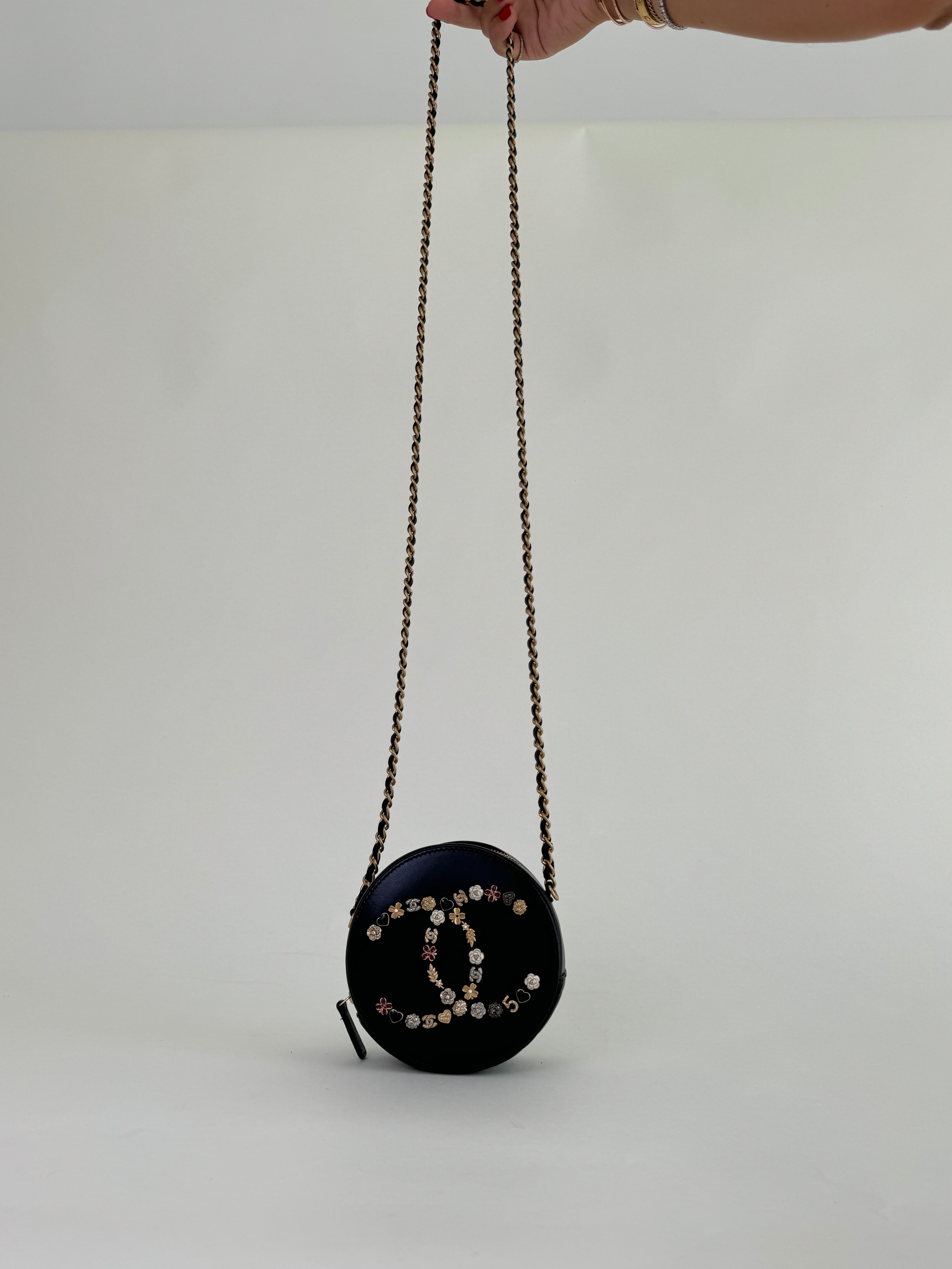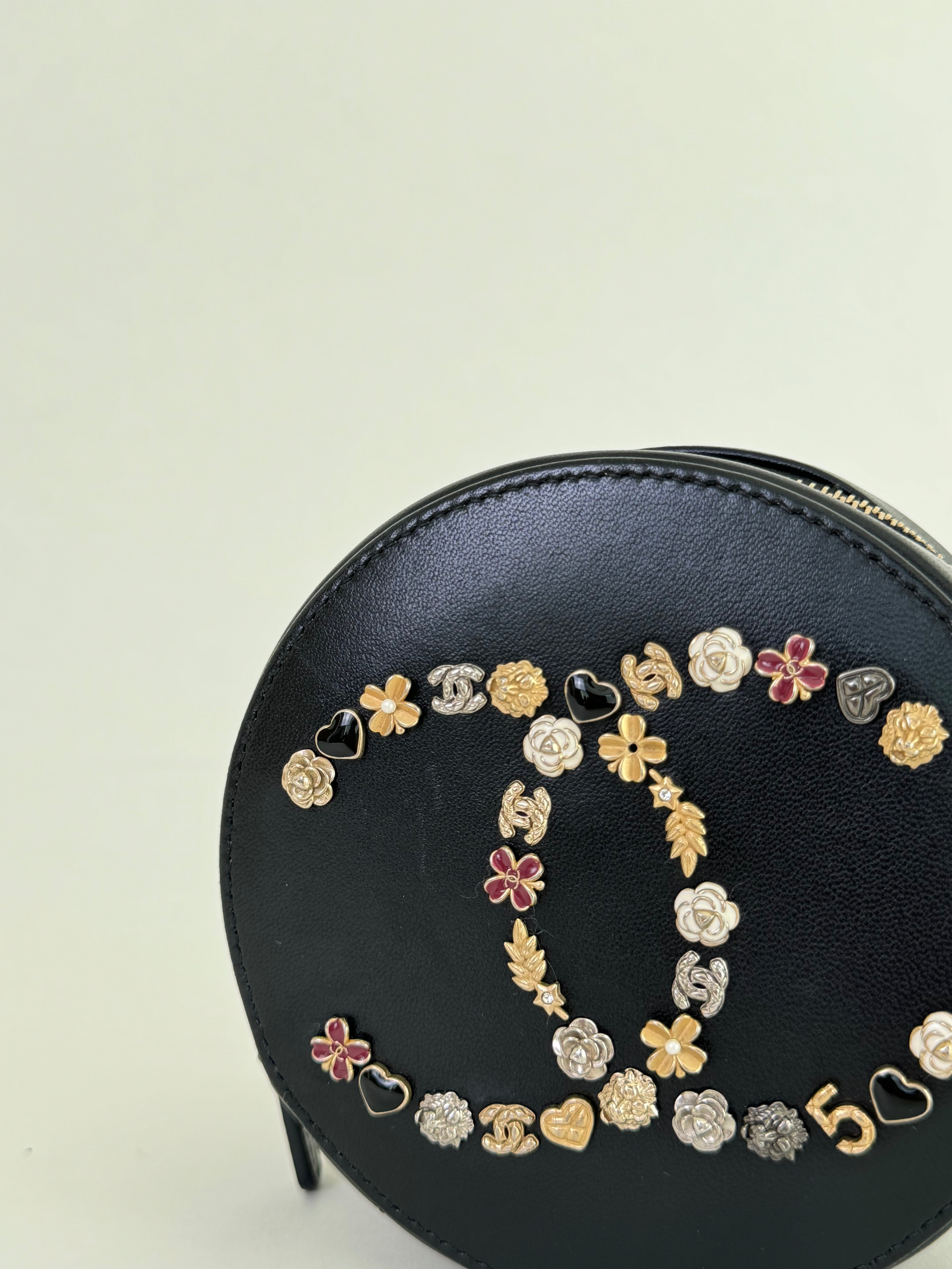 Chanel Black Studded Lambskin CC Round Shoulder Bag