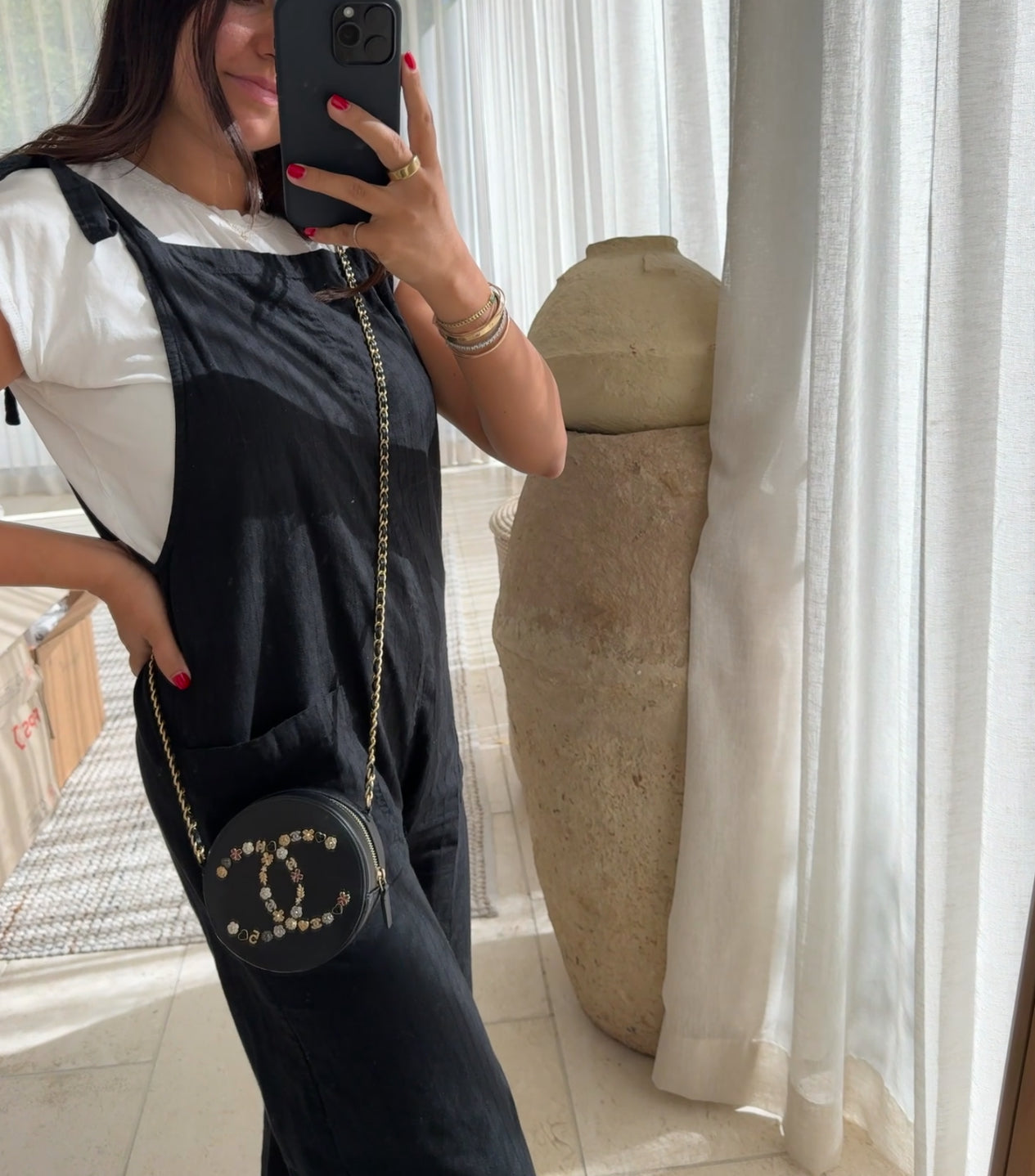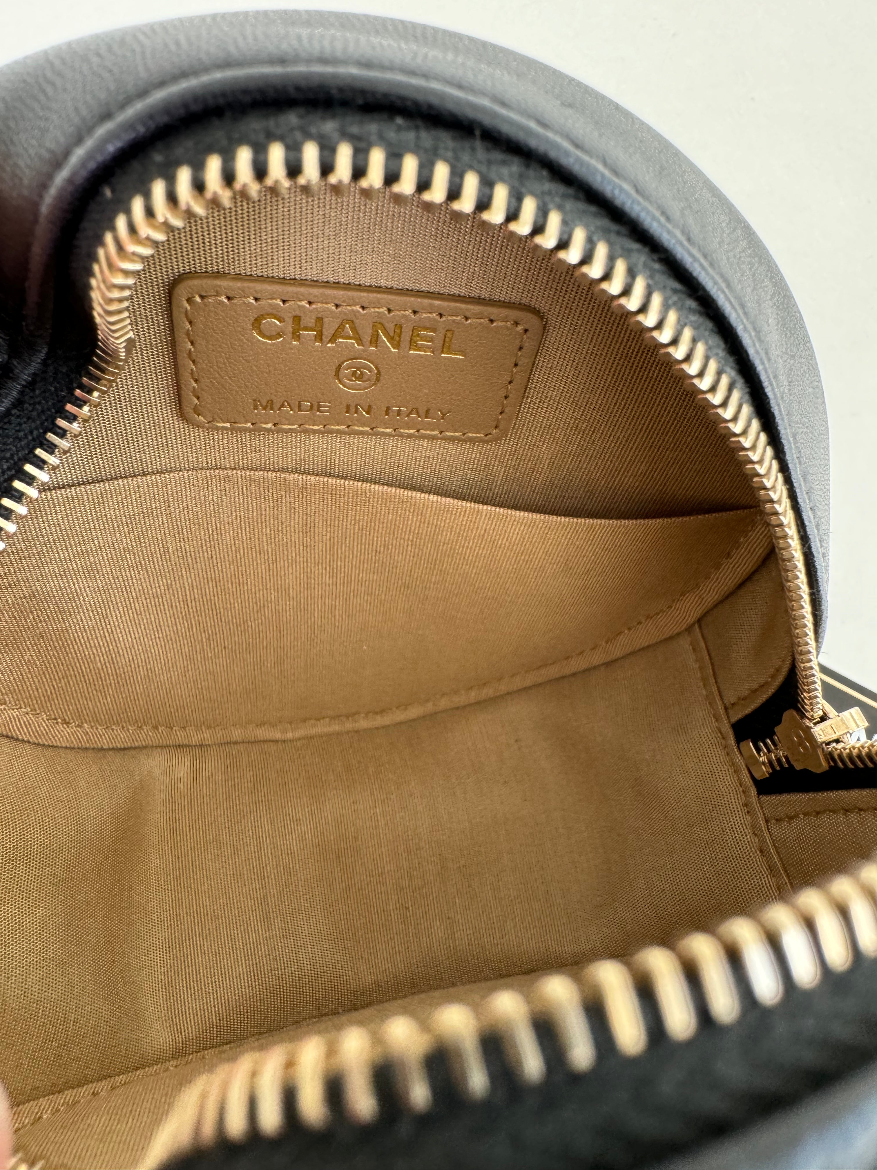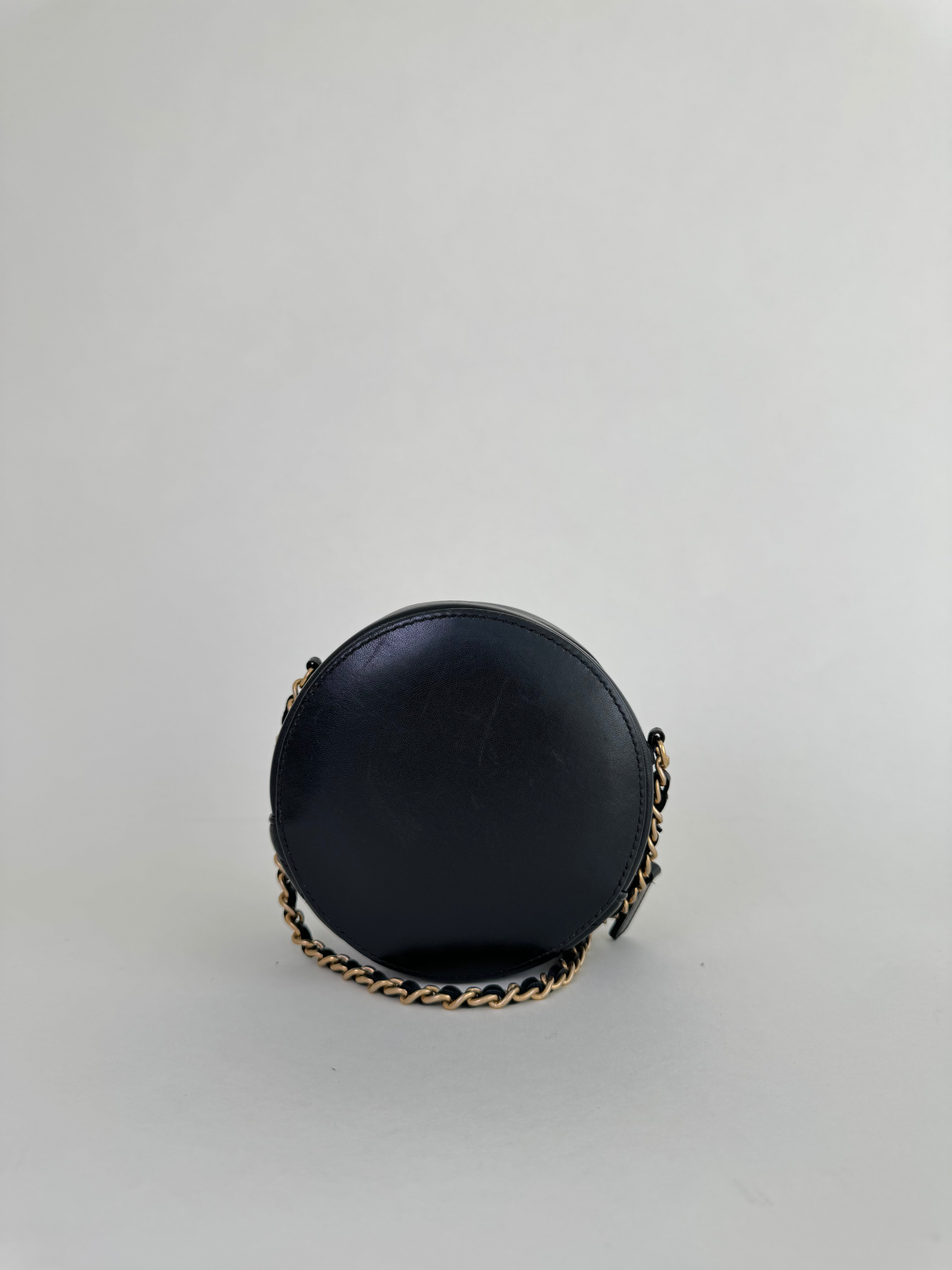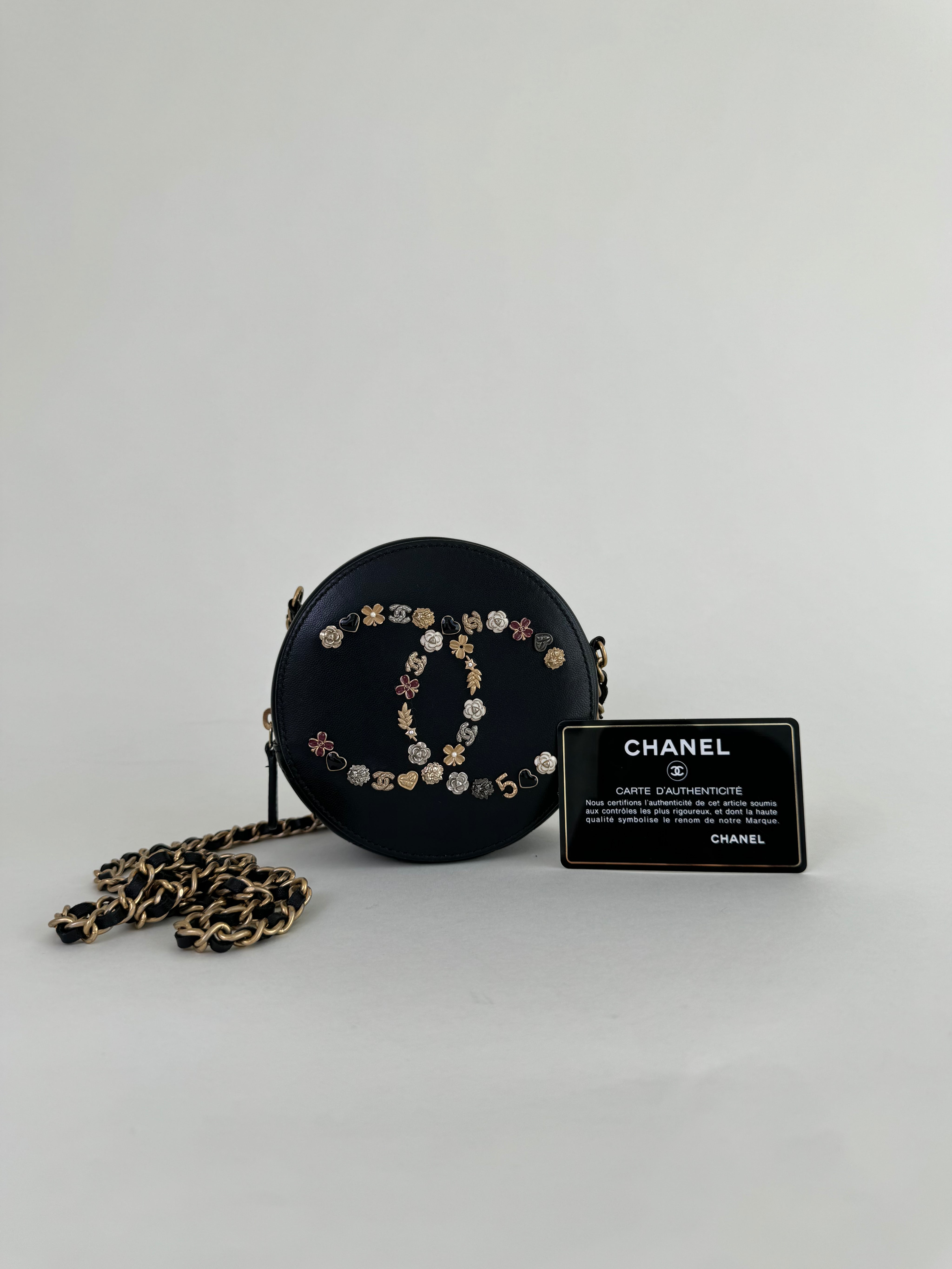 Chanel Black Studded Lambskin CC Round Shoulder Bag
