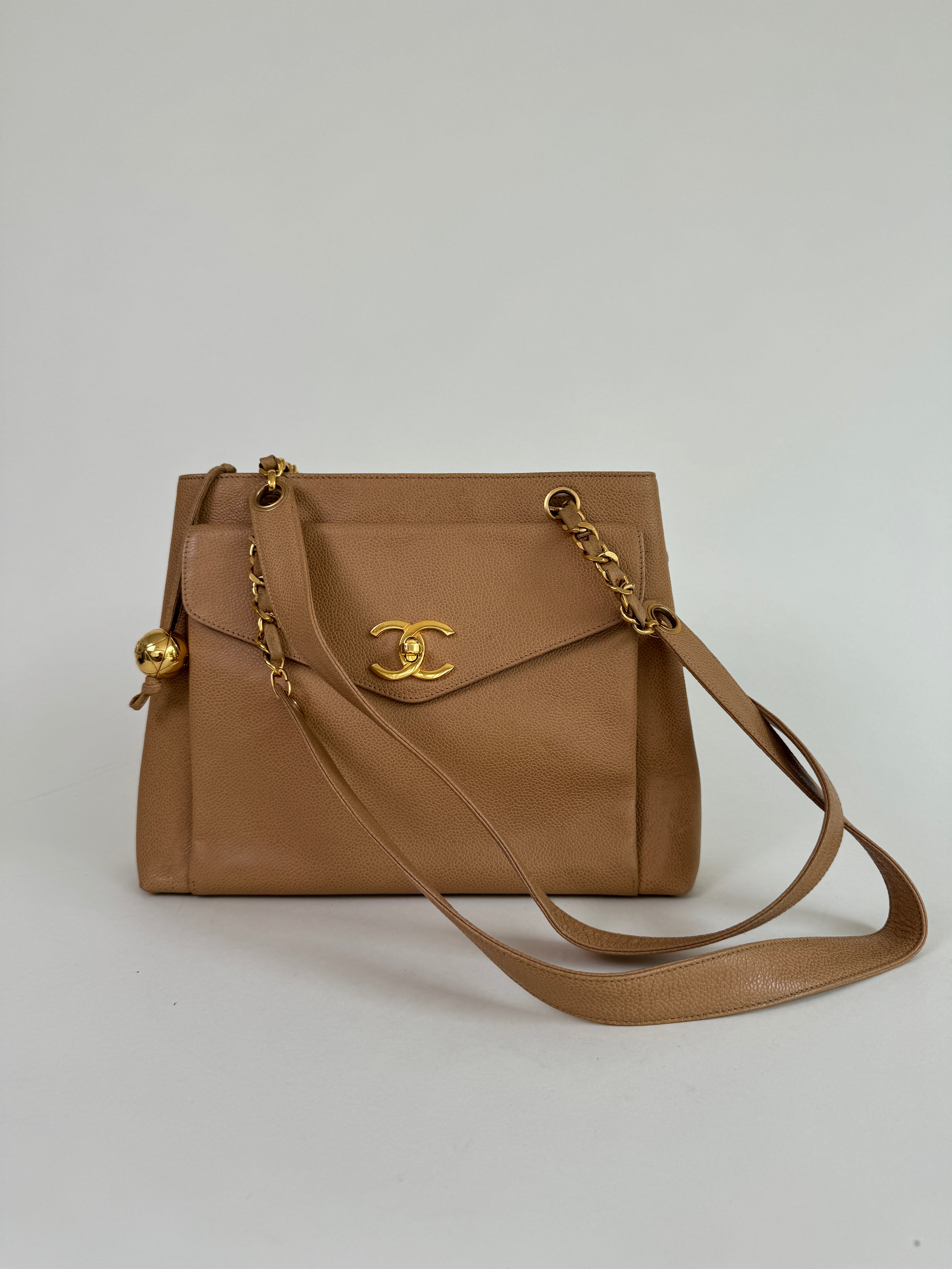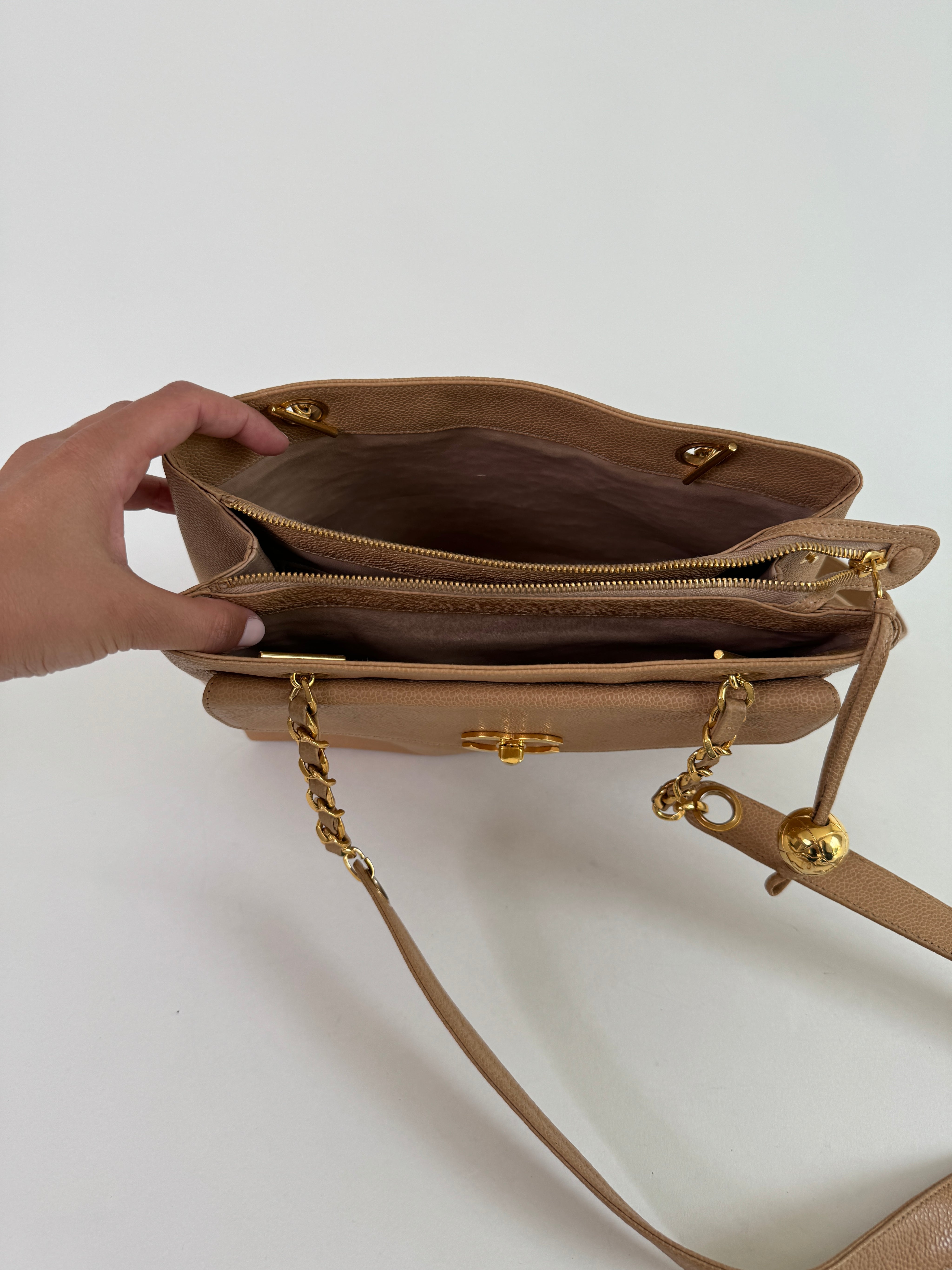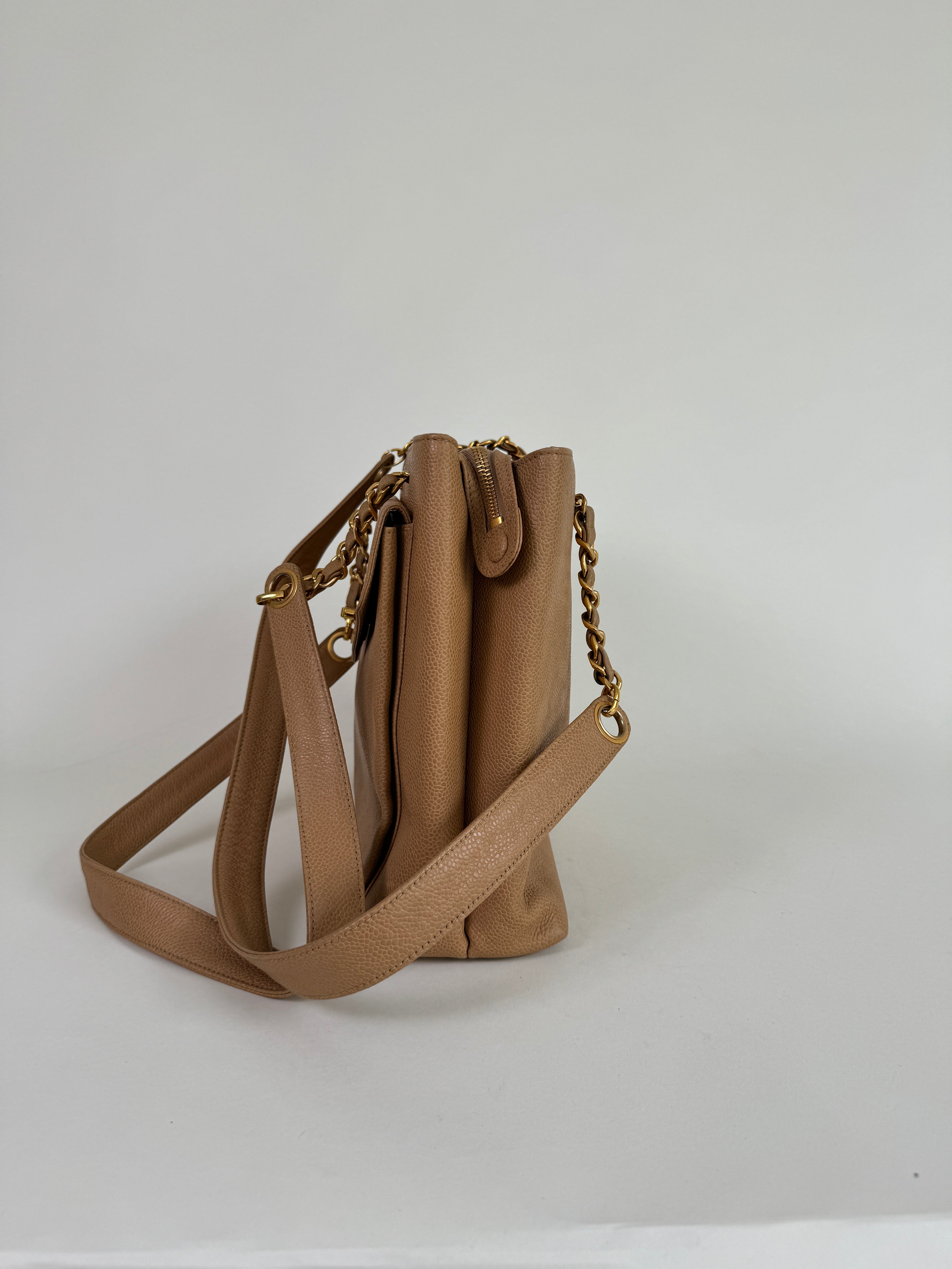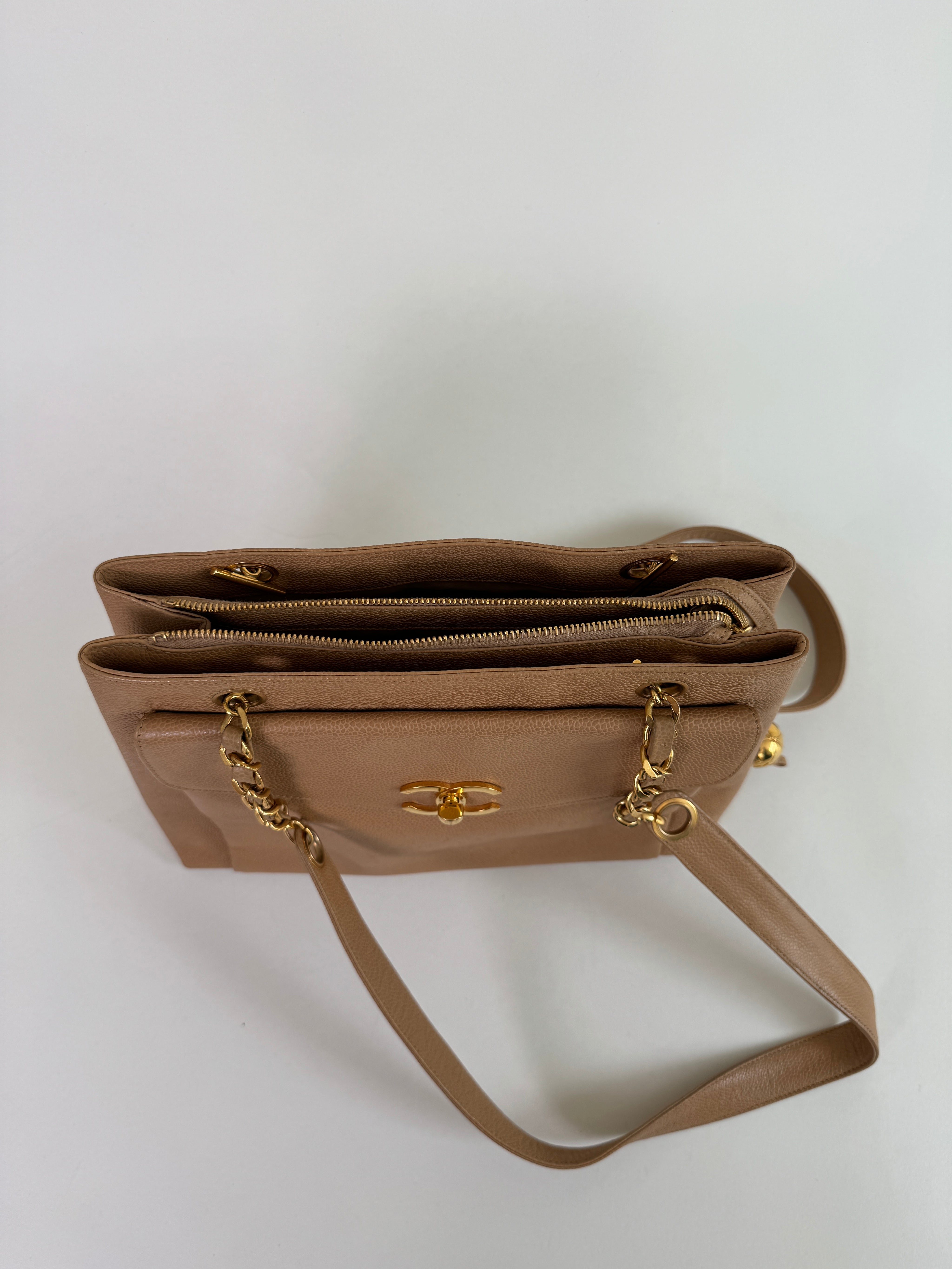 Chanel Tan Caviar Leather CC Tote Bag