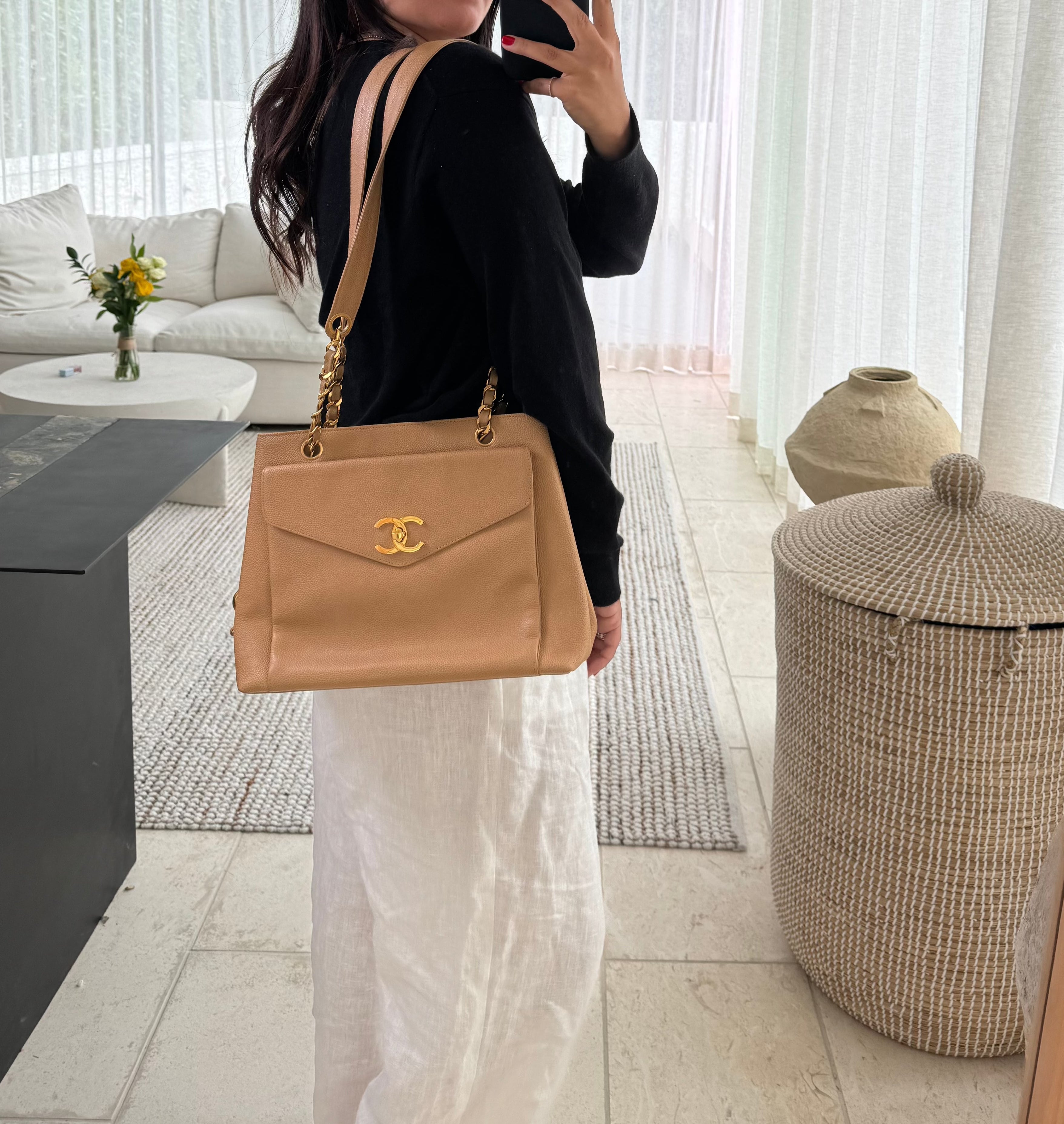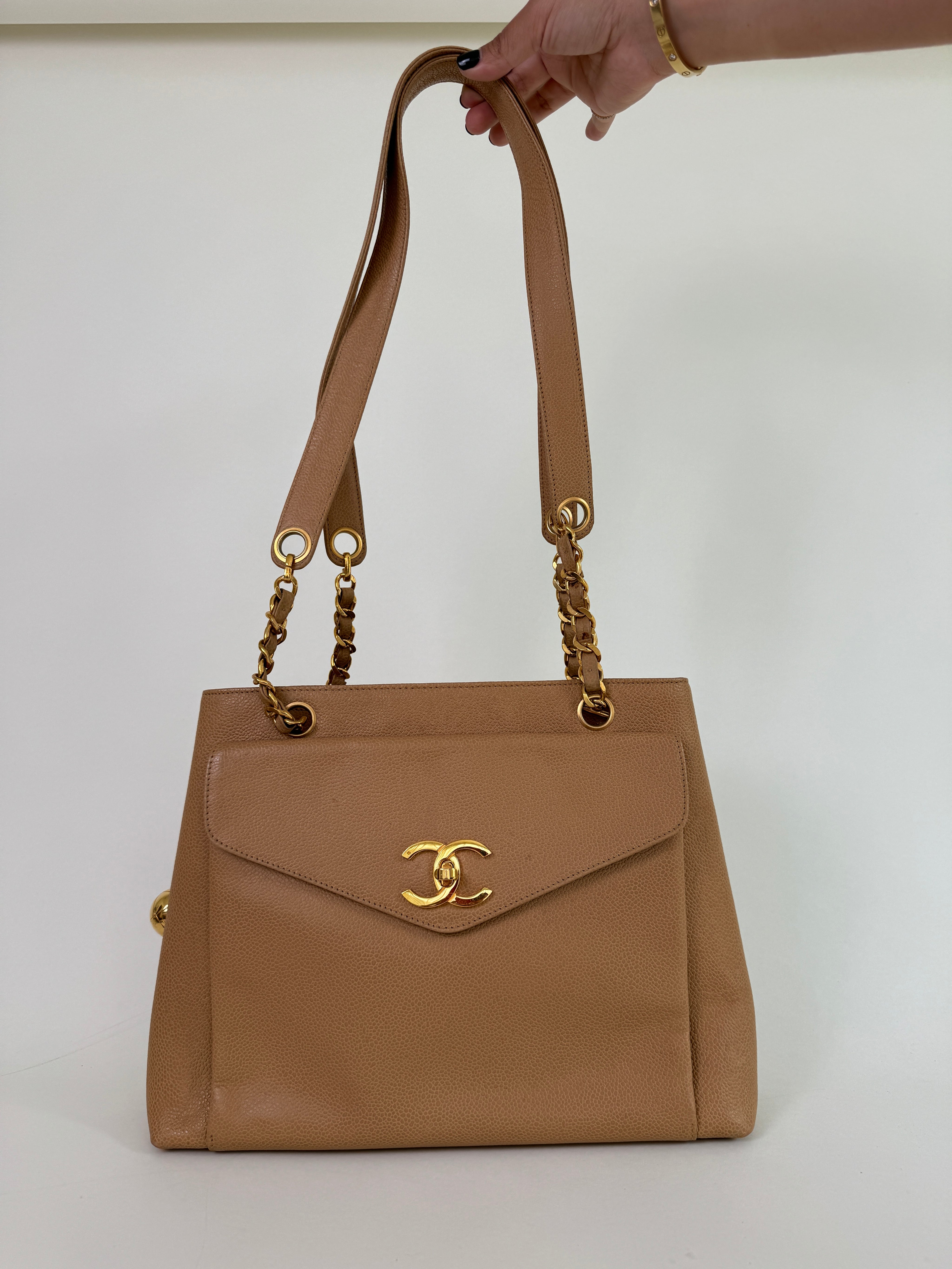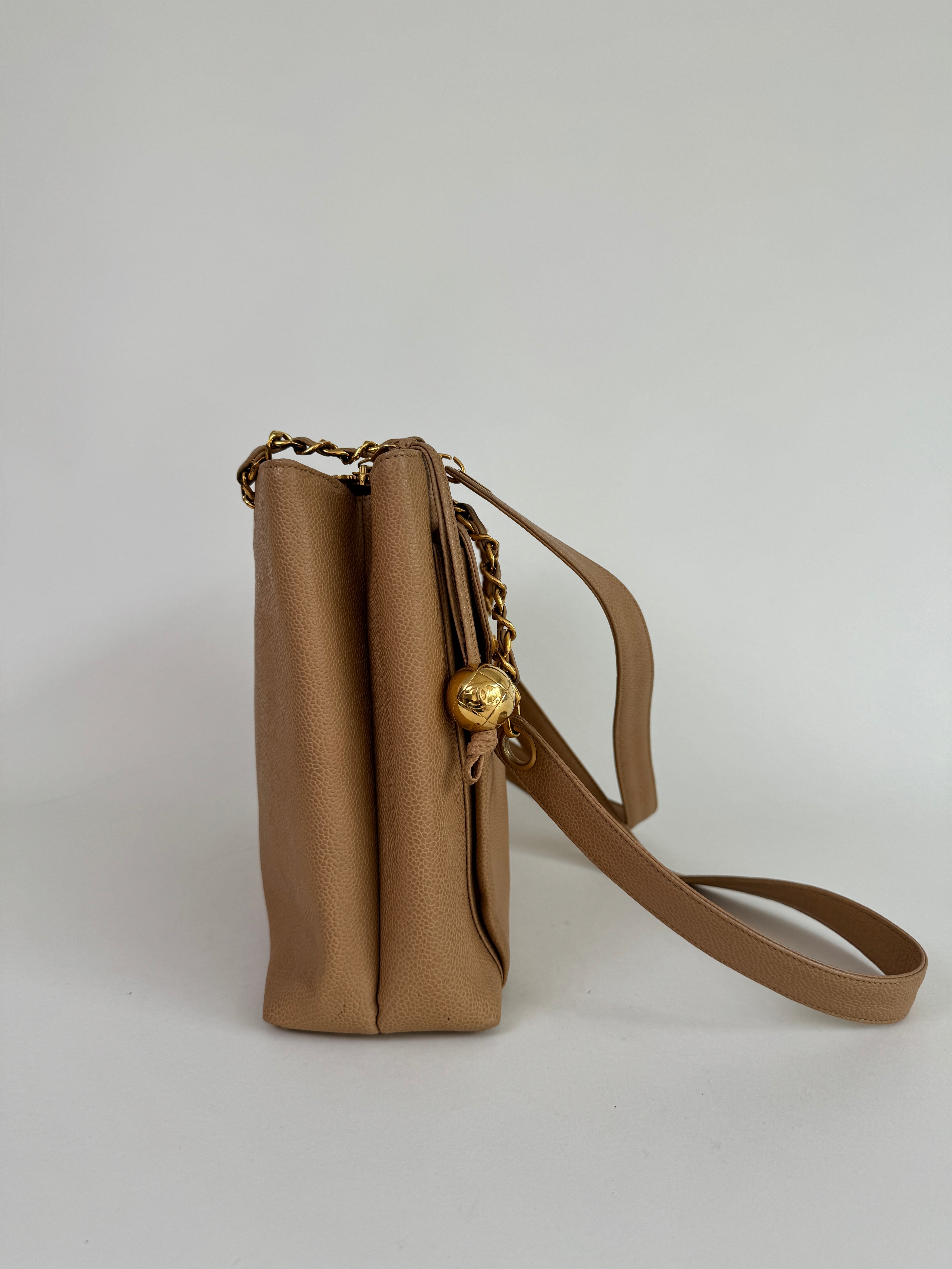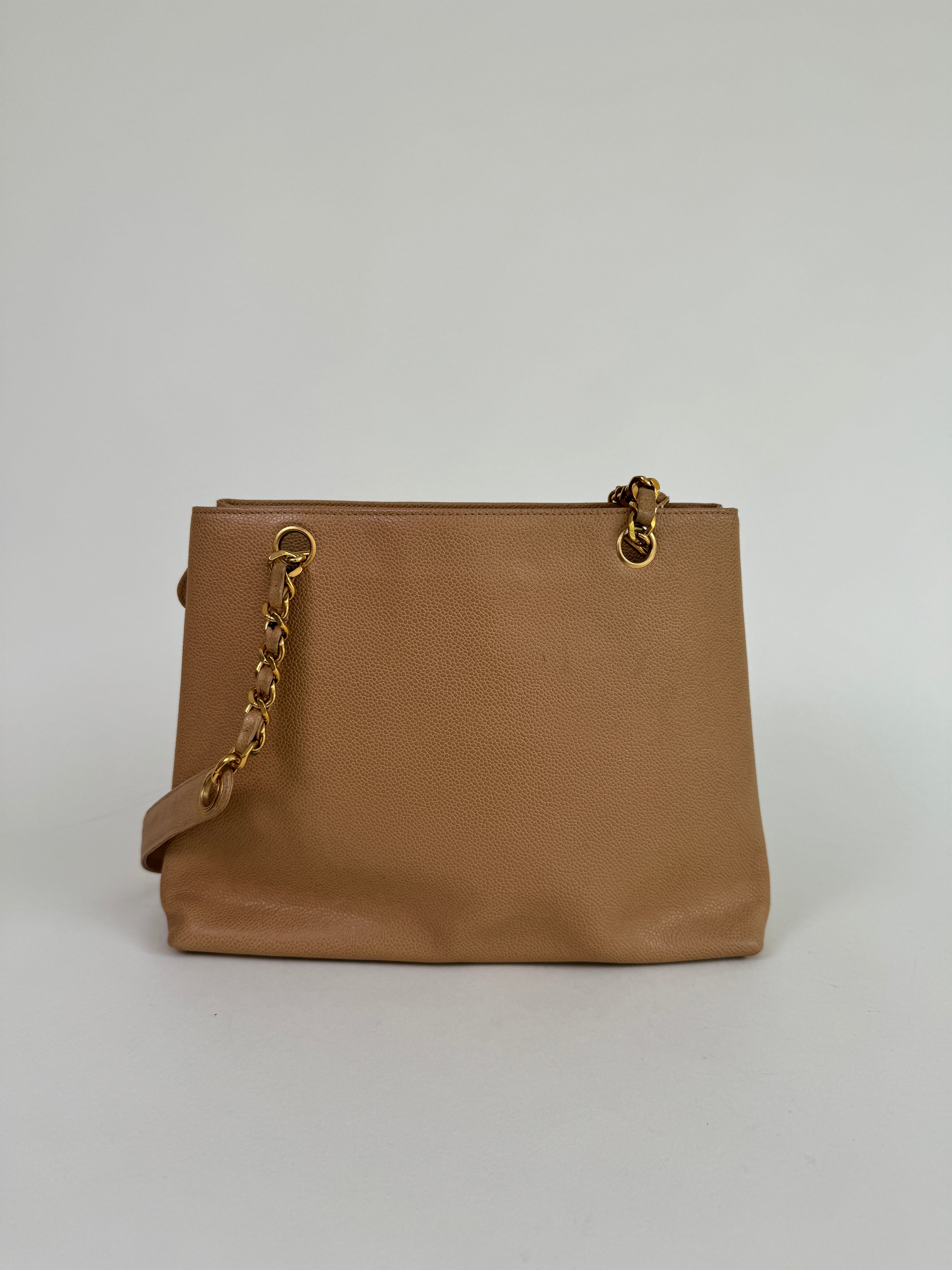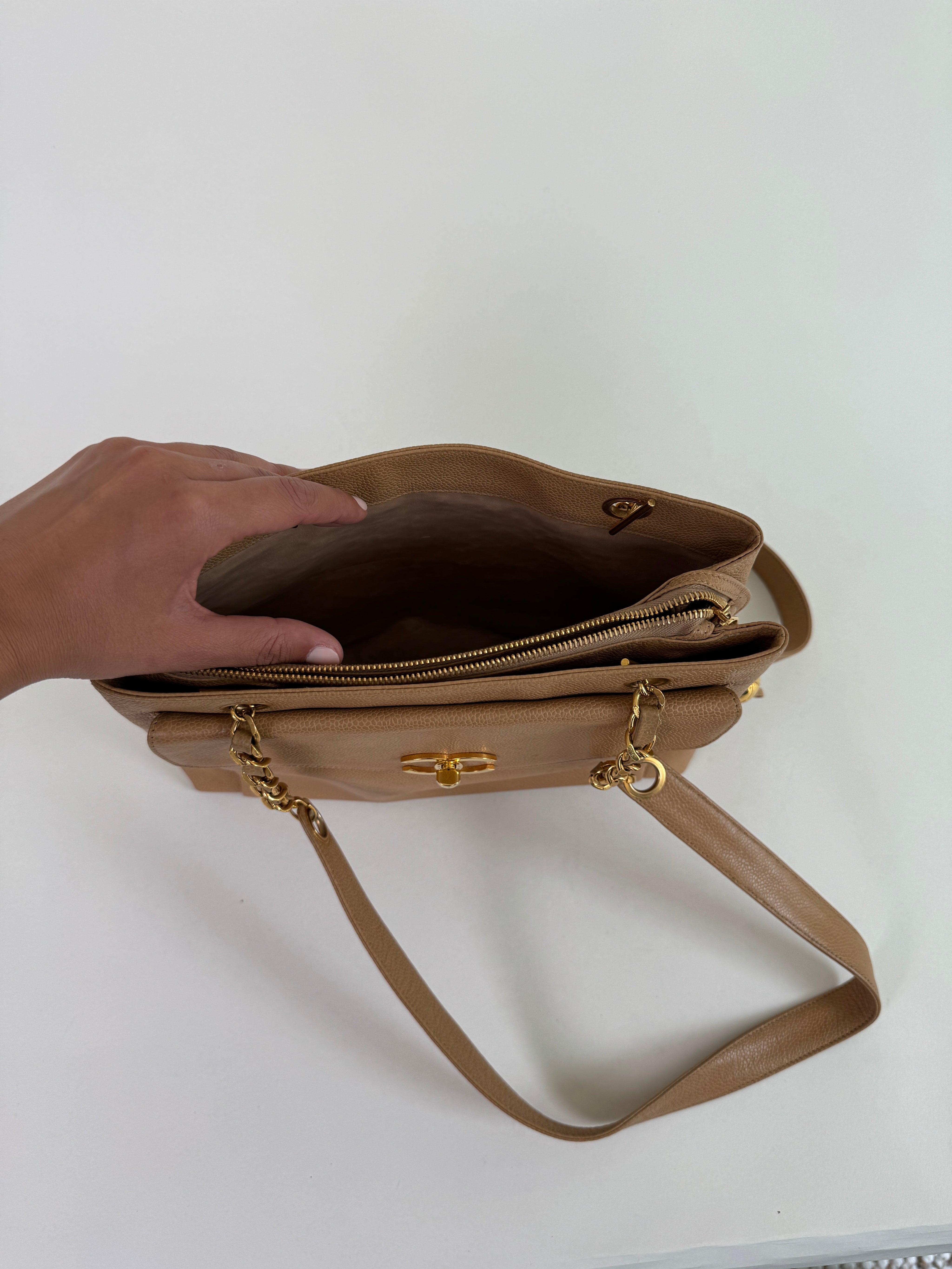 Chanel Tan Caviar Leather CC Tote Bag
