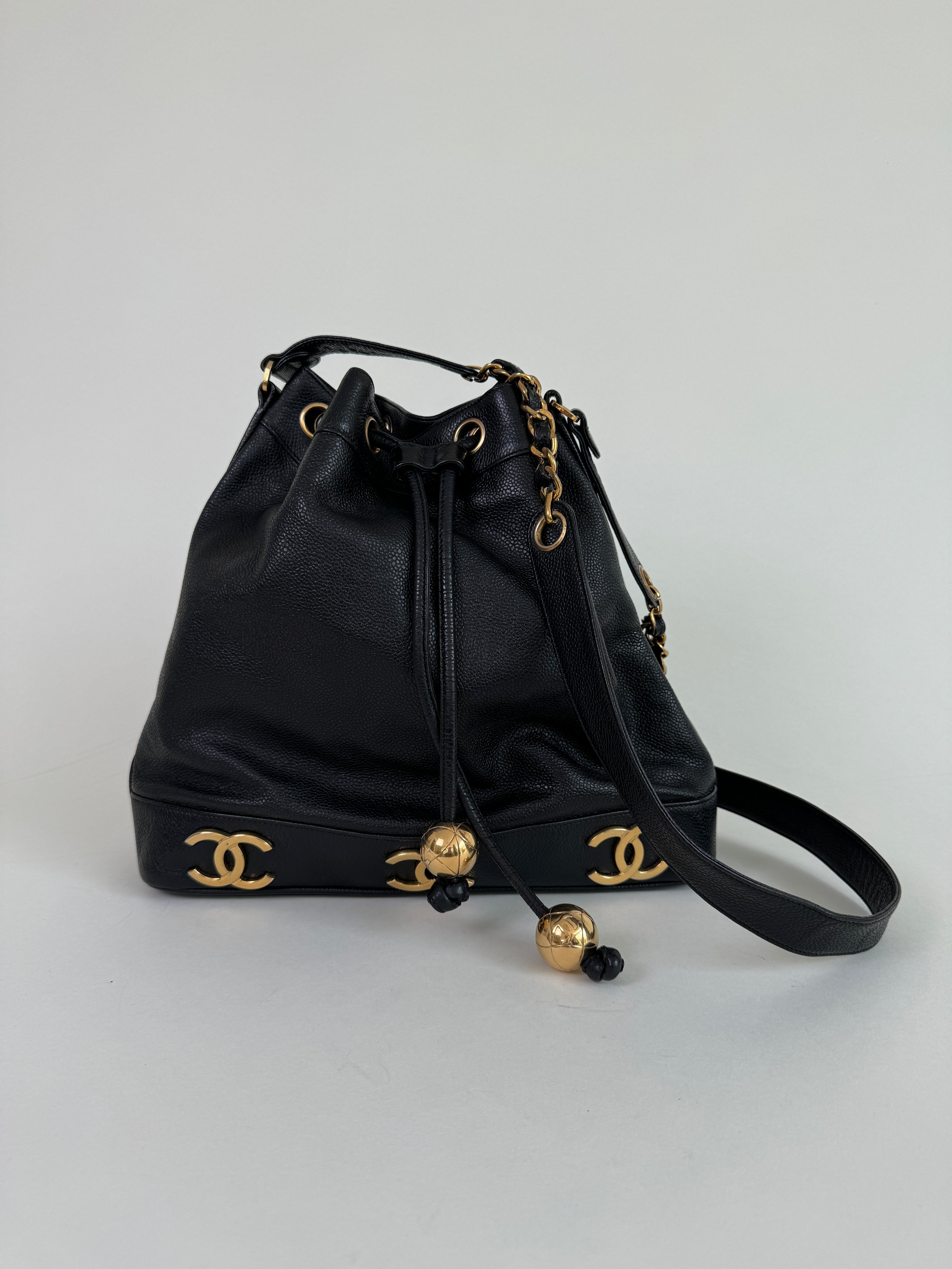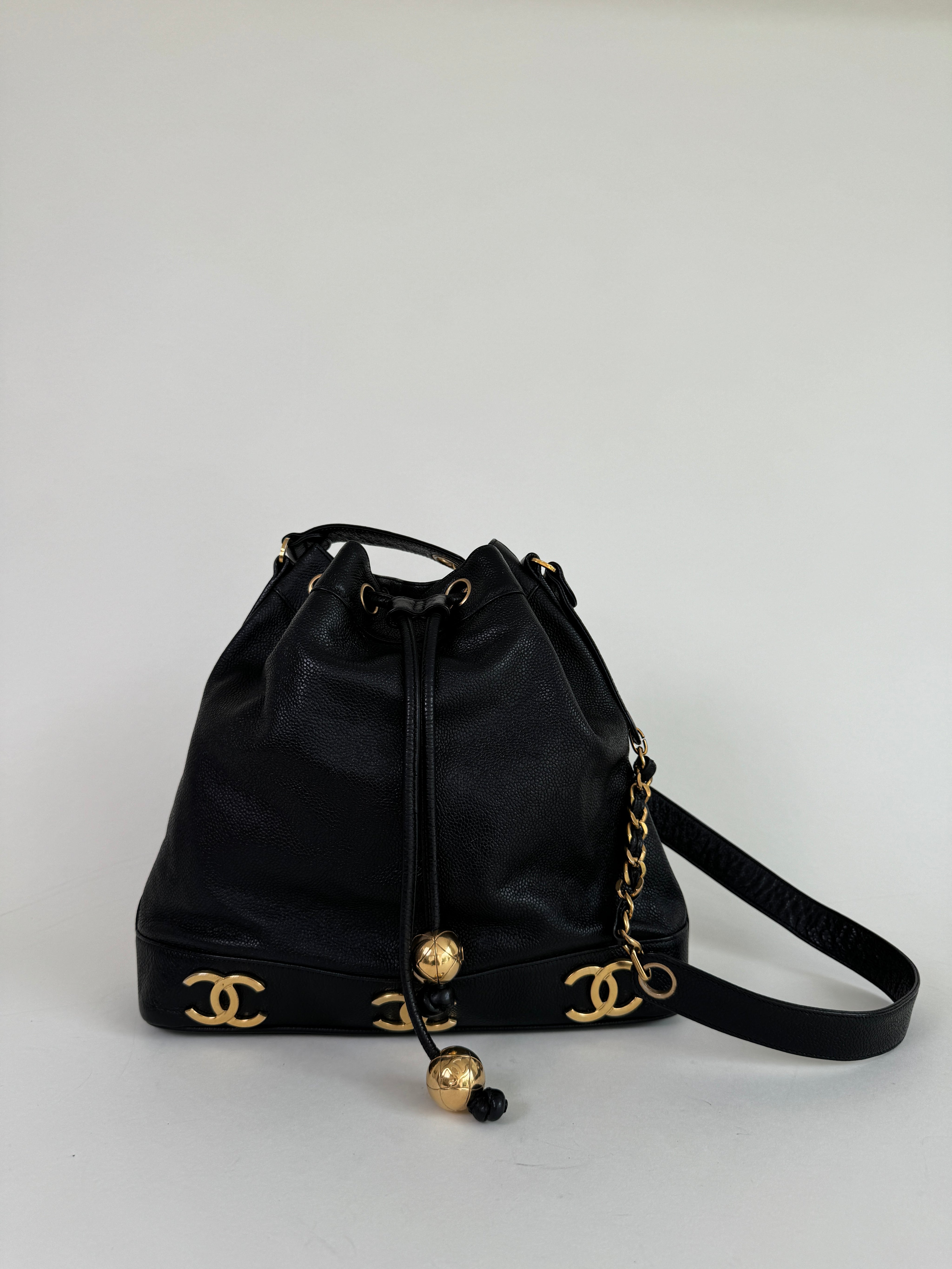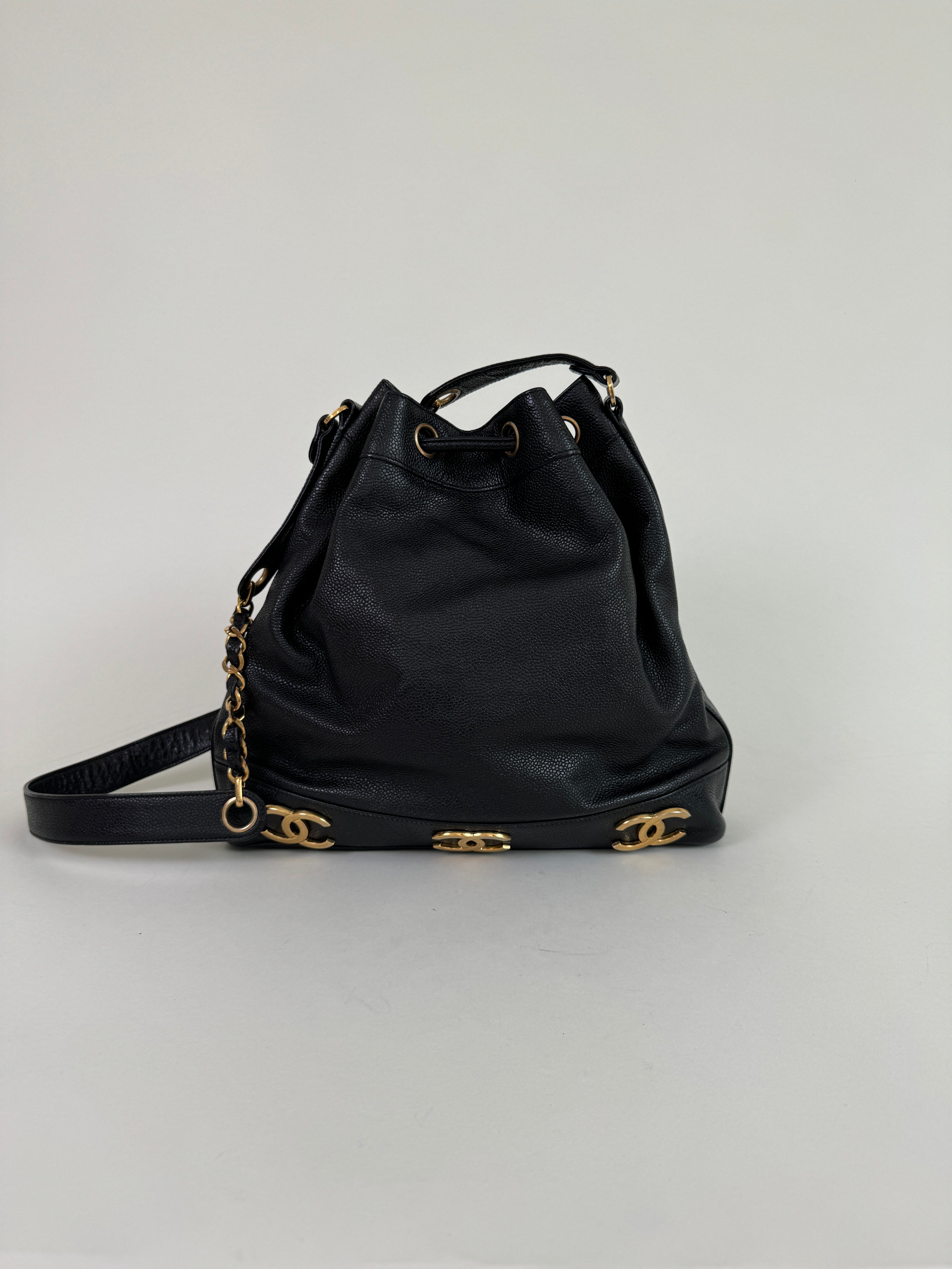 Chanel Black Caviar Leather Triple CC Bucket Bag
