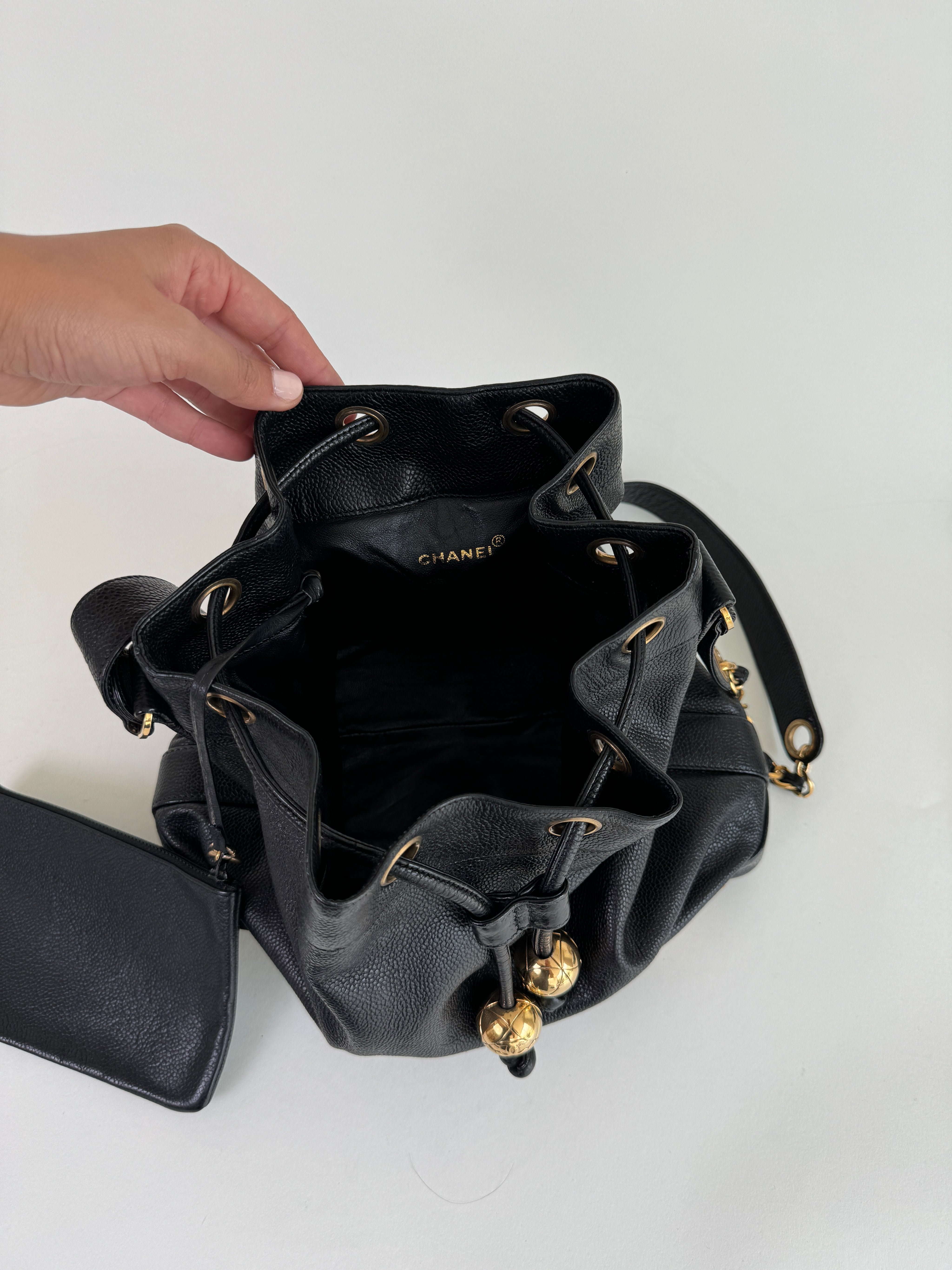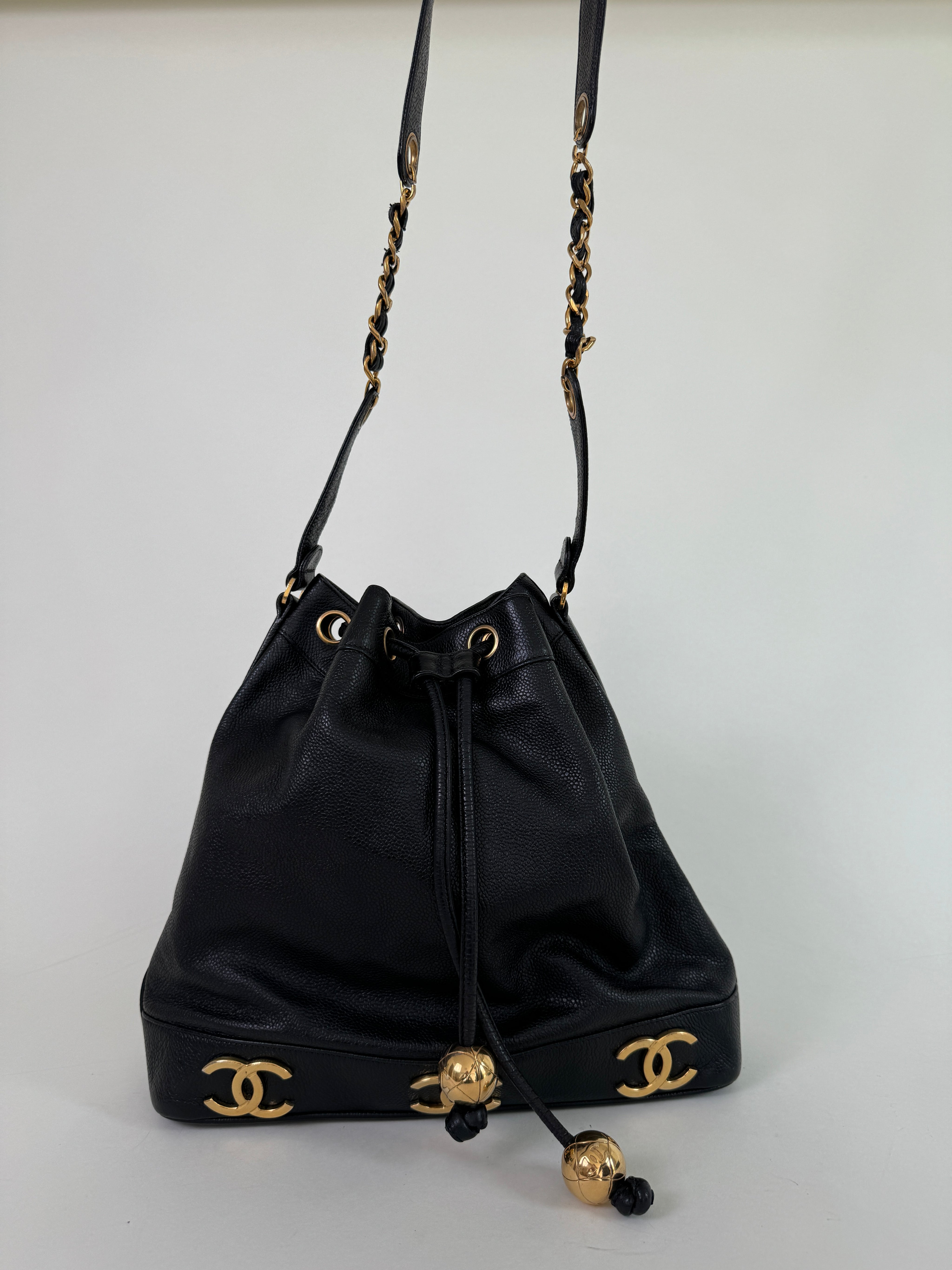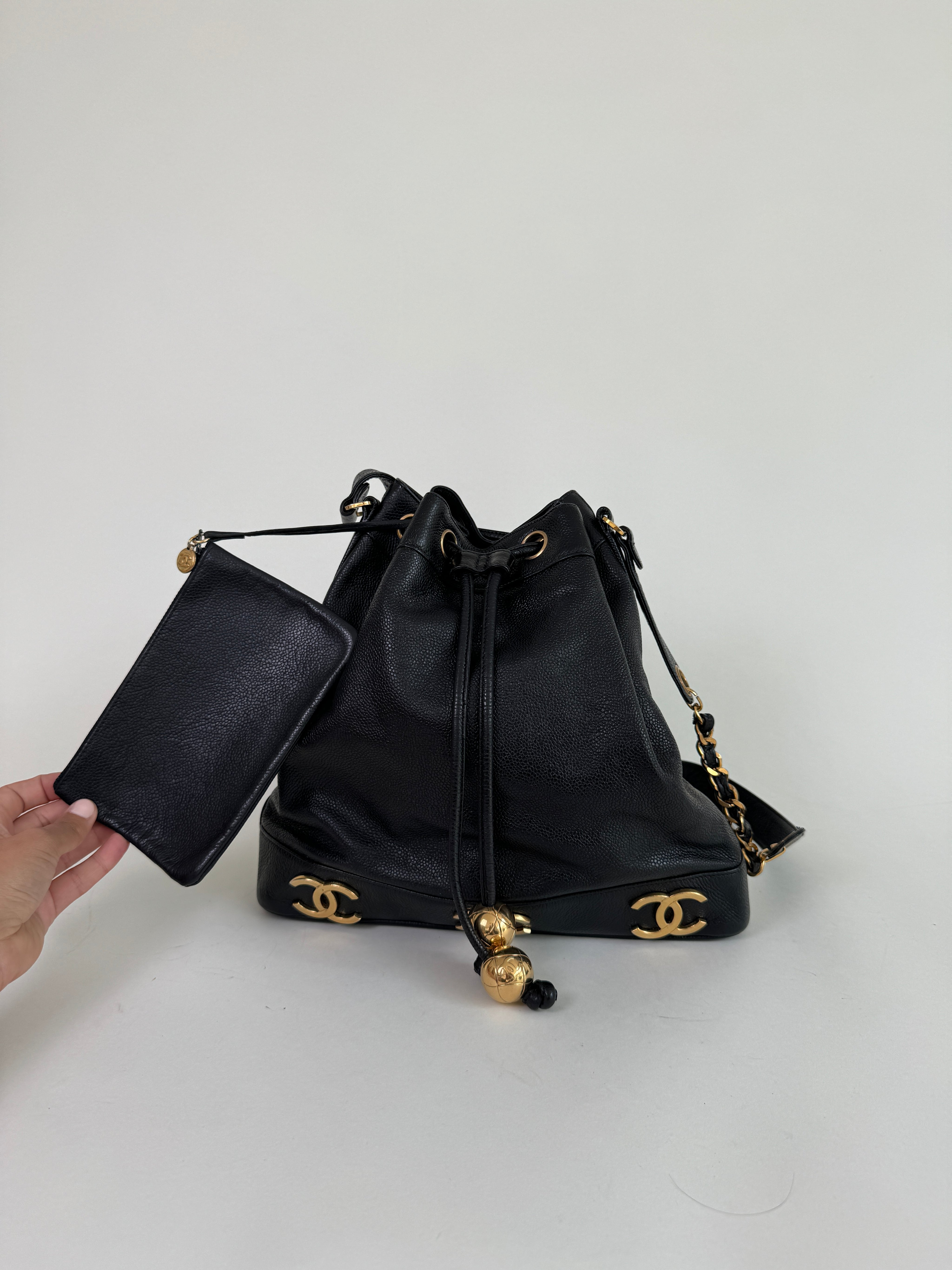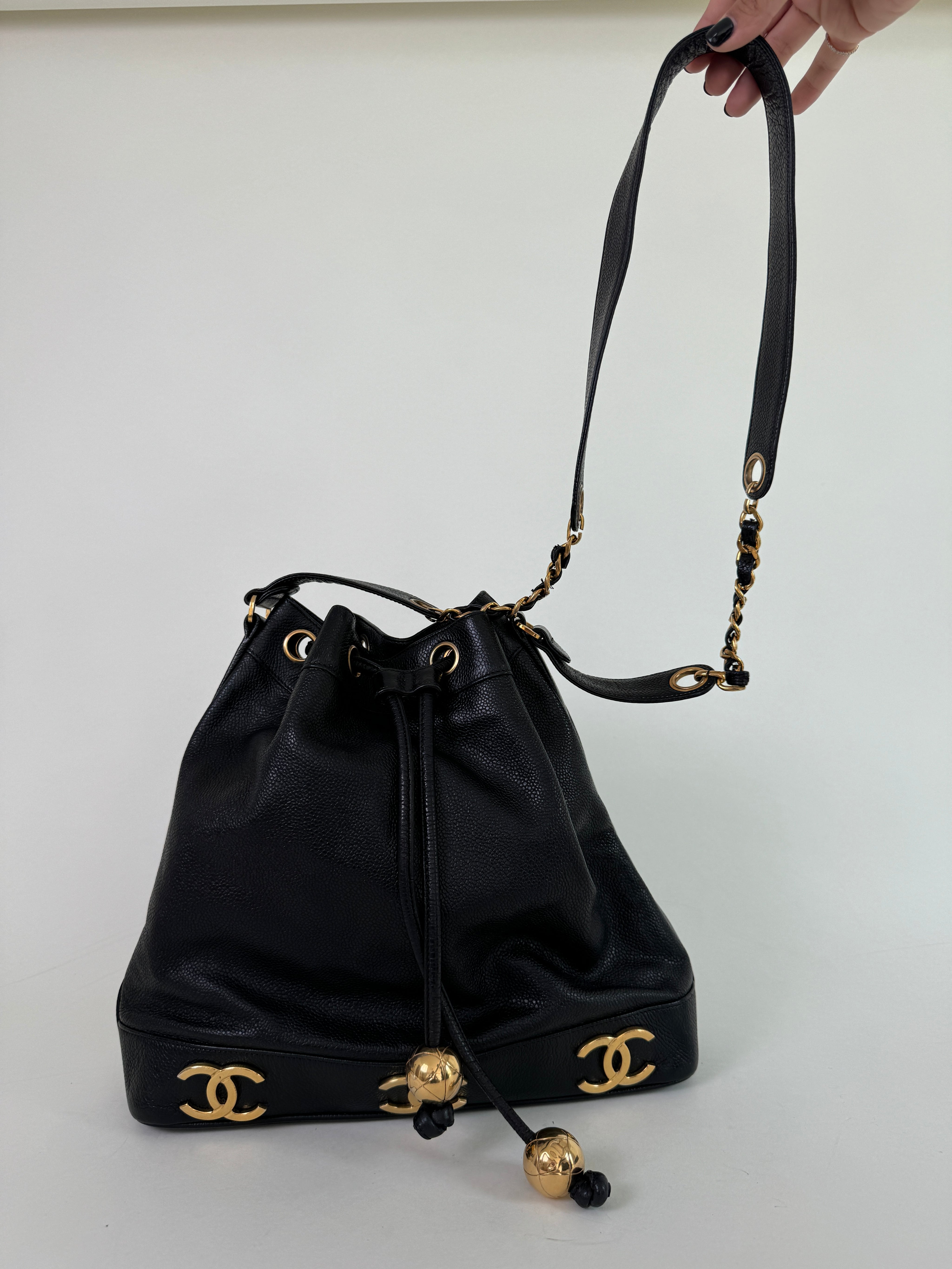 Chanel Black Caviar Leather Triple CC Bucket Bag