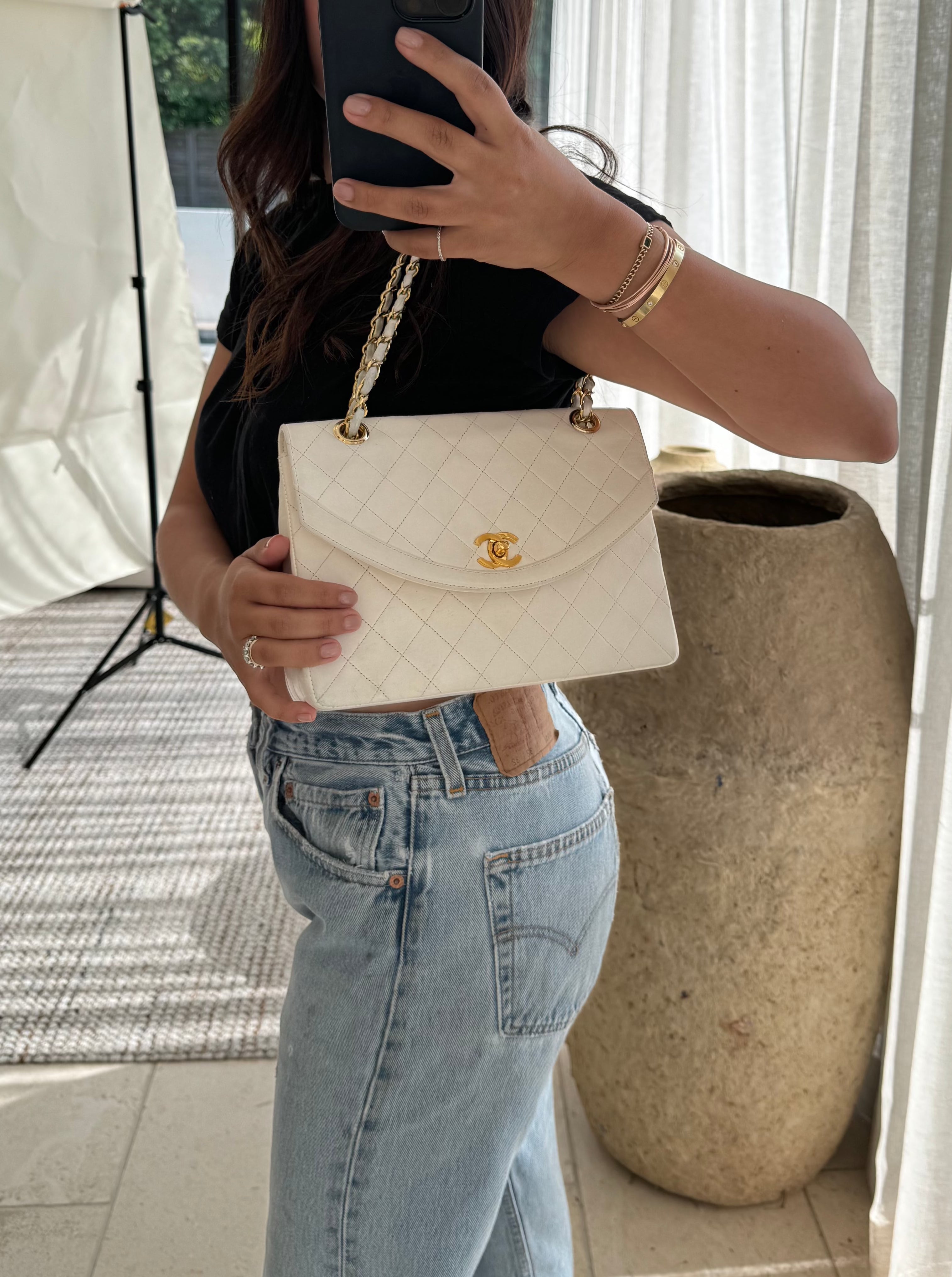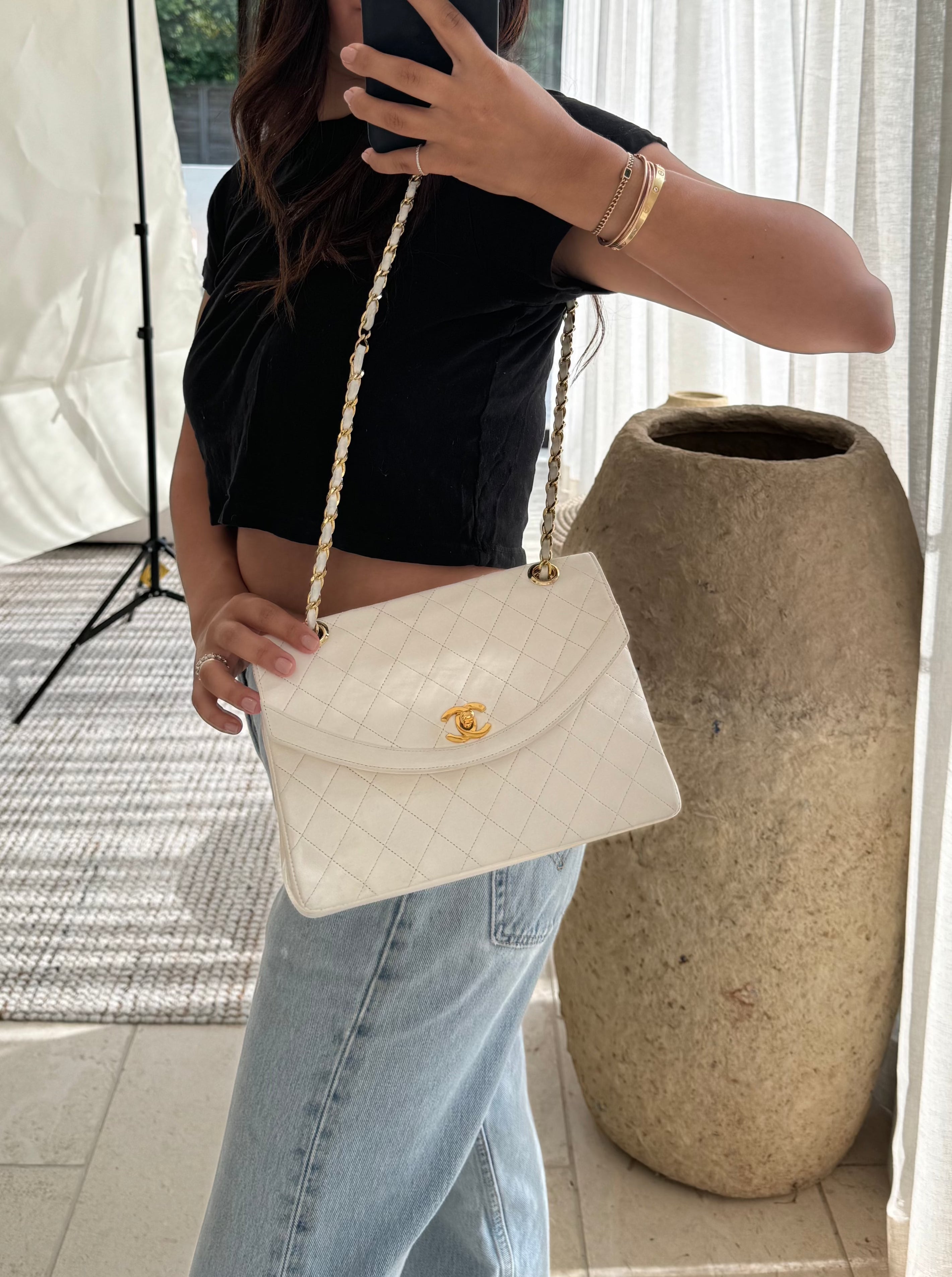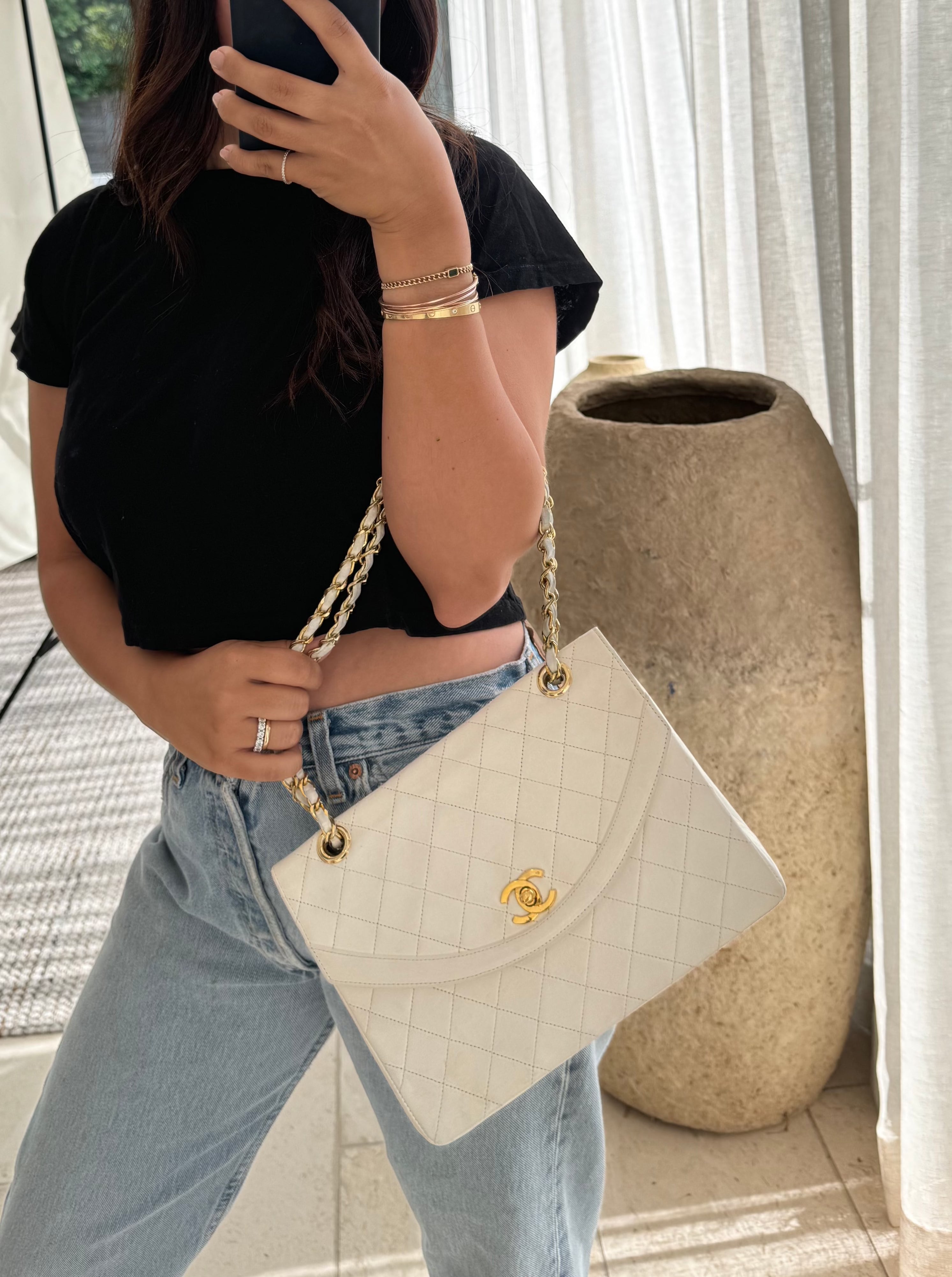 View Similar ProductsWhite Lambskin Quilted Classic Single Flap Bag