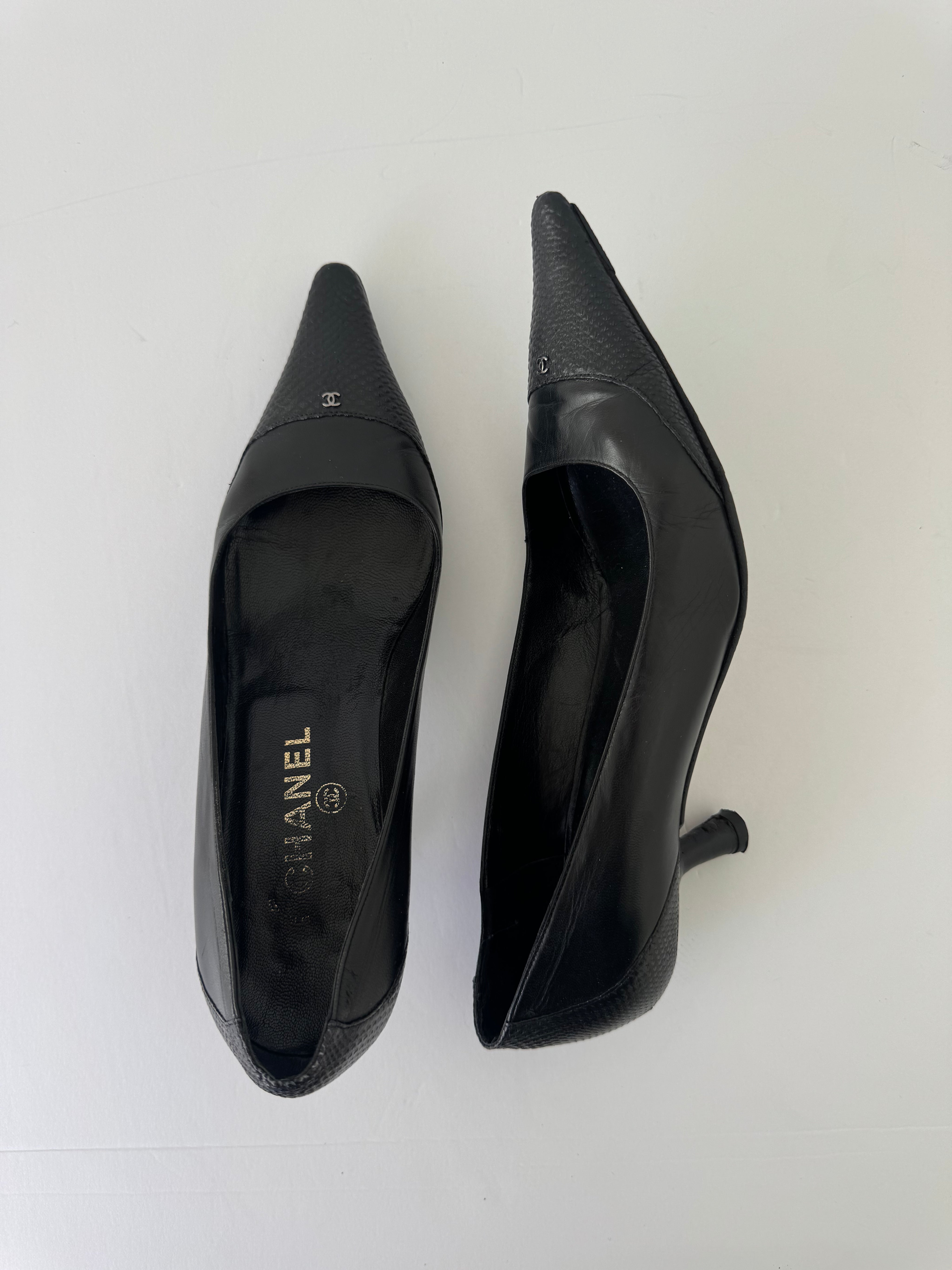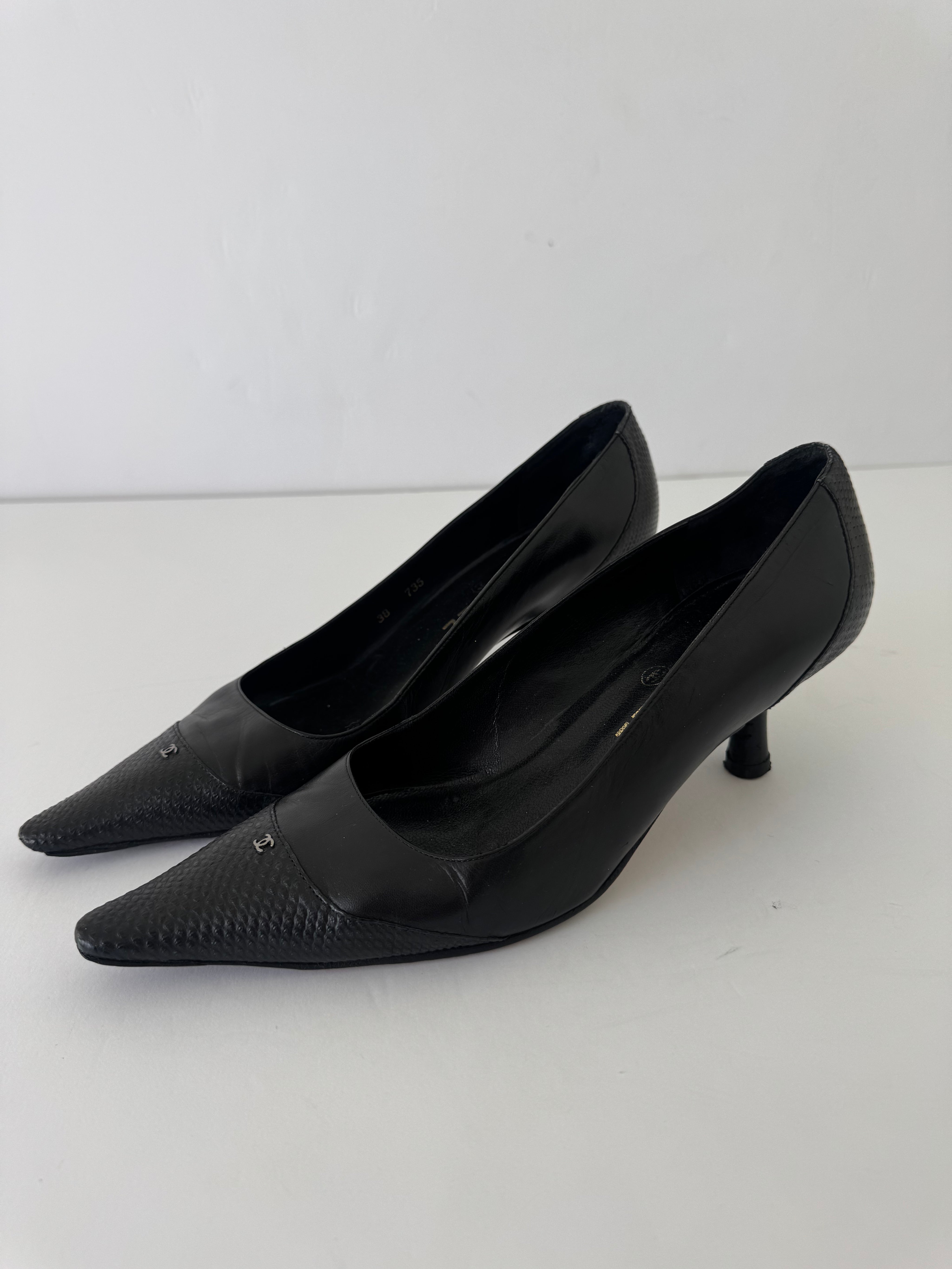 View Similar ProductsBlack Leather & Textured Cap Toe