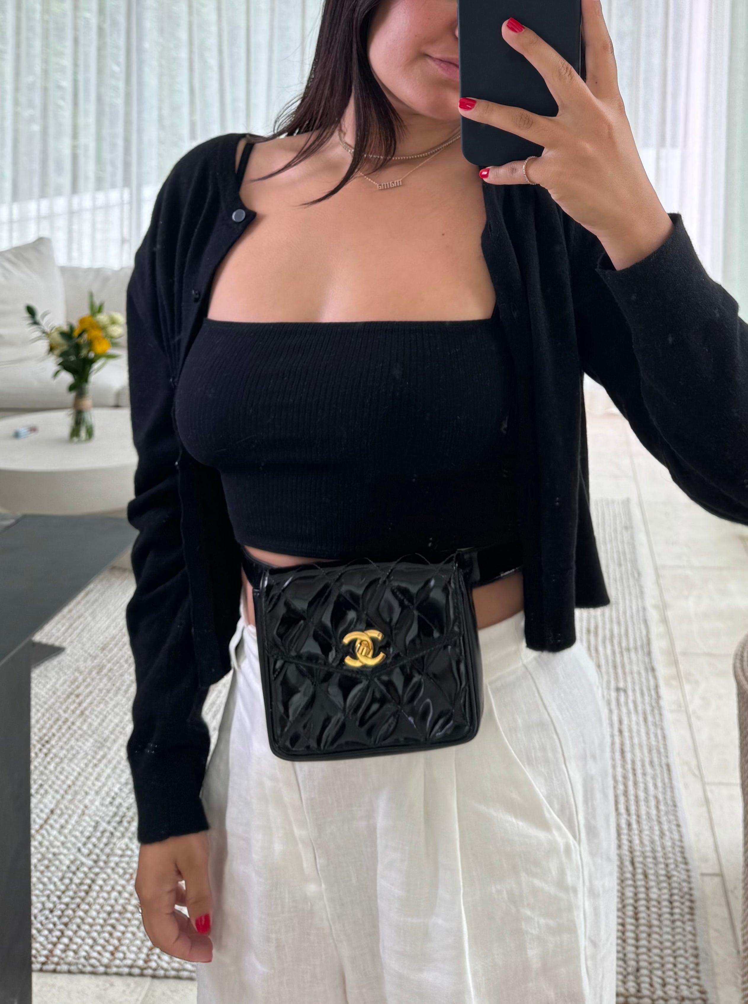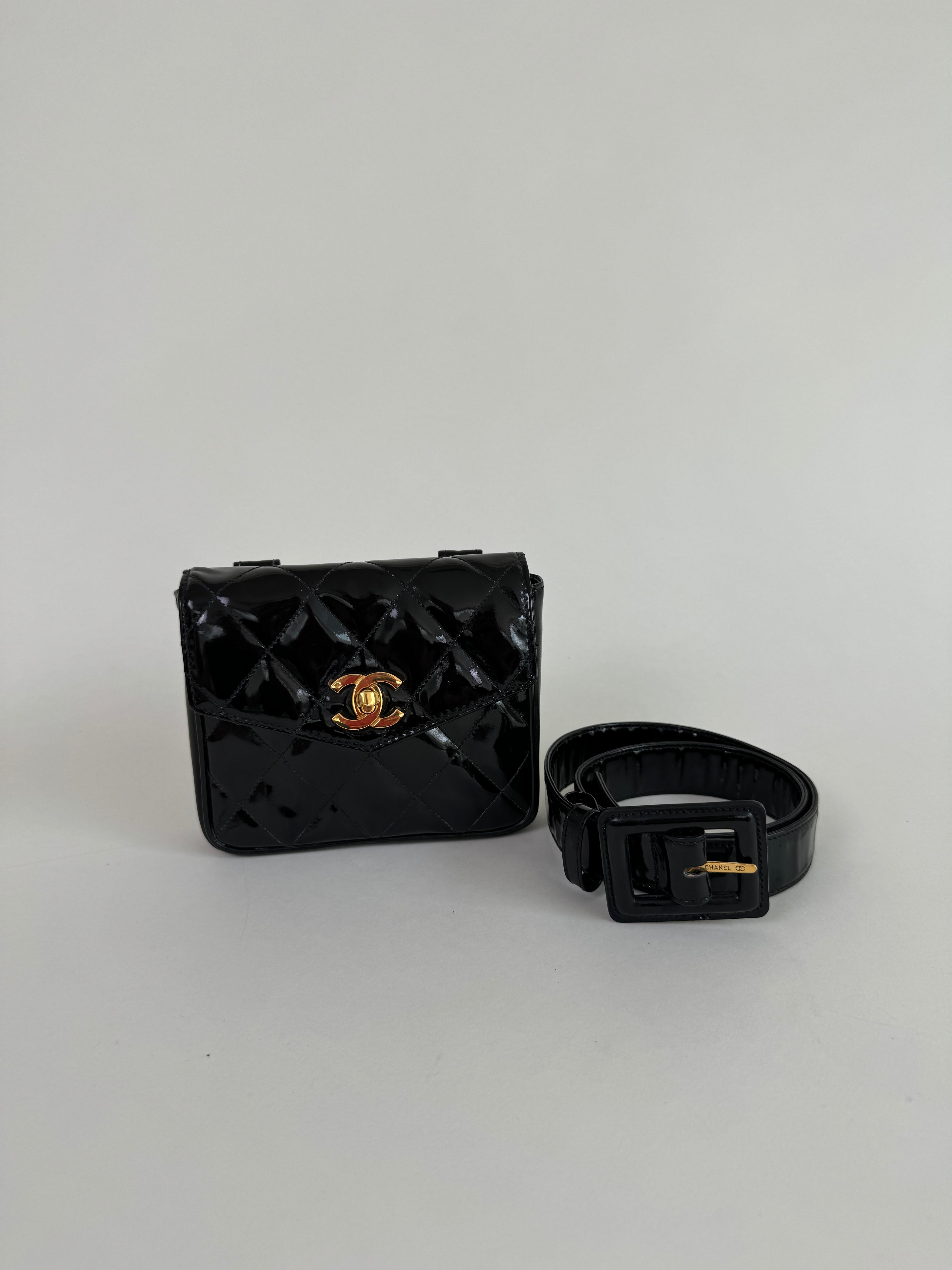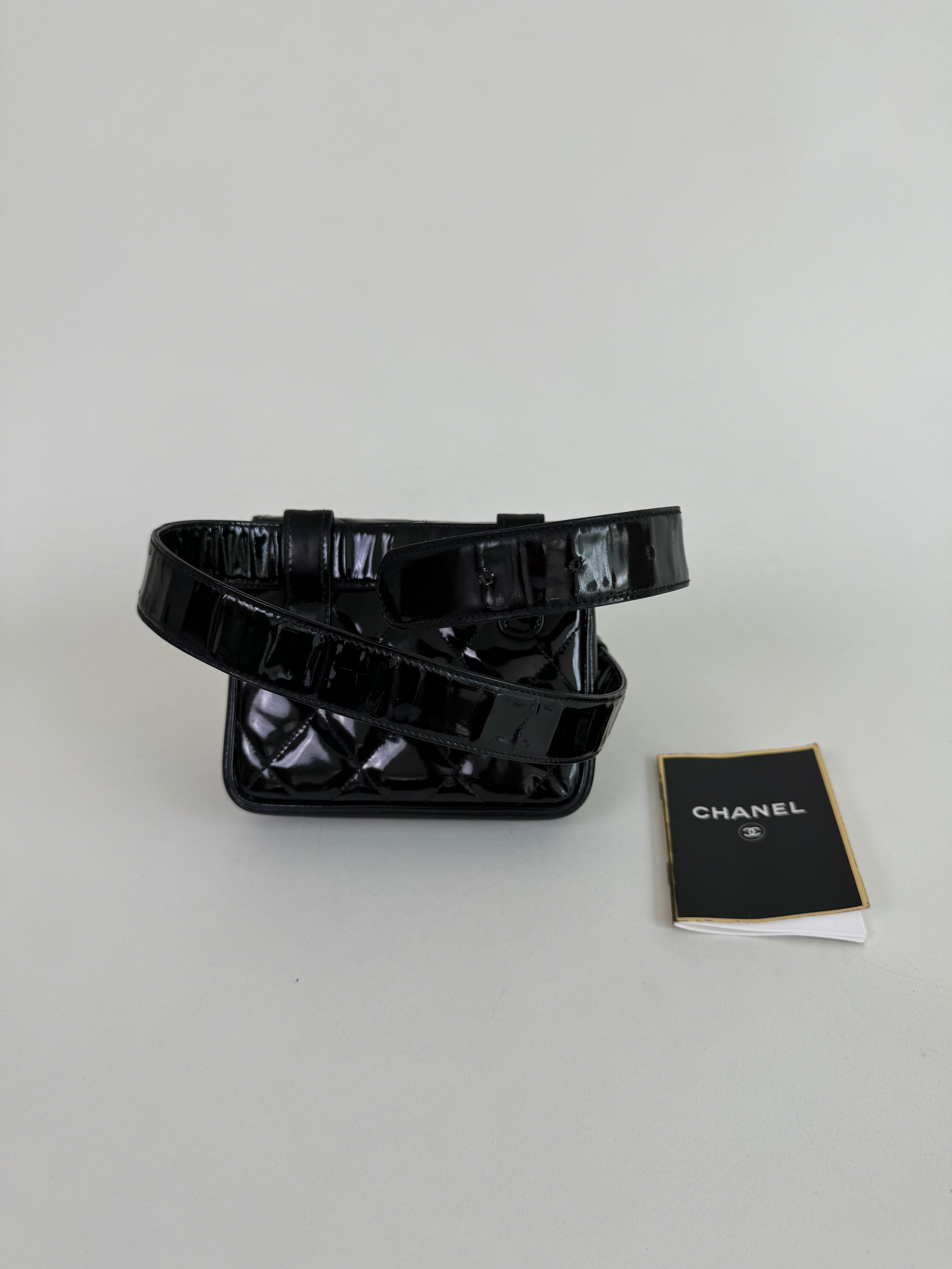 Chanel Black Quilted Patent Leather CC Belt Bag