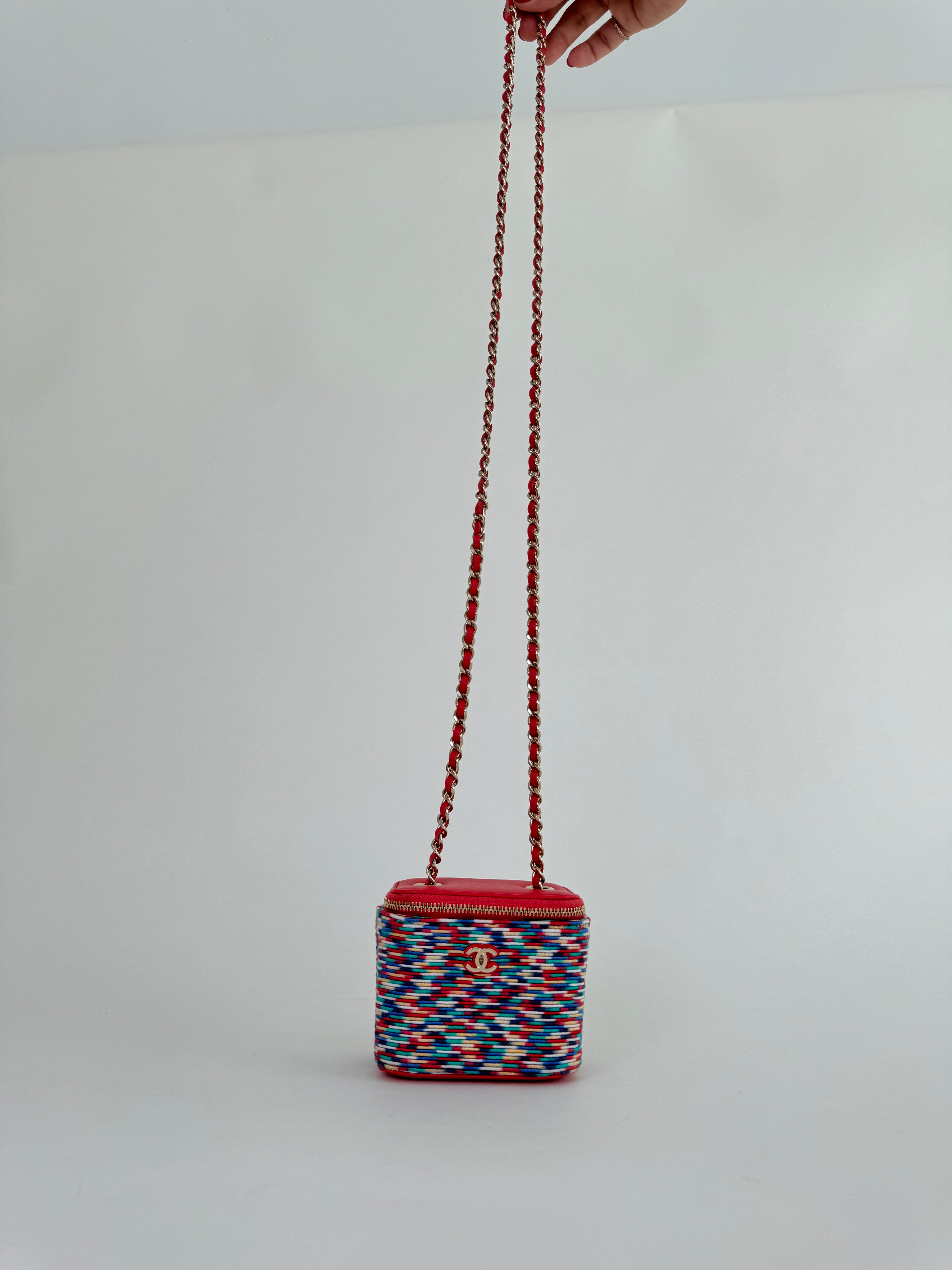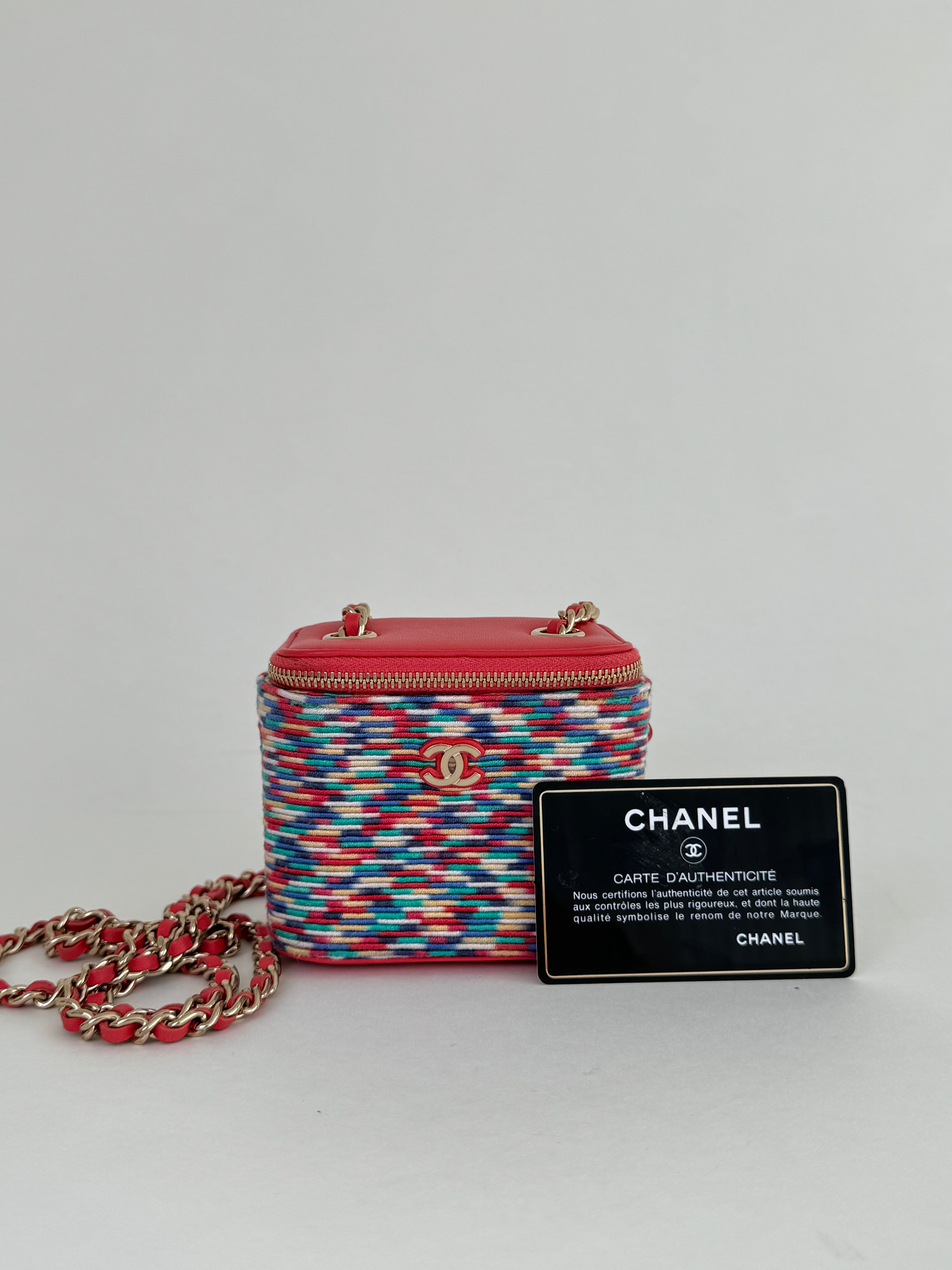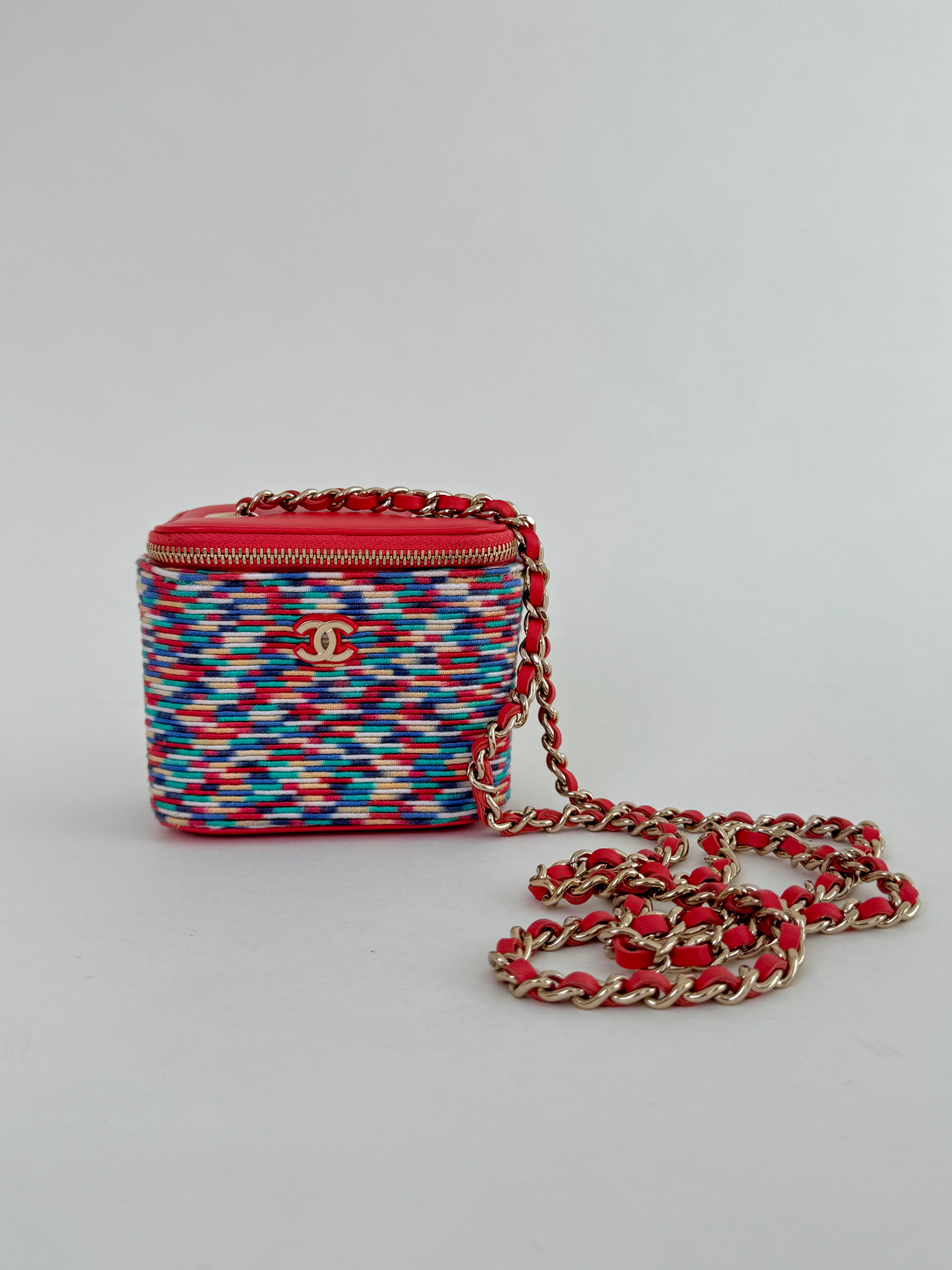 Chanel Vanity Case with Chain Multicolor Embroidered Crochet Mini