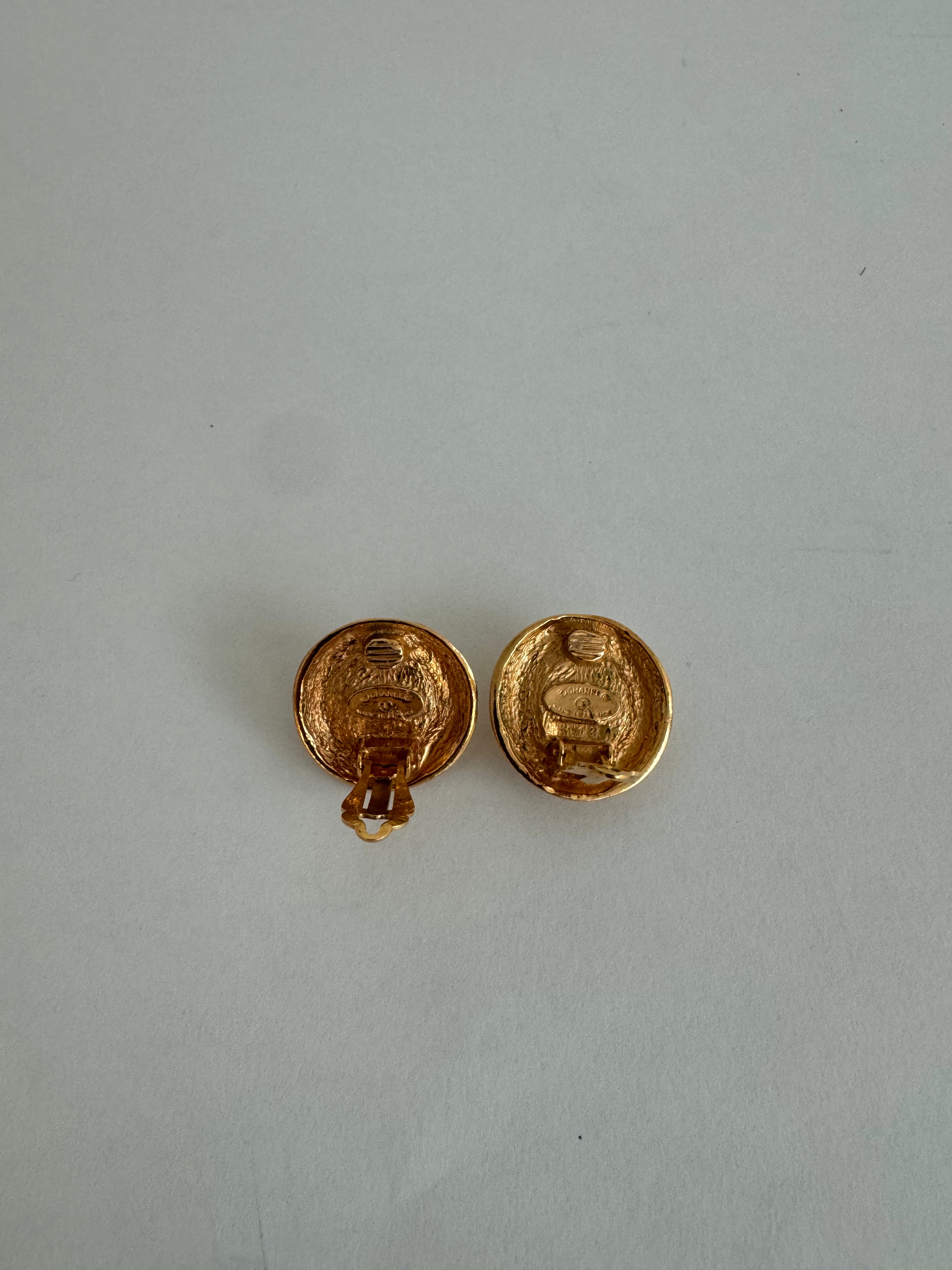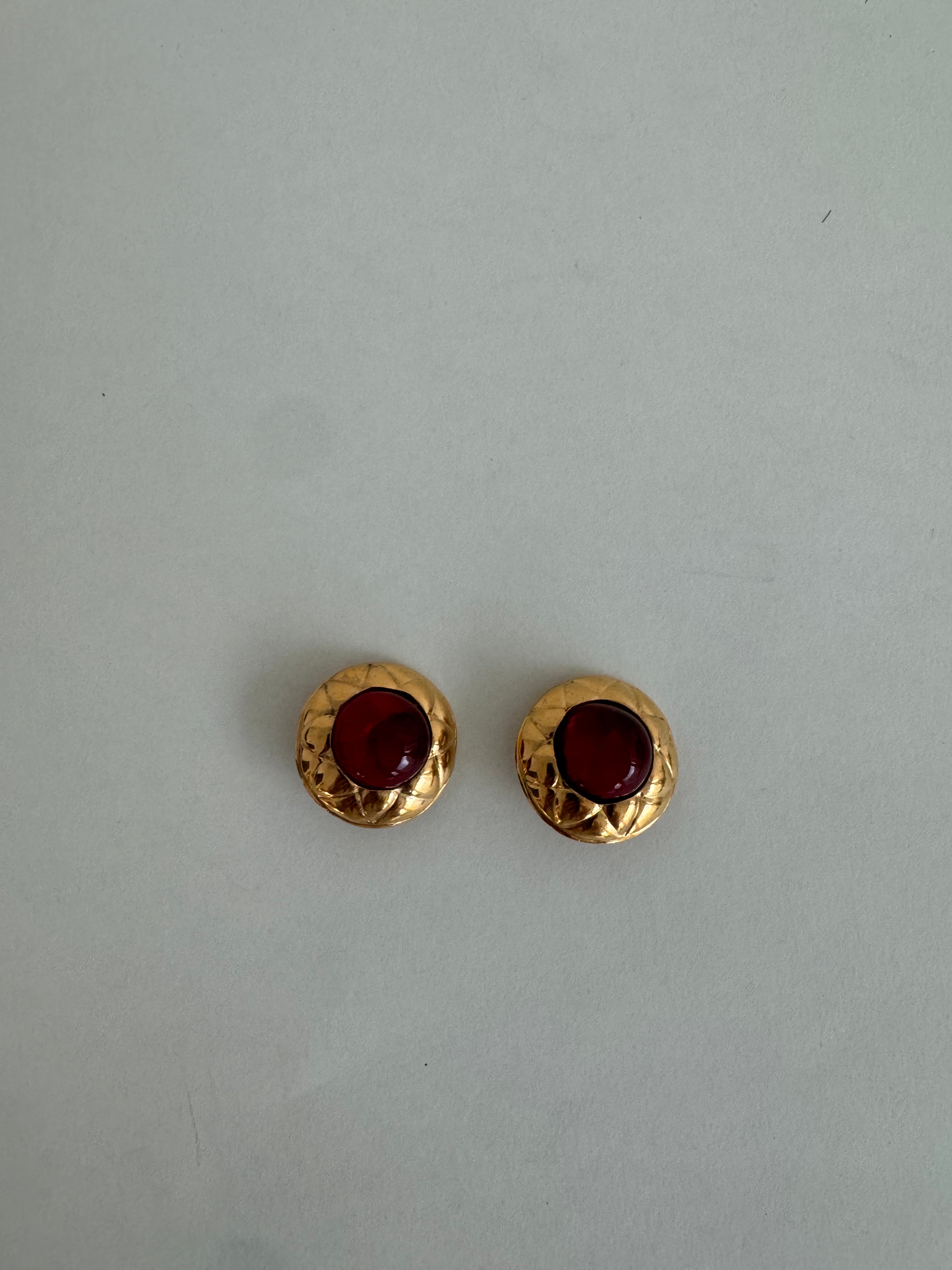 Chanel Vintage Ruby and Gold Clip On Earrings