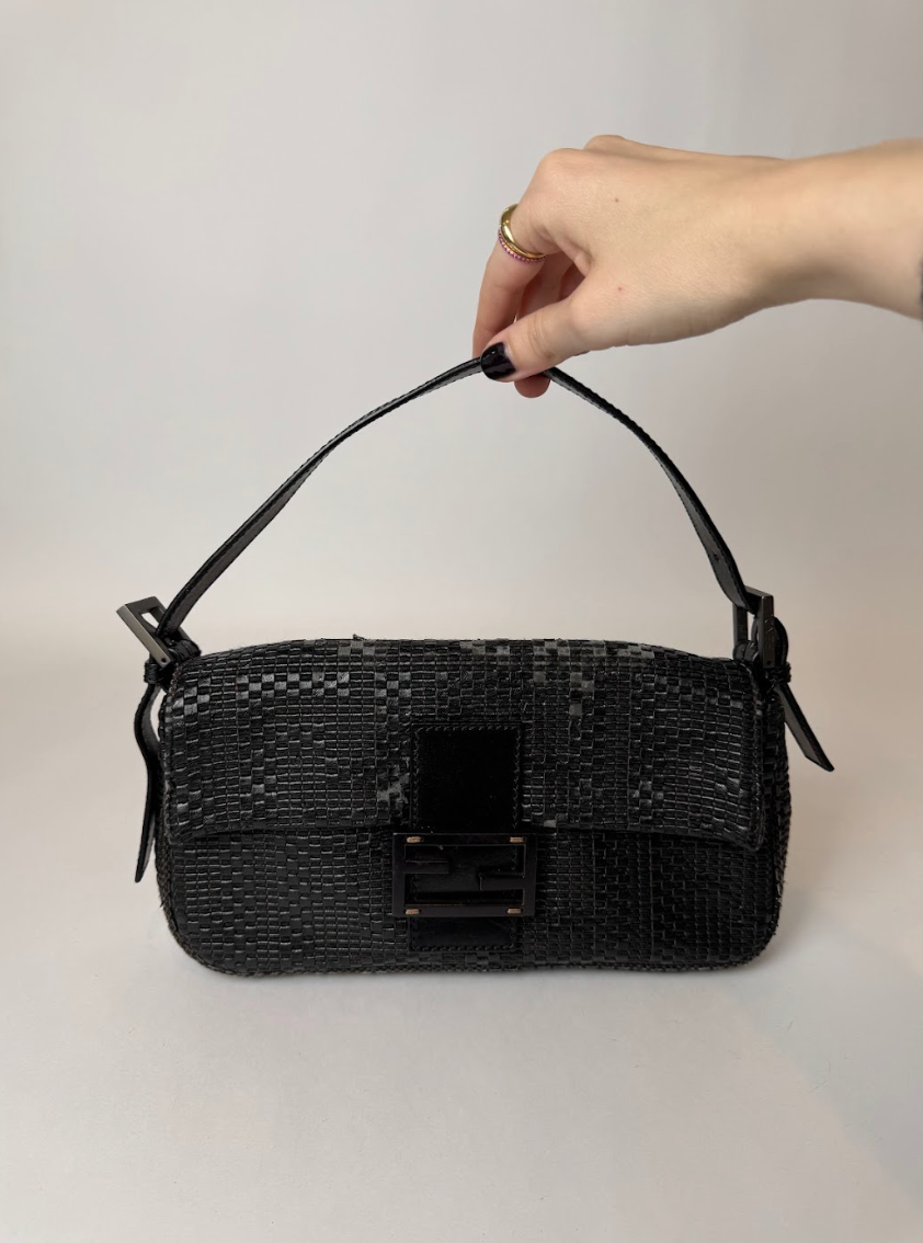 Fendi Black Woven Baguette