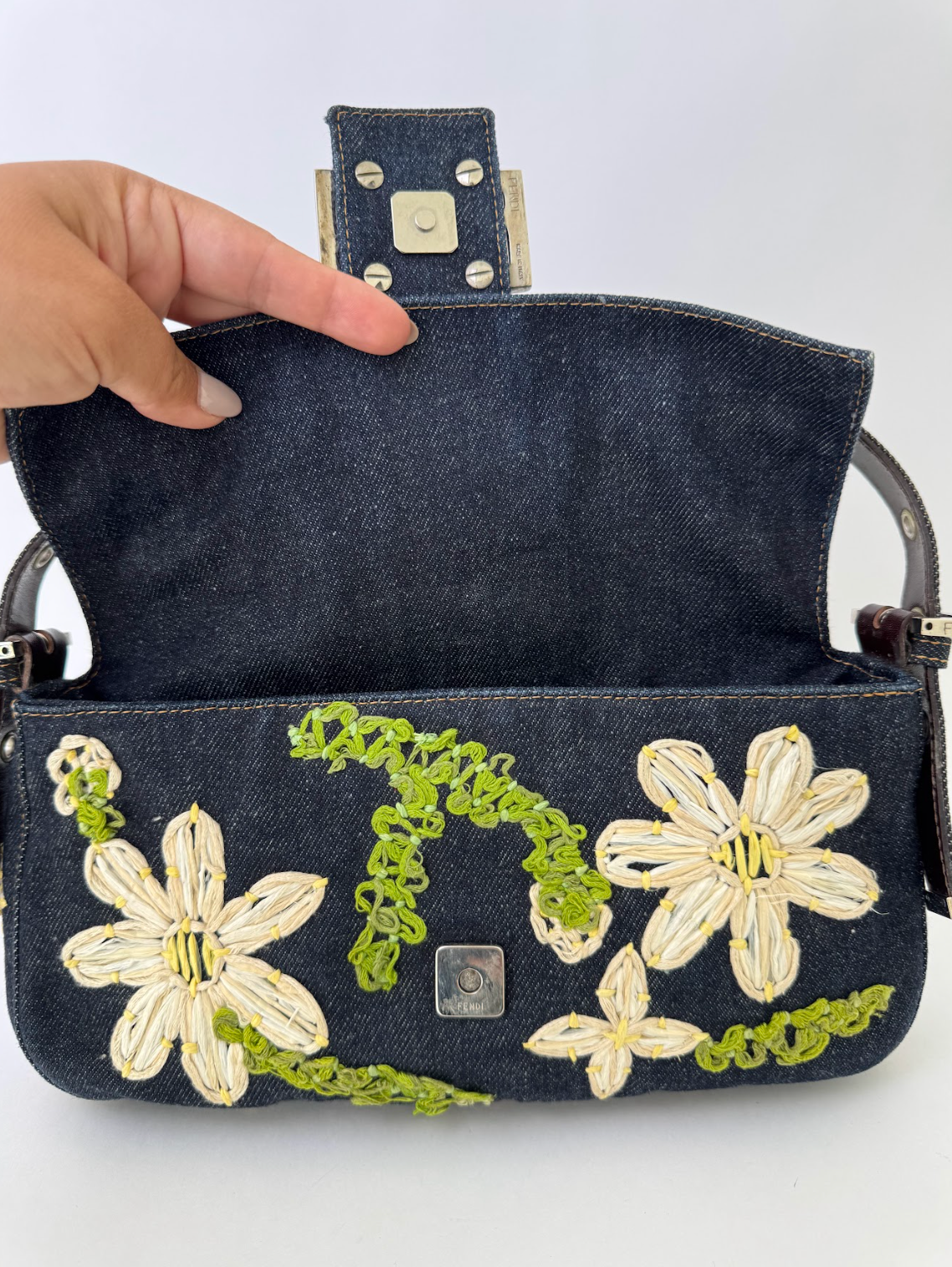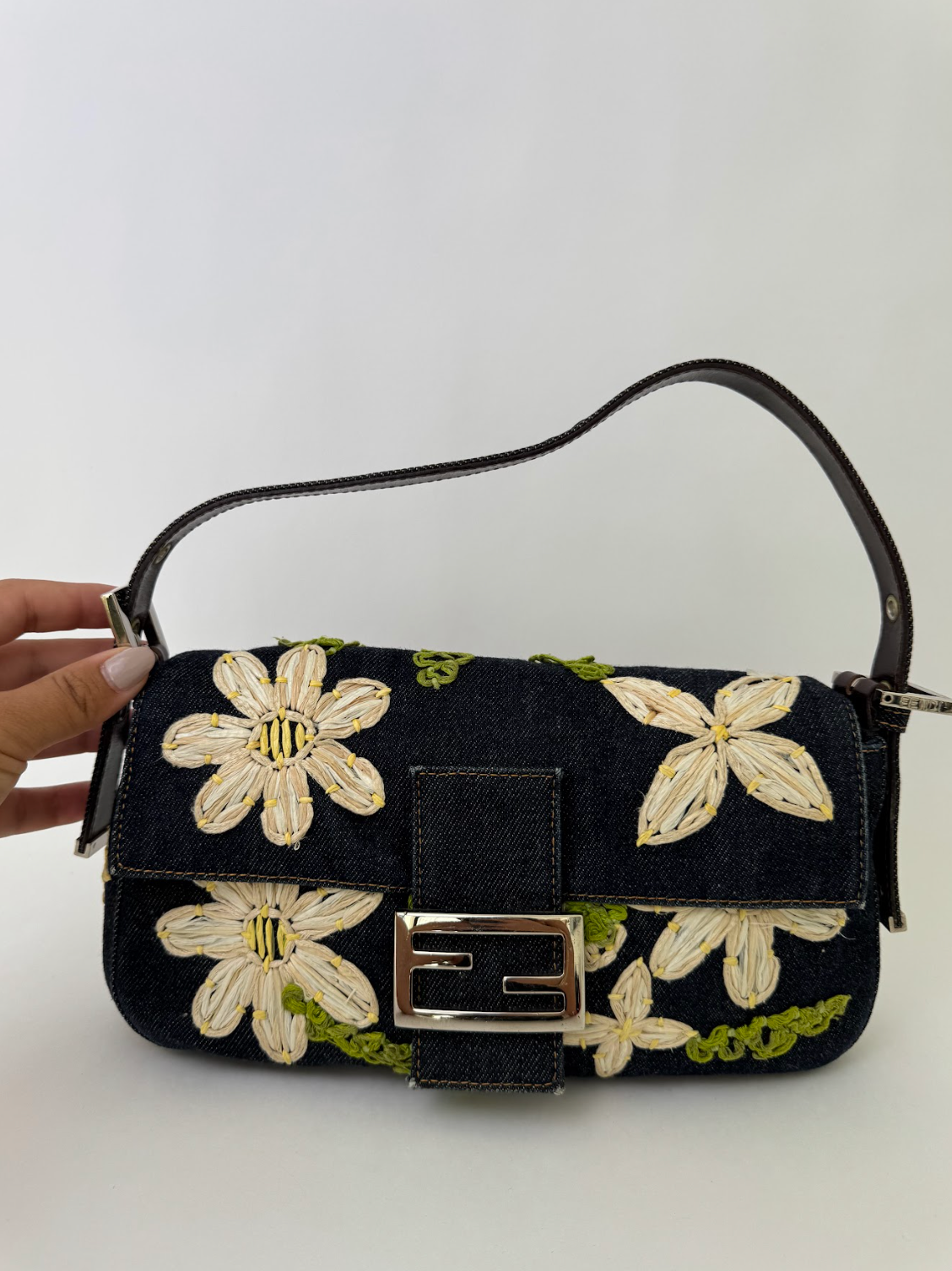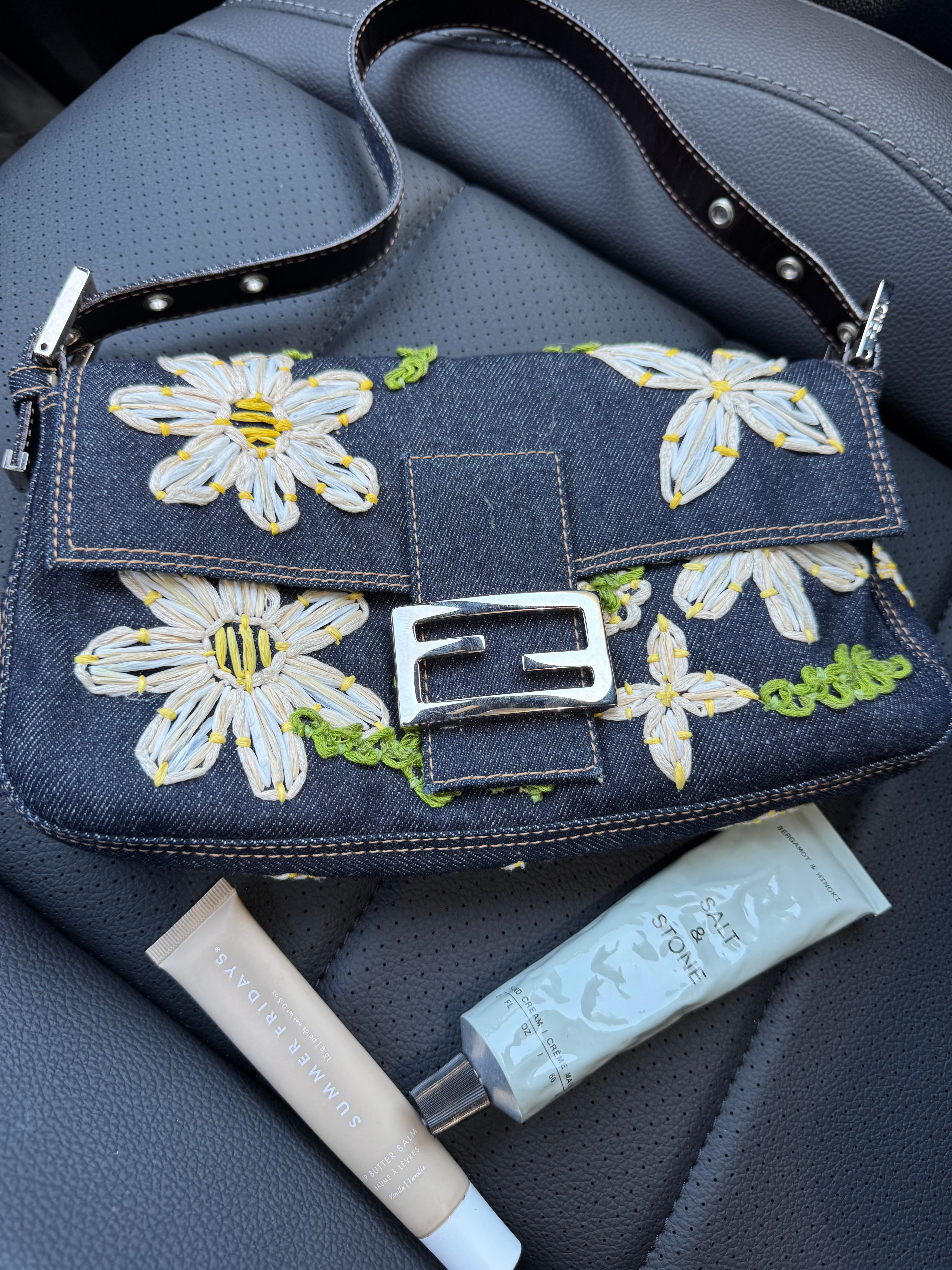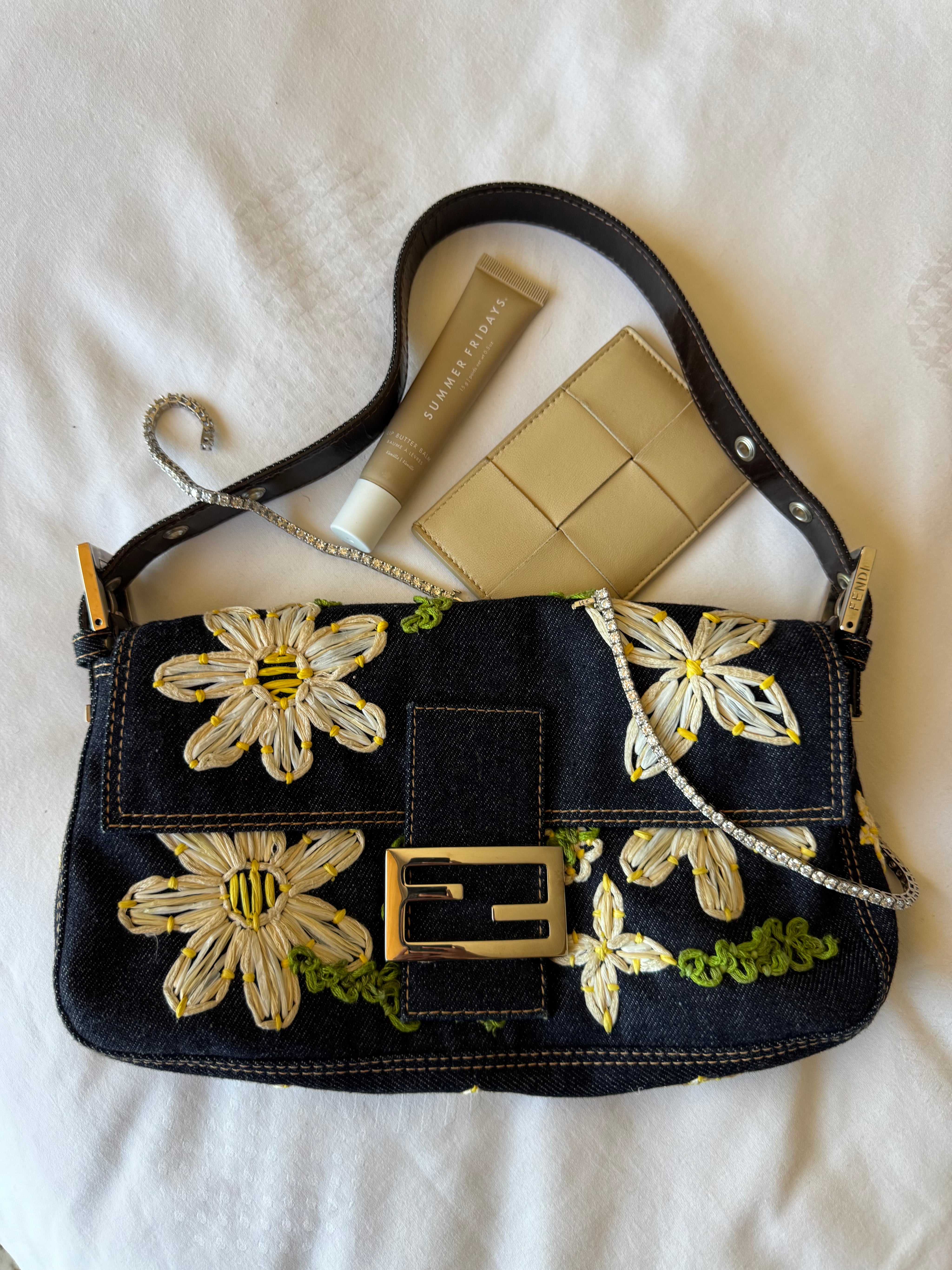 Fendi Denim Daisy Baguette Handbag
