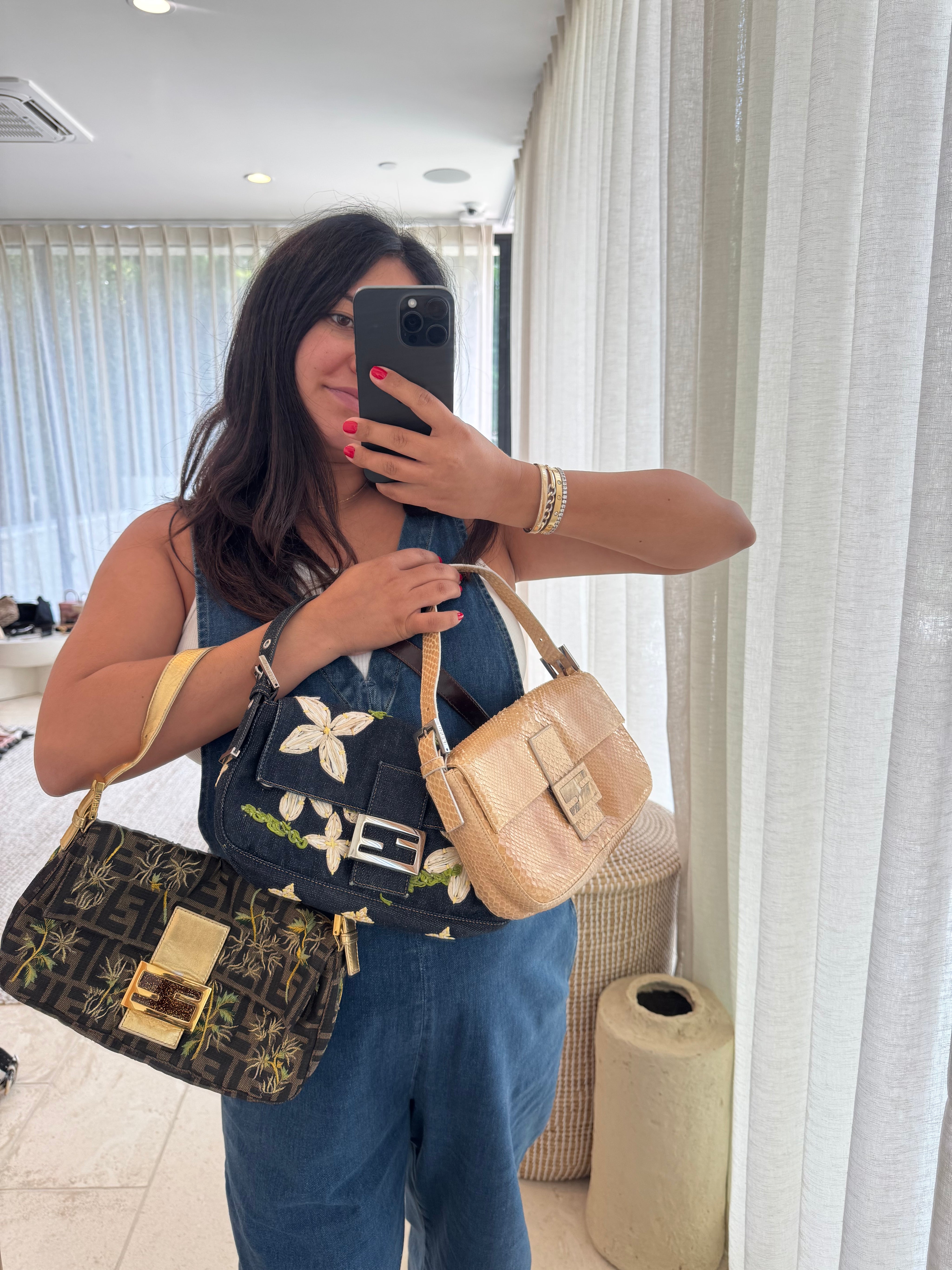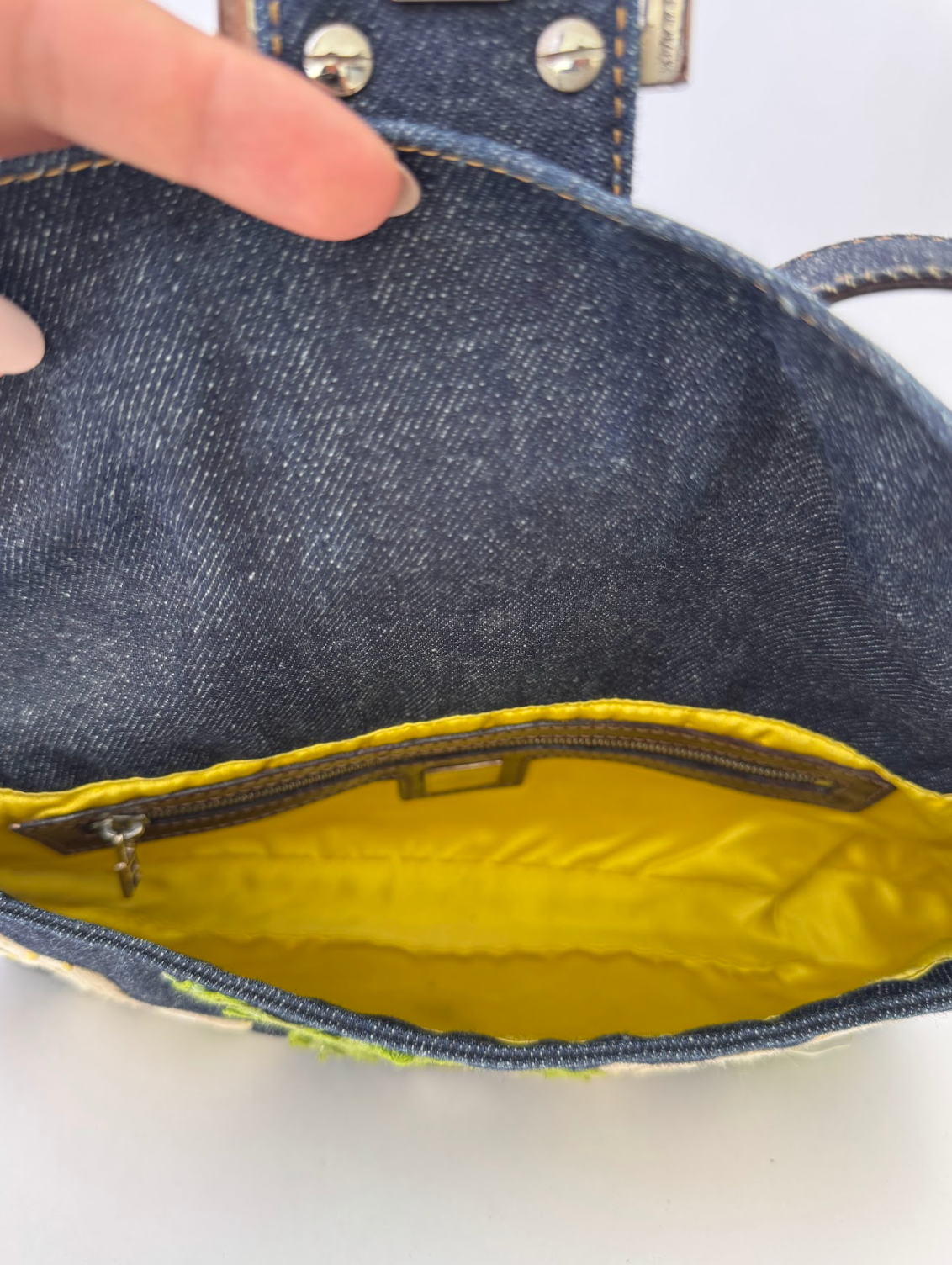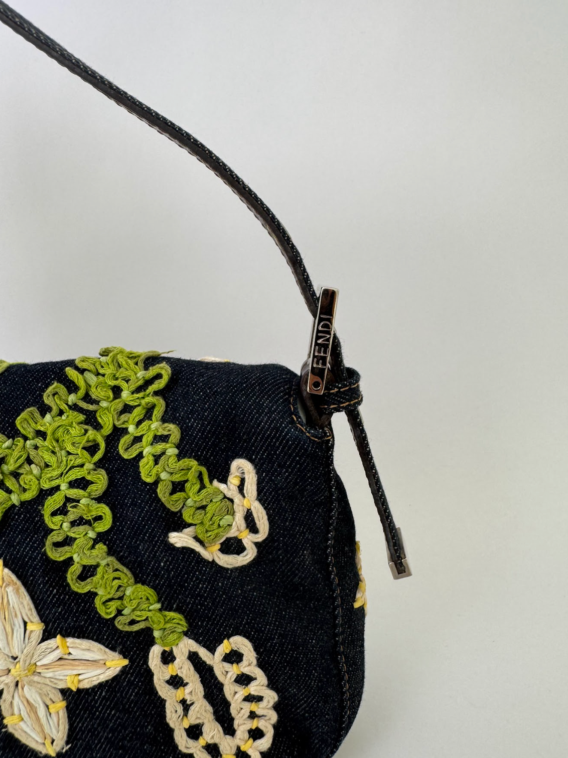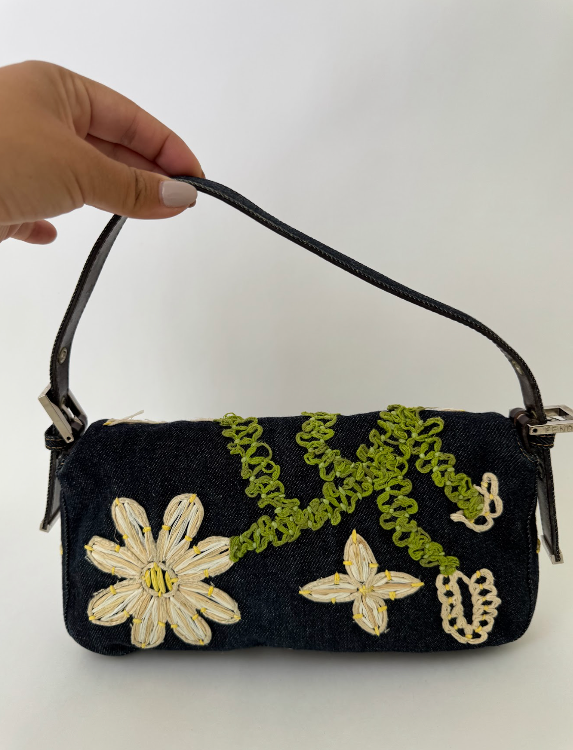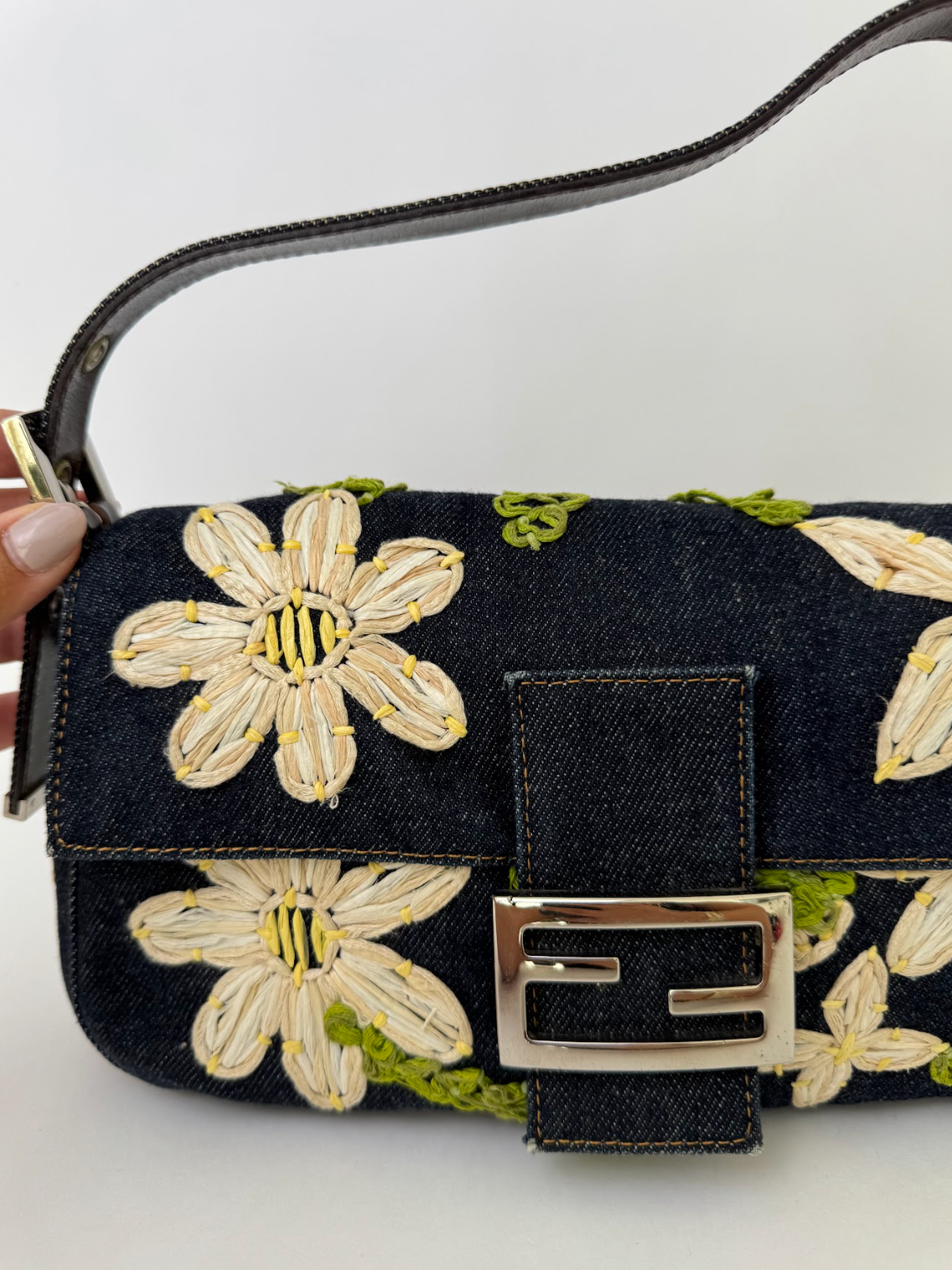 Fendi Denim Daisy Baguette Handbag