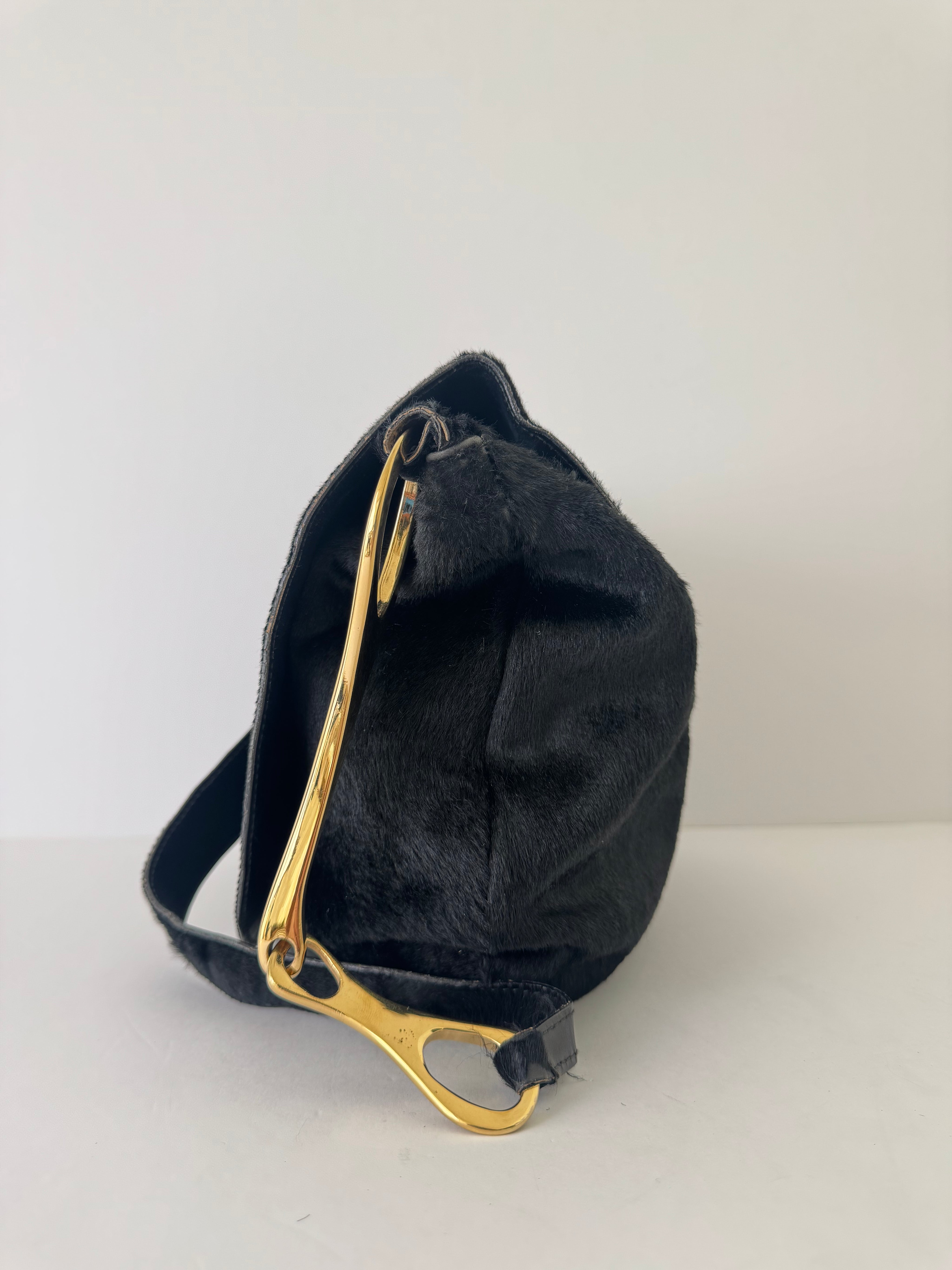 Gucci Tom Ford Black Horsebit Calf Hair Bag Rare