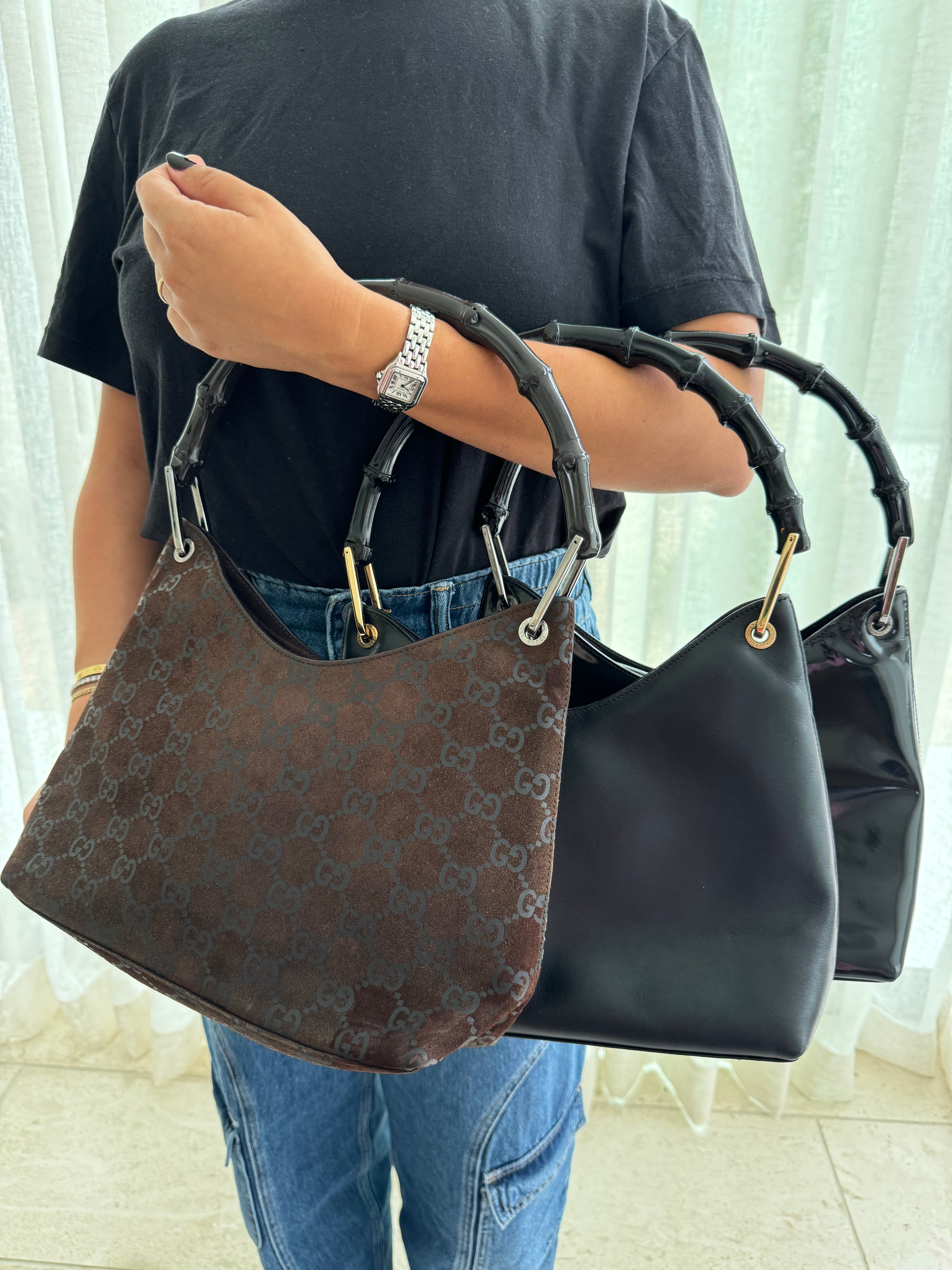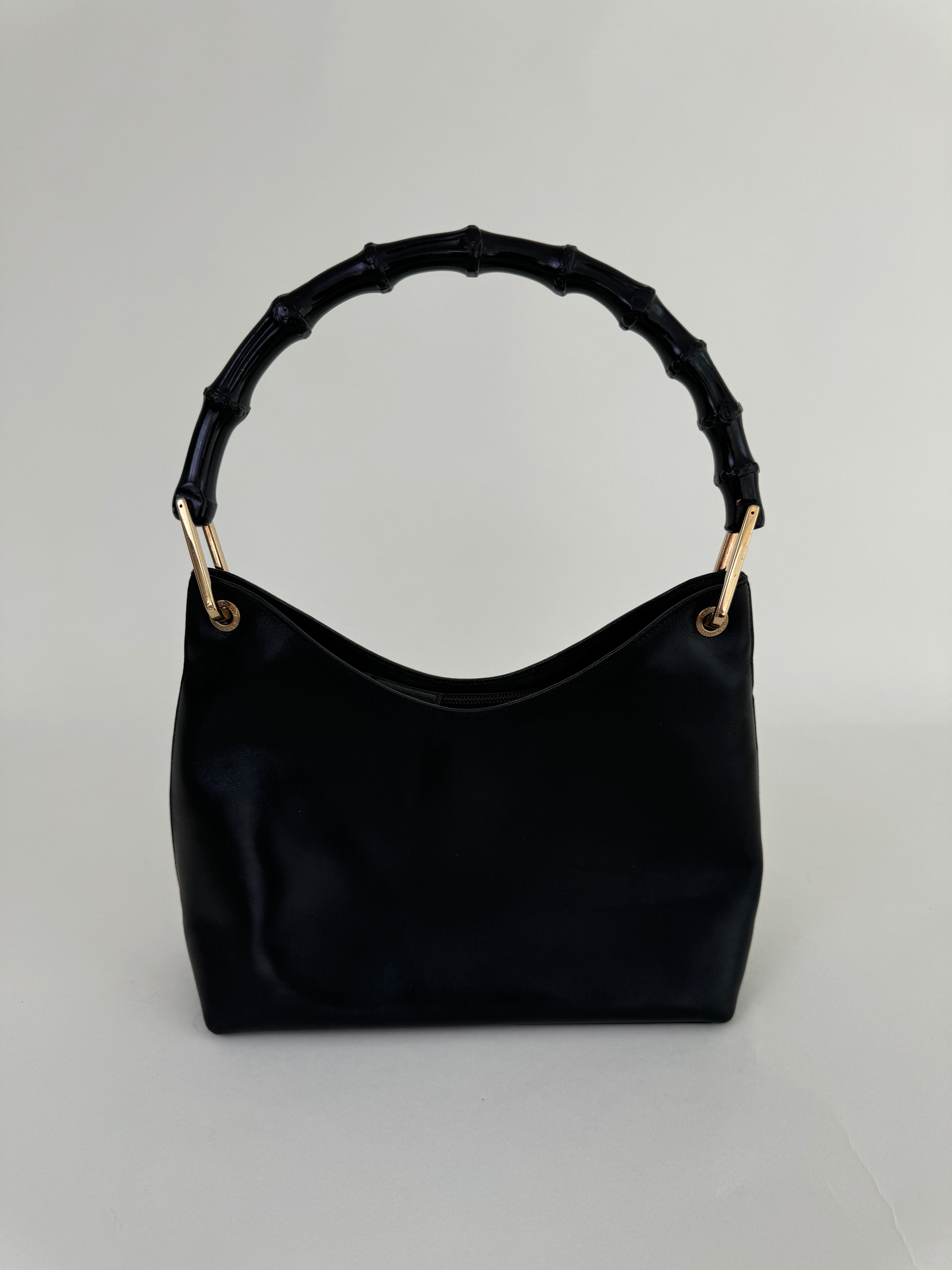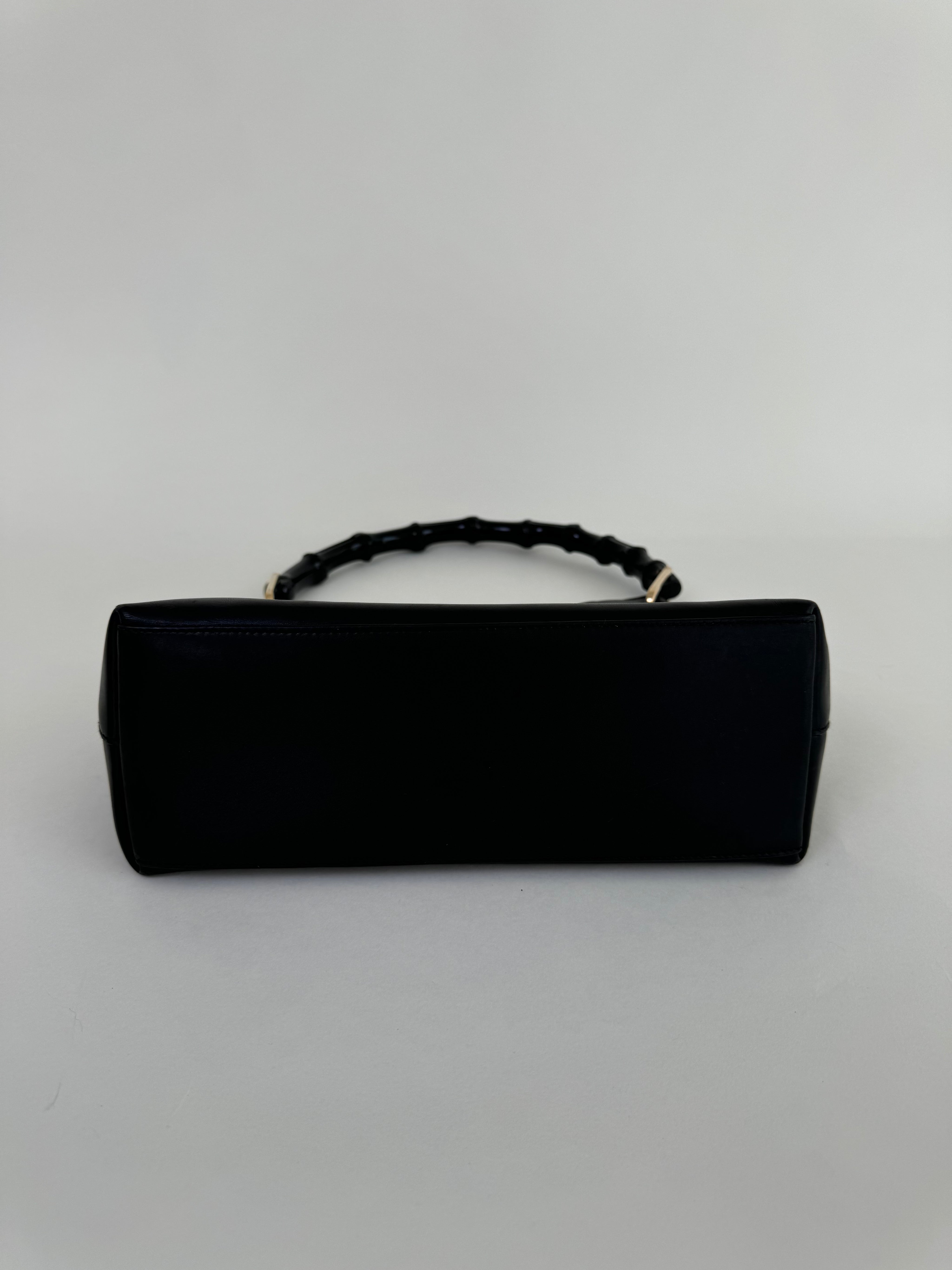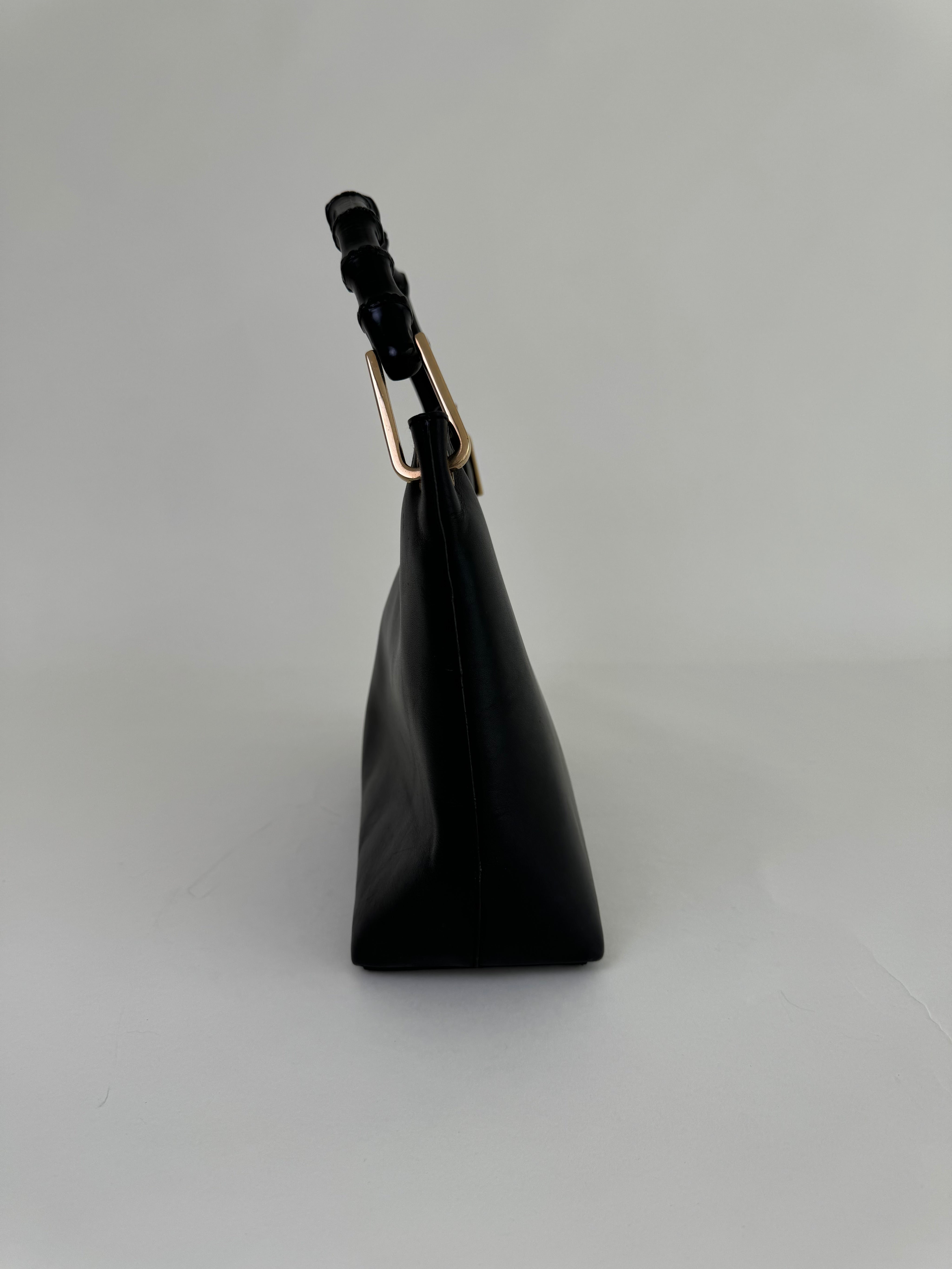 Gucci Black Leather Bamboo Handbag