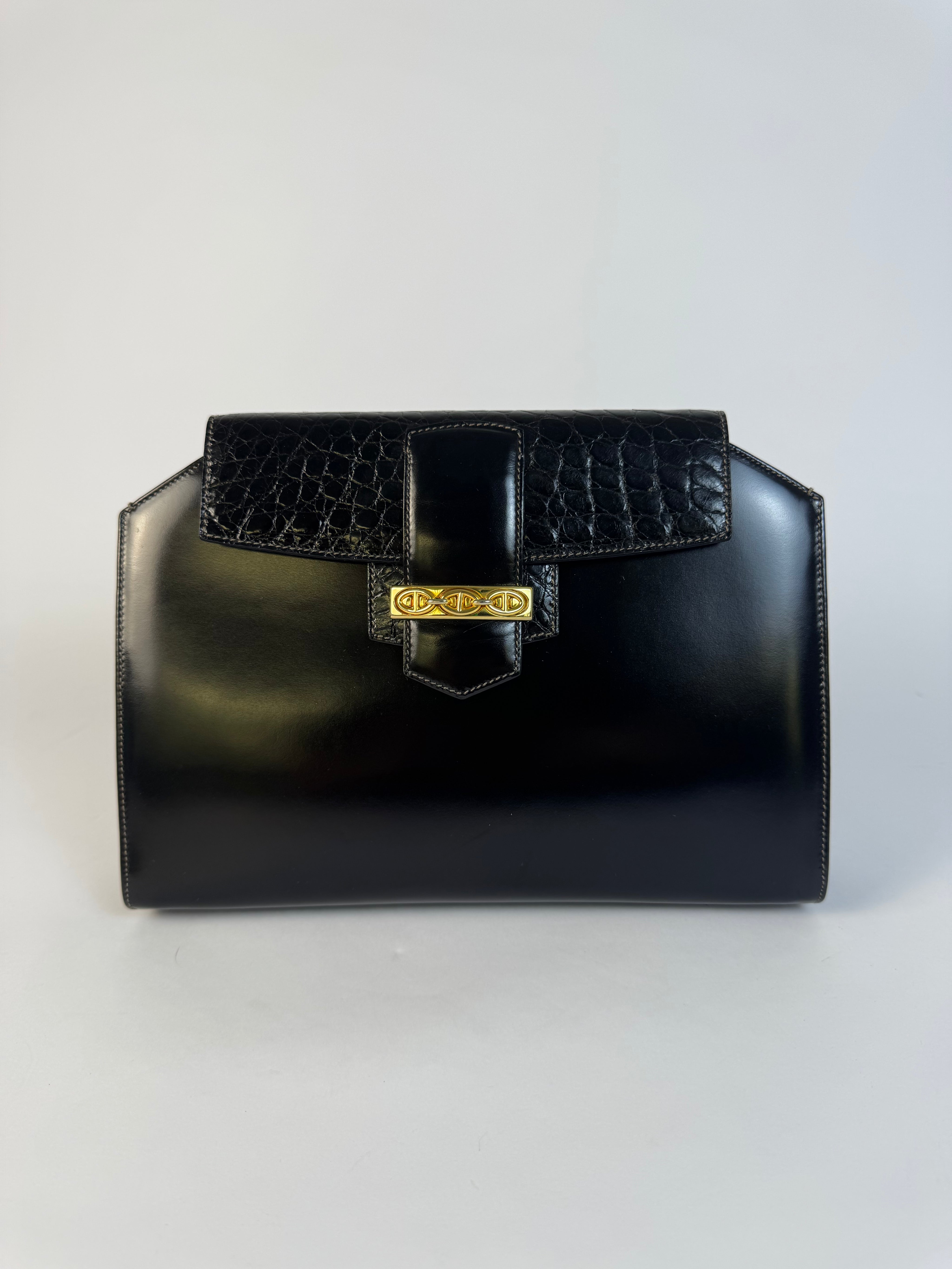 Gucci Vintage Black Croc Leather Clutch