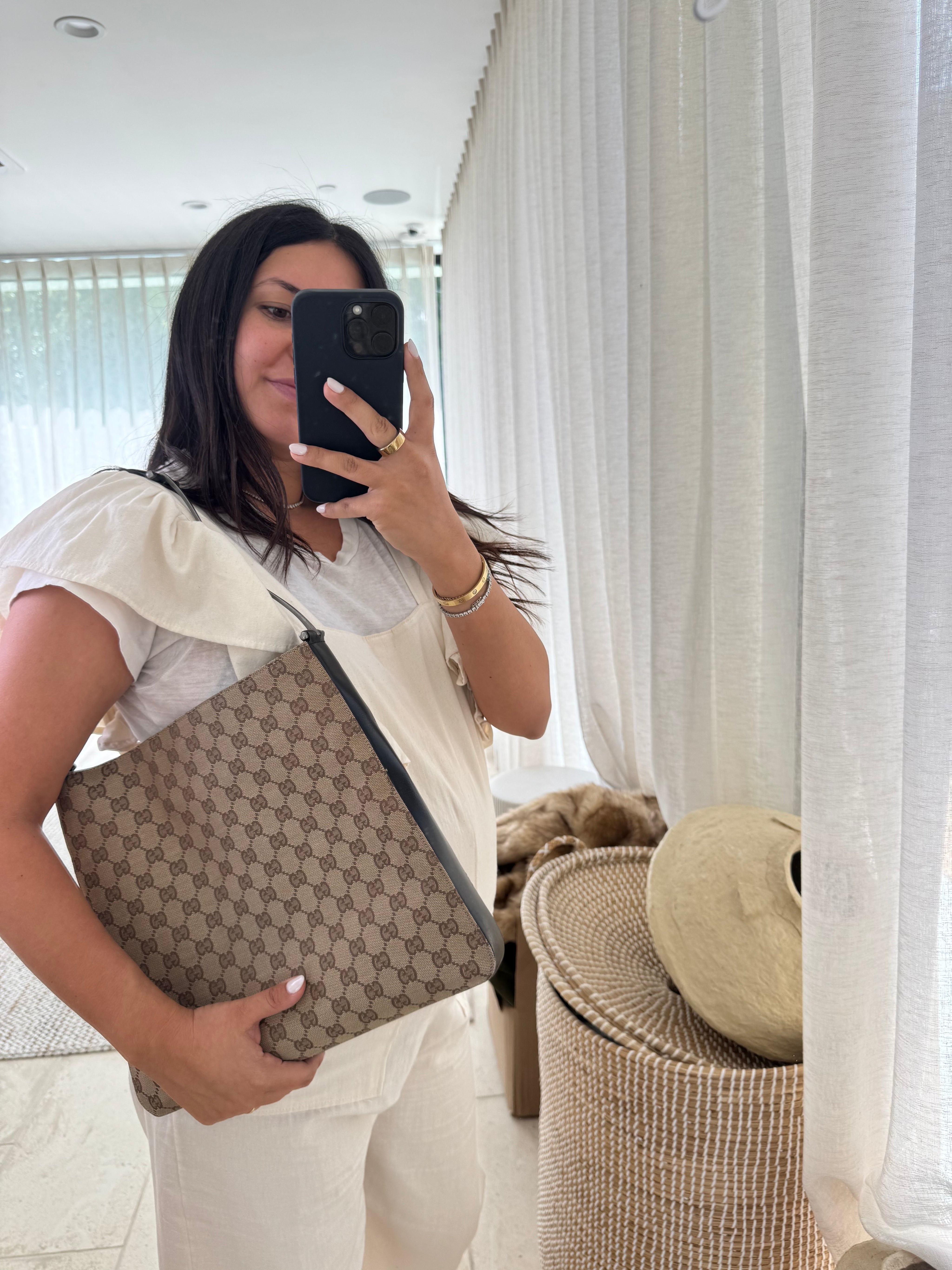 Gucci Tom Ford Horsebit Canvas Shoulder Bag