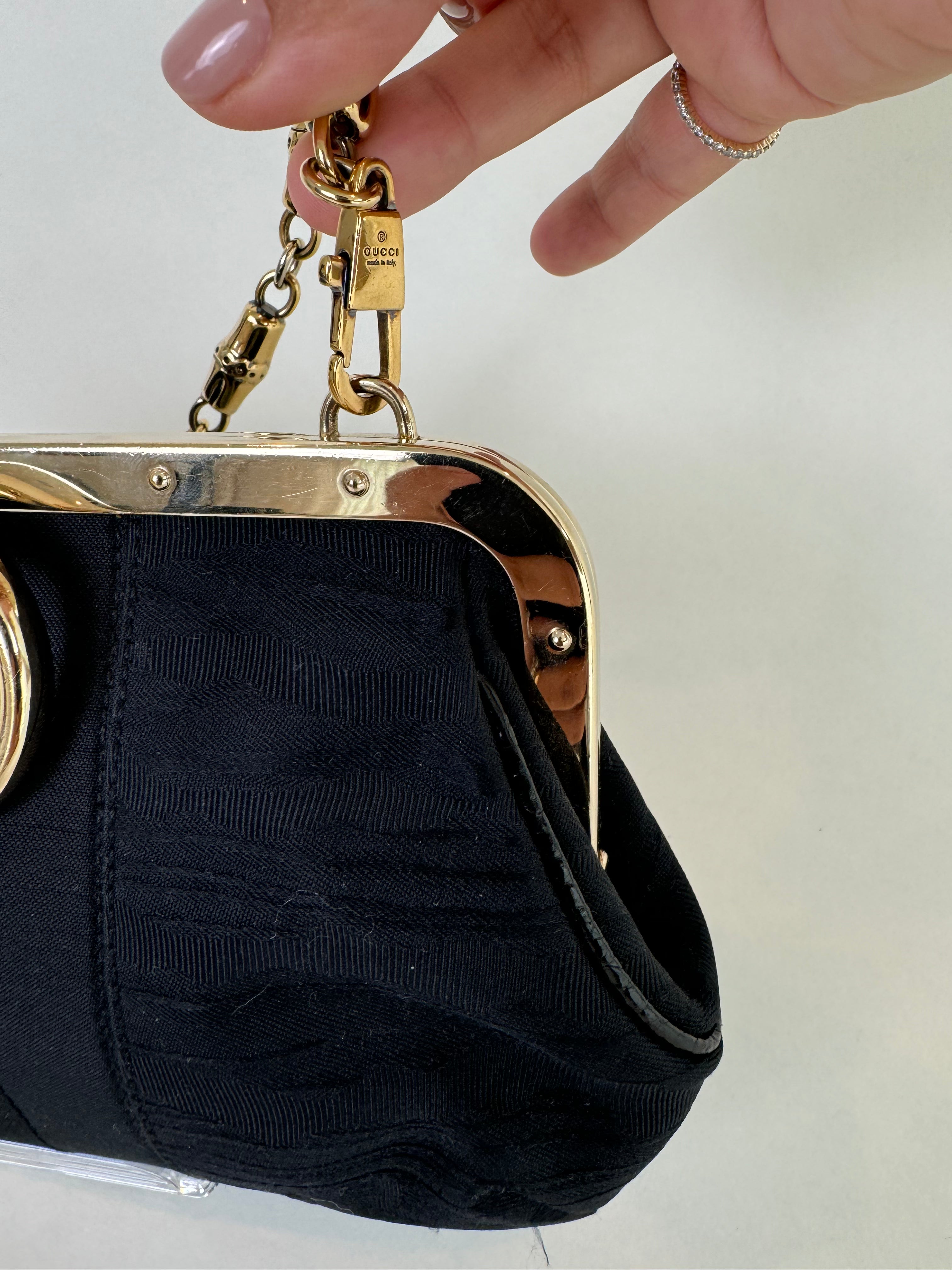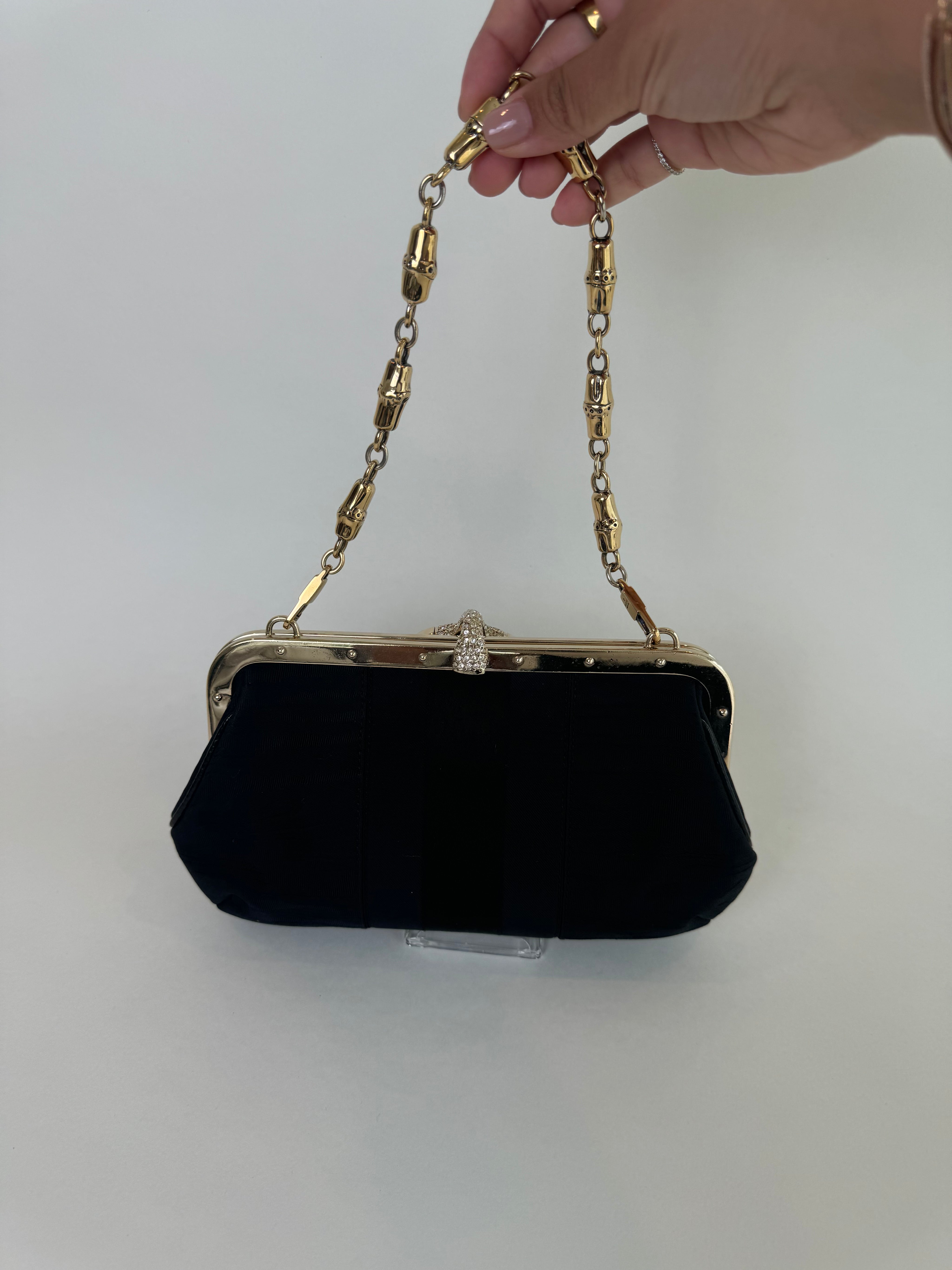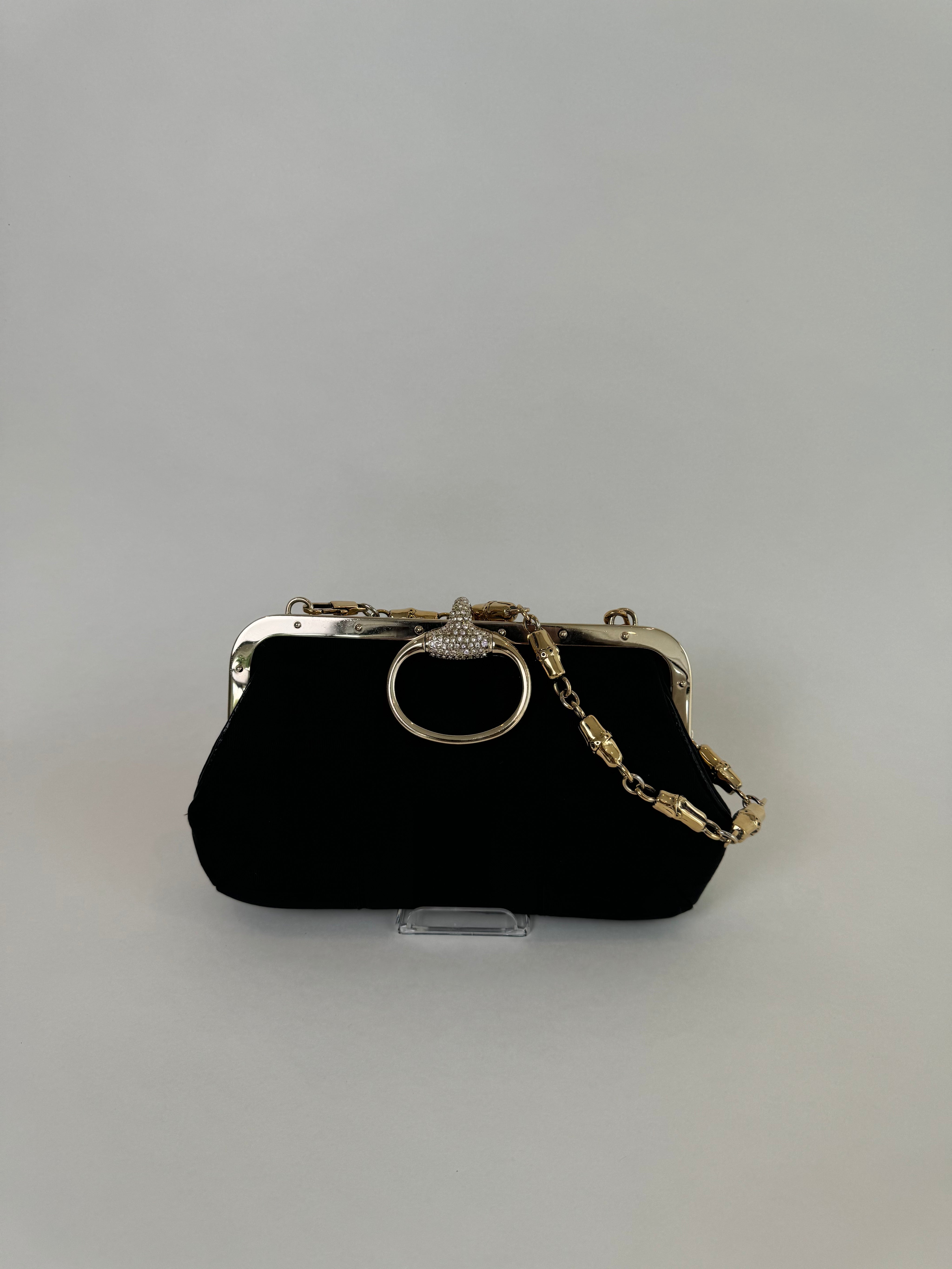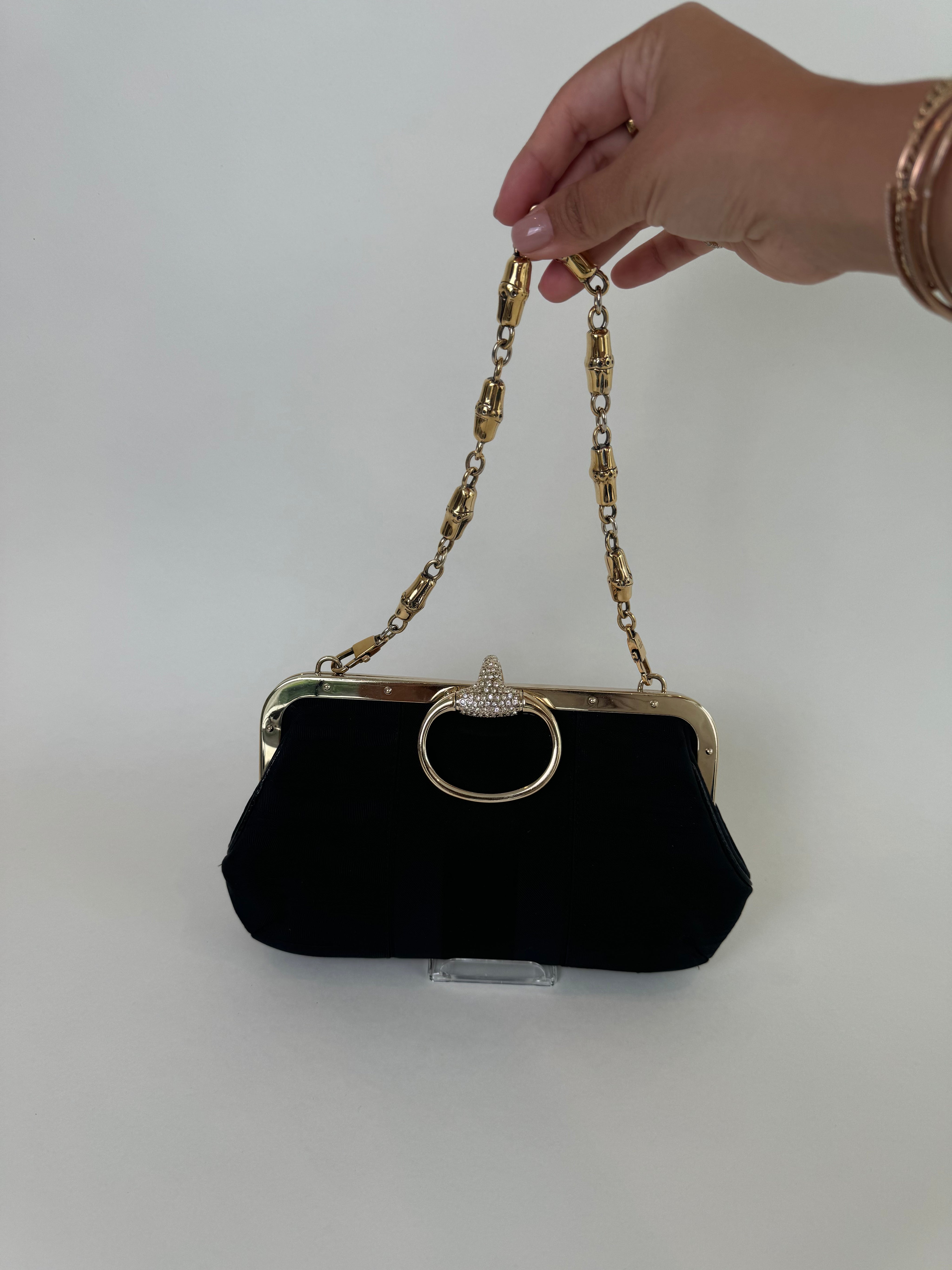 Gucci Crystal-Embellished Leather Evening Black Bag