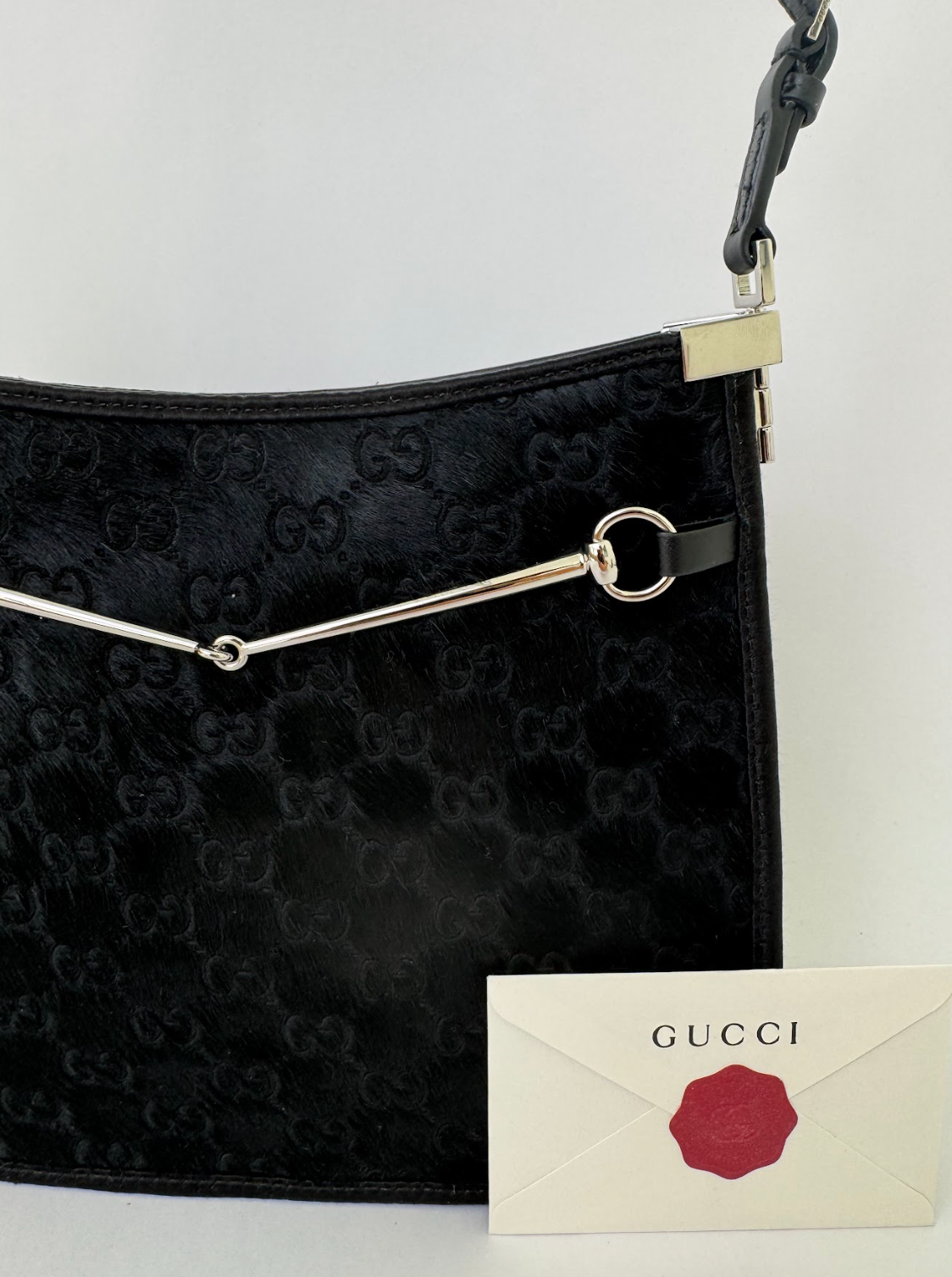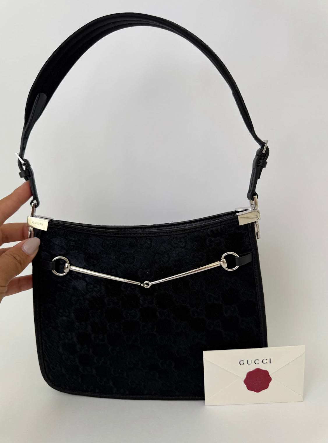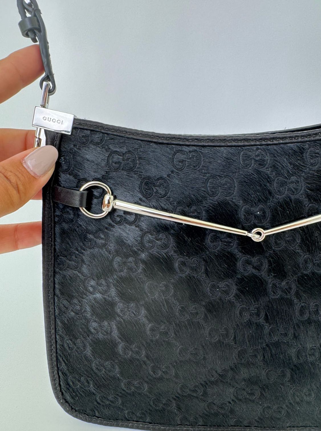 Gucci Calf Hair Horsebit Shoulder Bag New