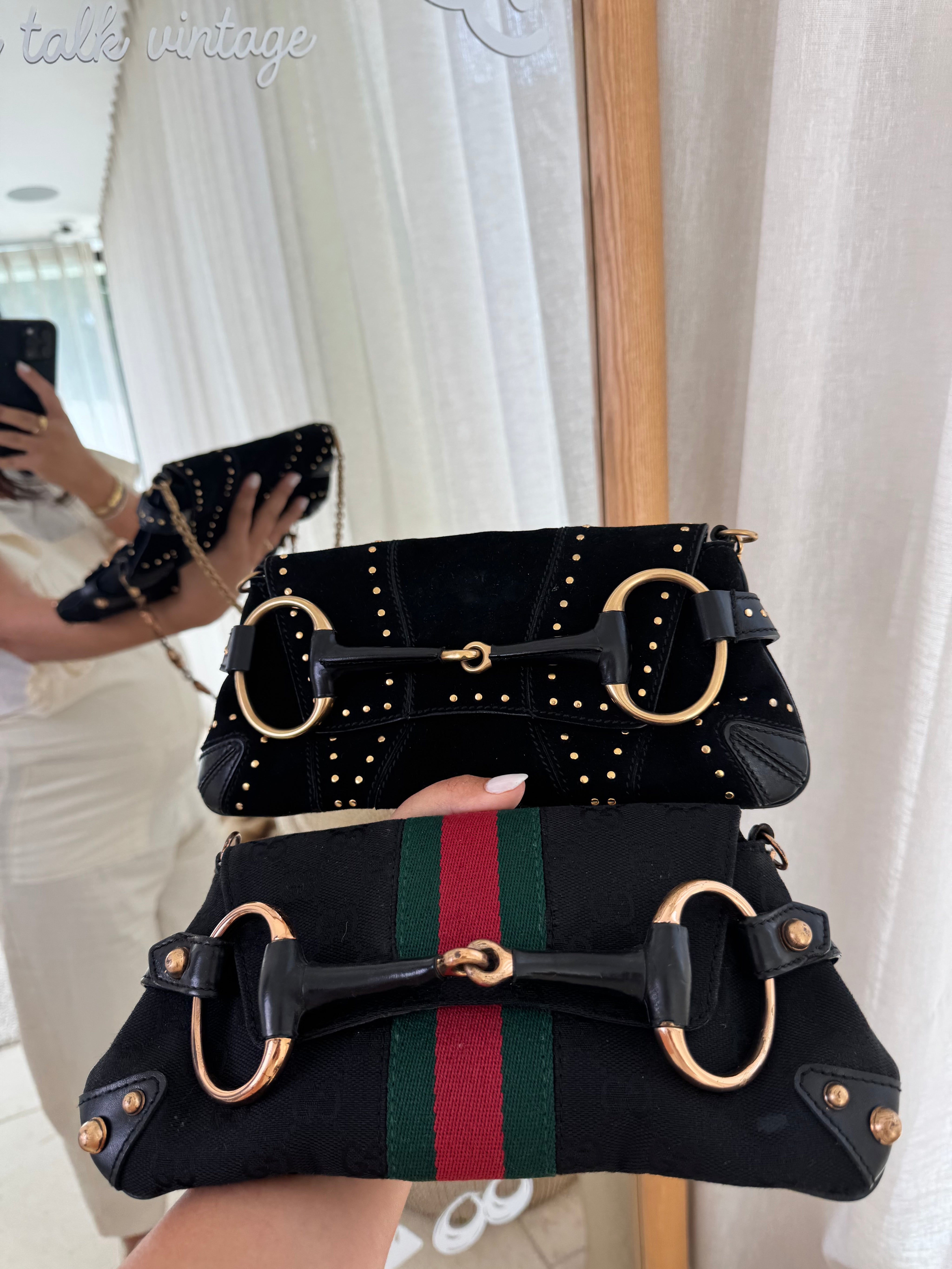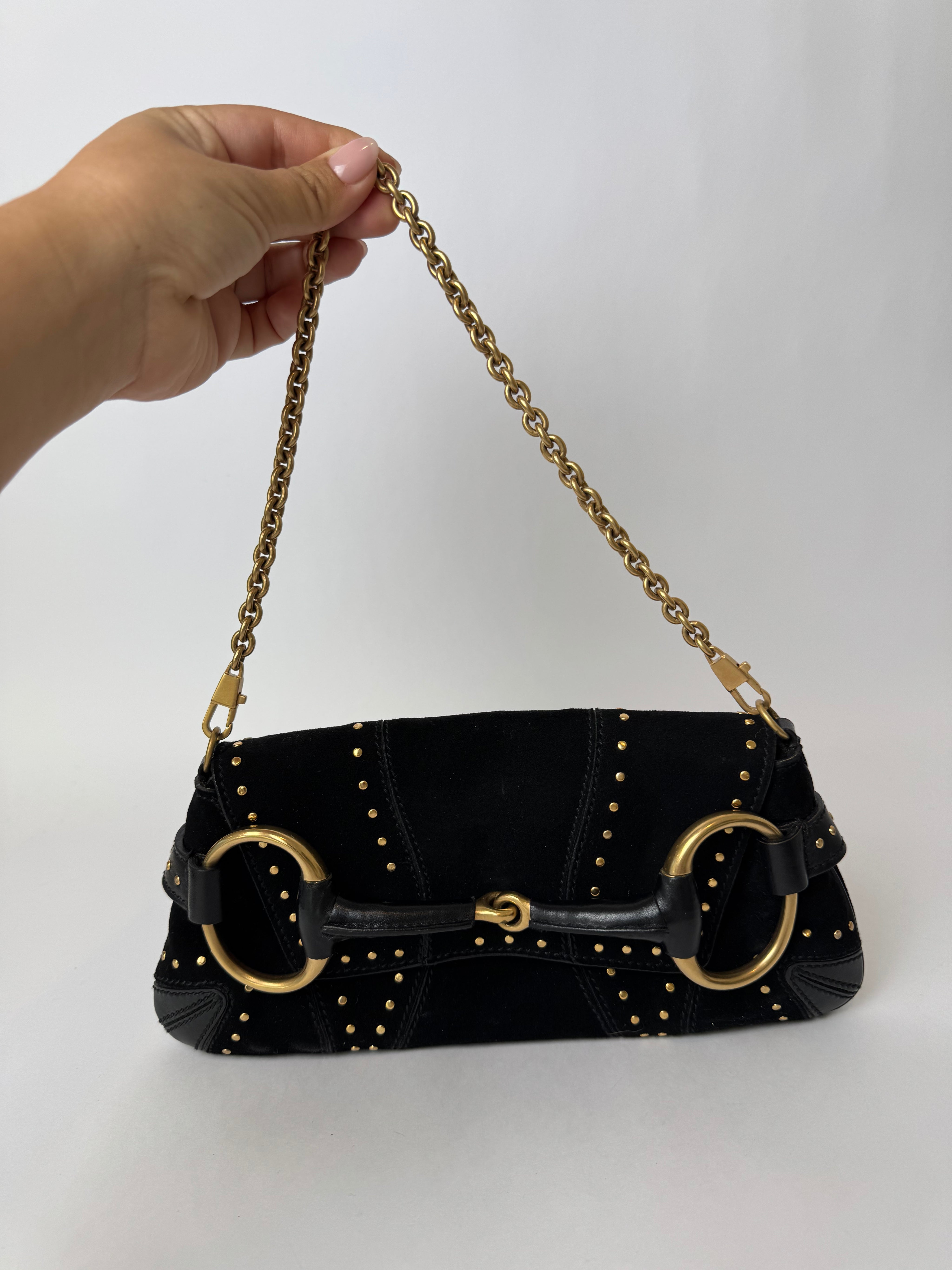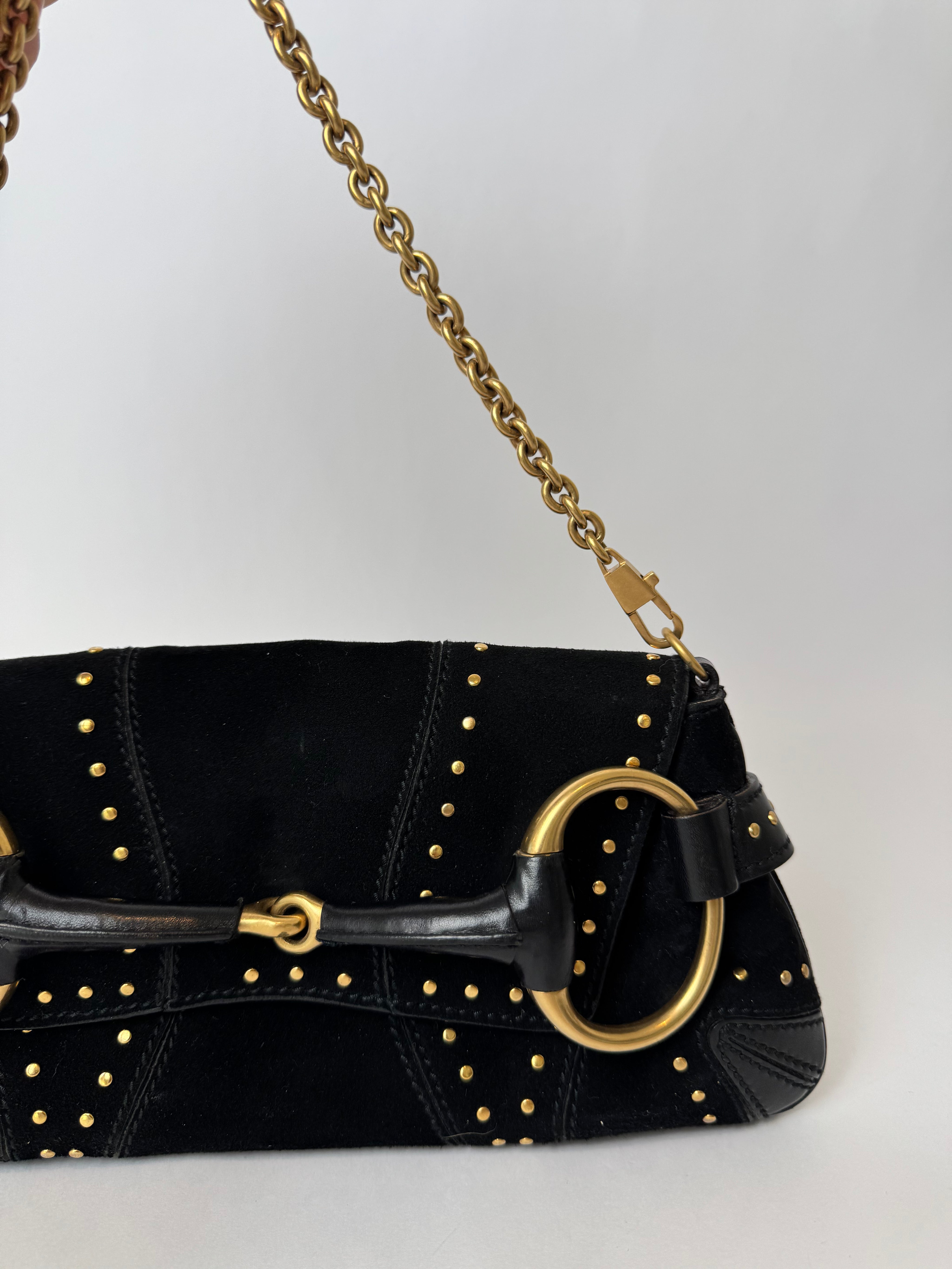 Gucci Horsebit Black Suede Shoulder Bag/Clutch