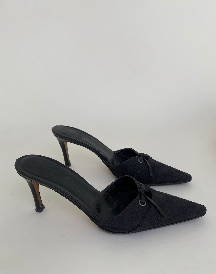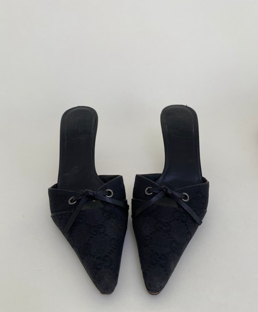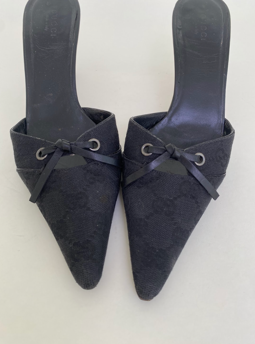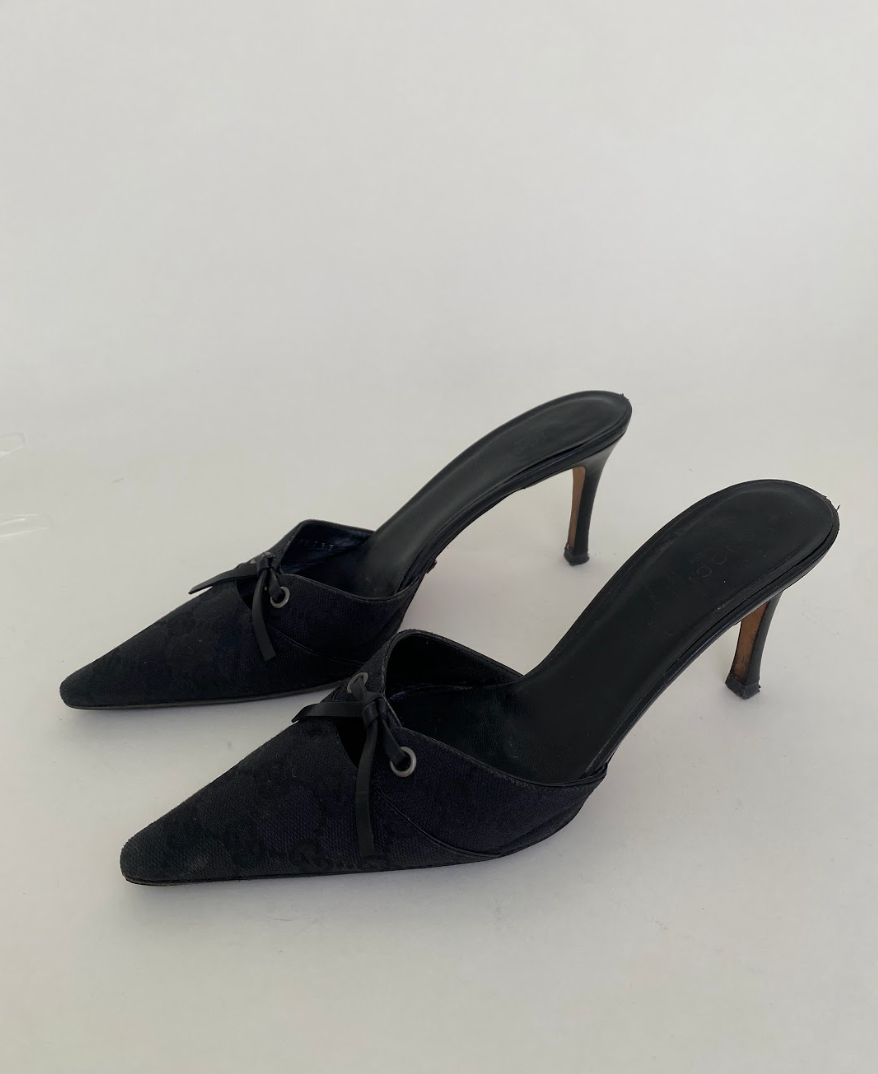 Gucci GG Monogram Canvas Black Mule Heels 7.5