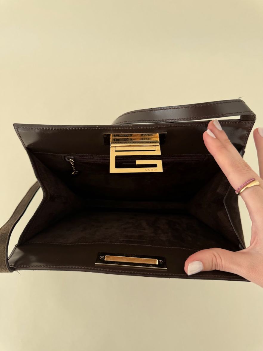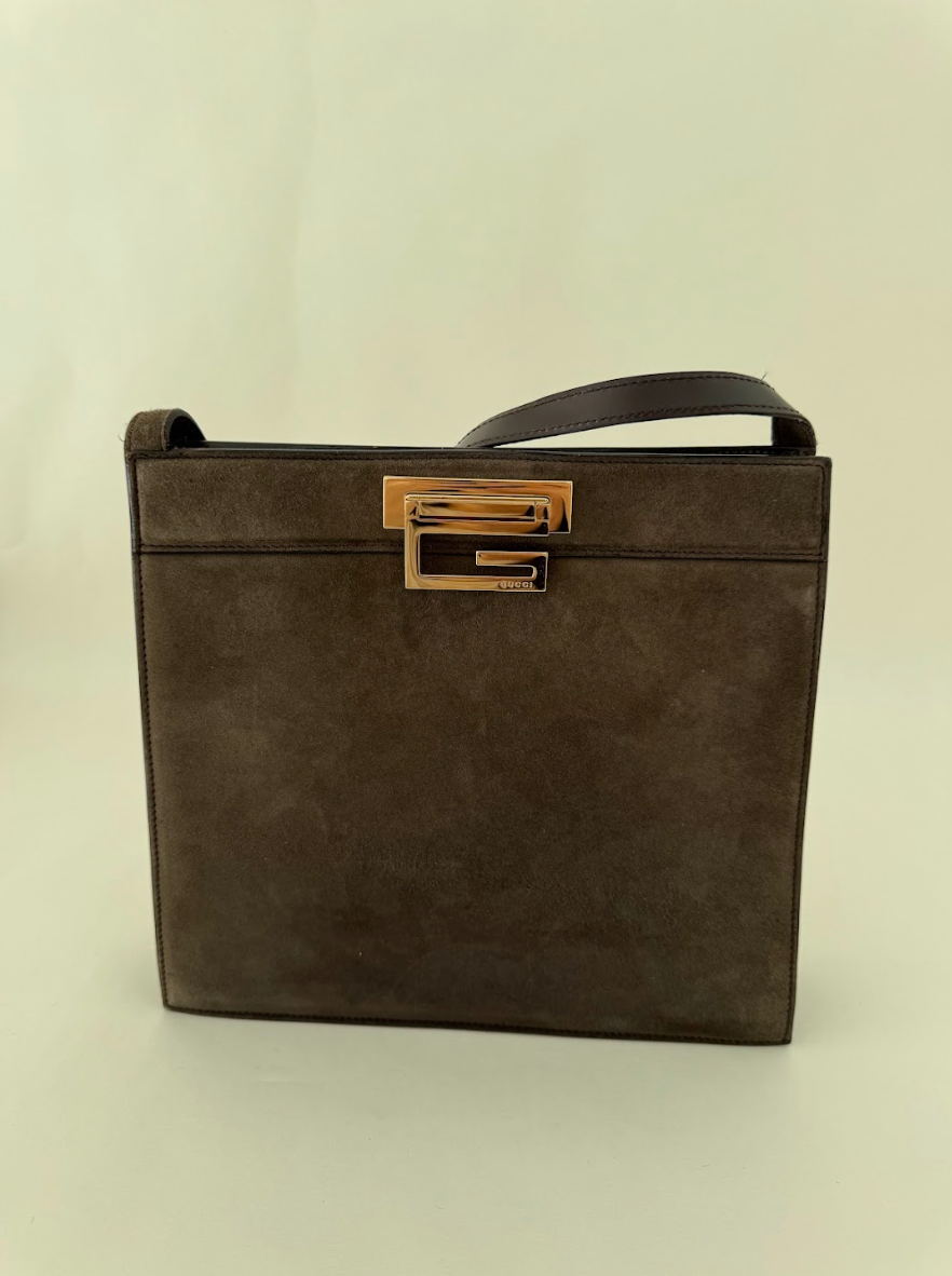 Gucci Tom Ford Brown Suede Shoulder Bag Medium