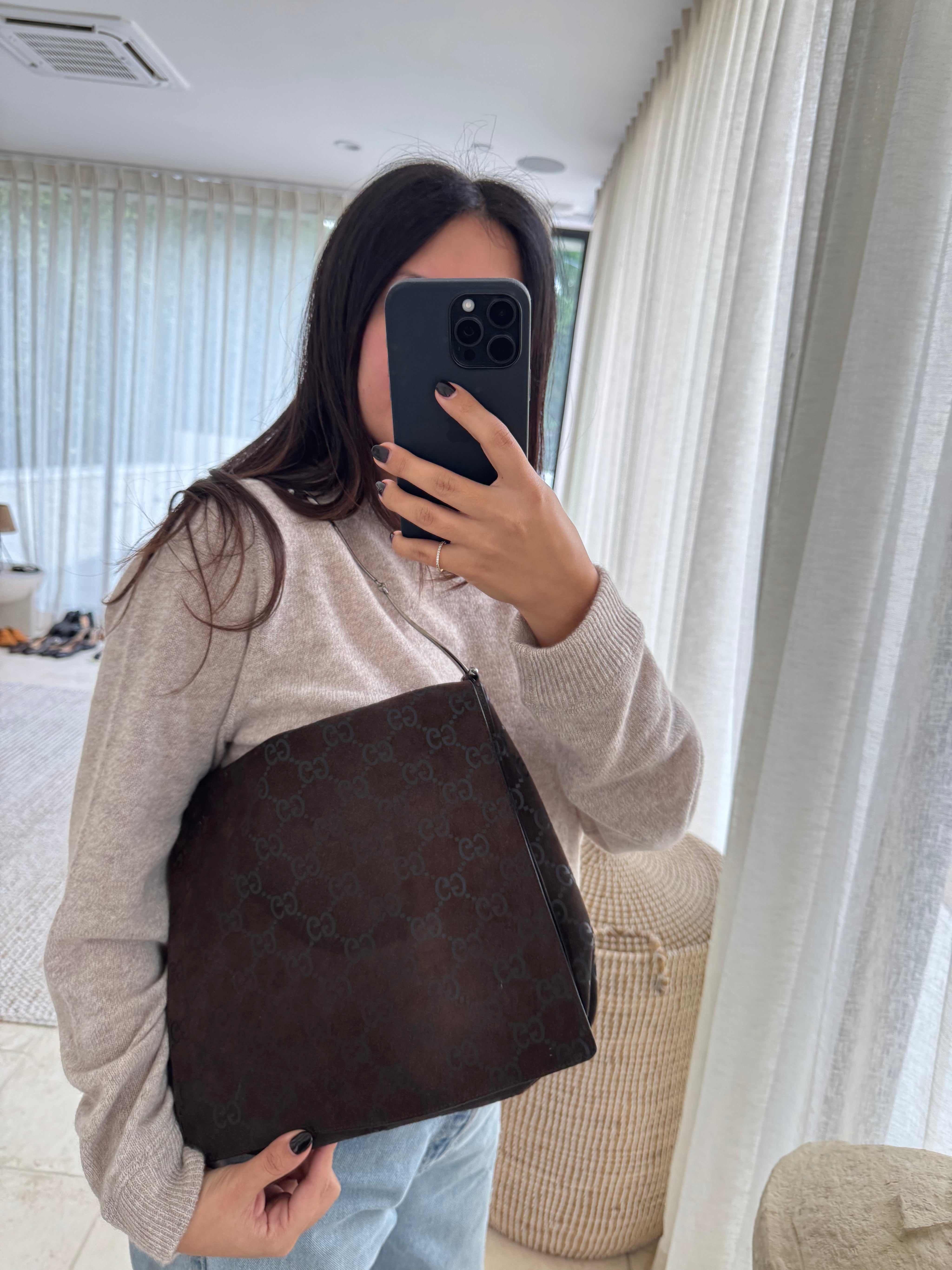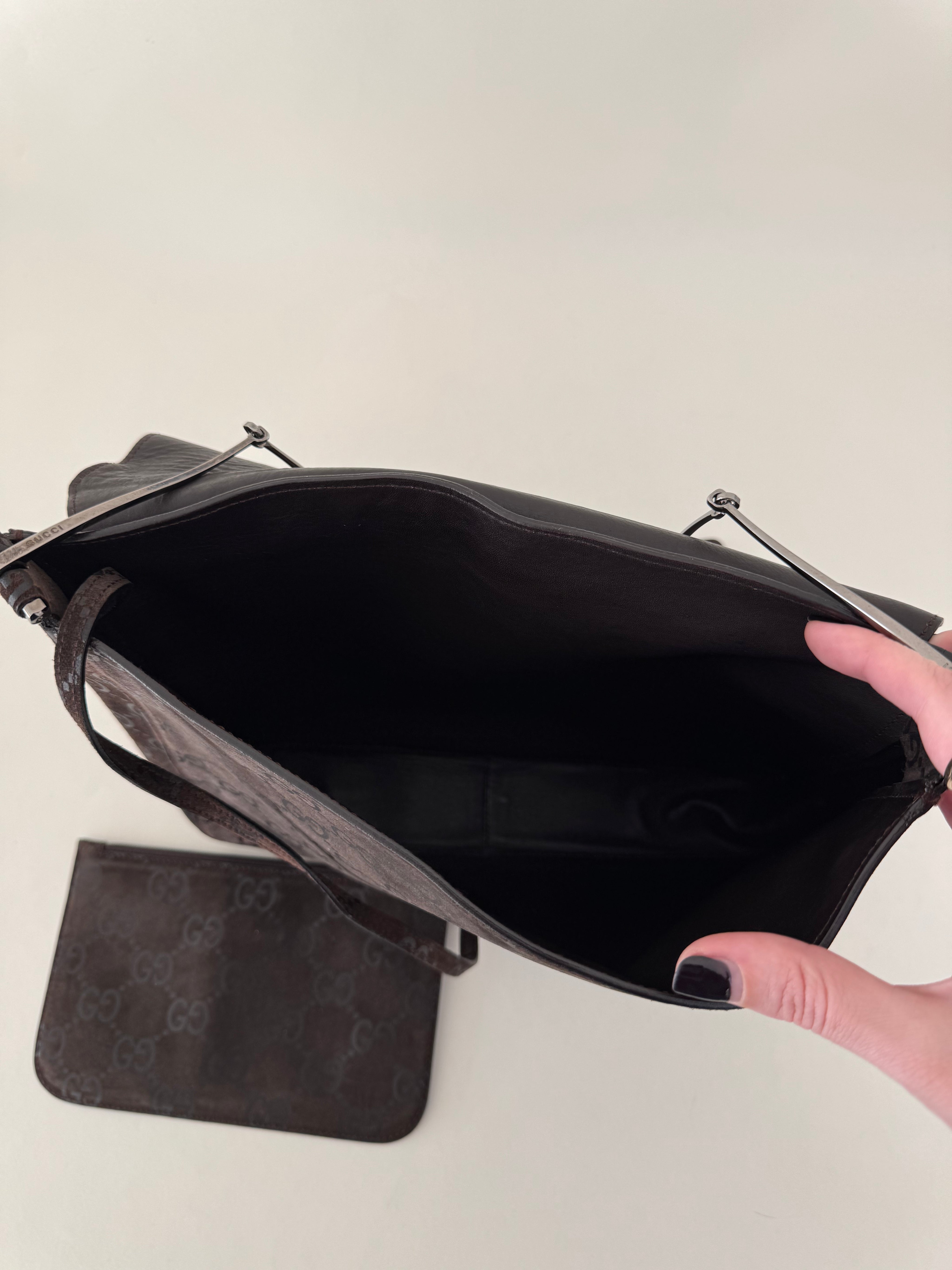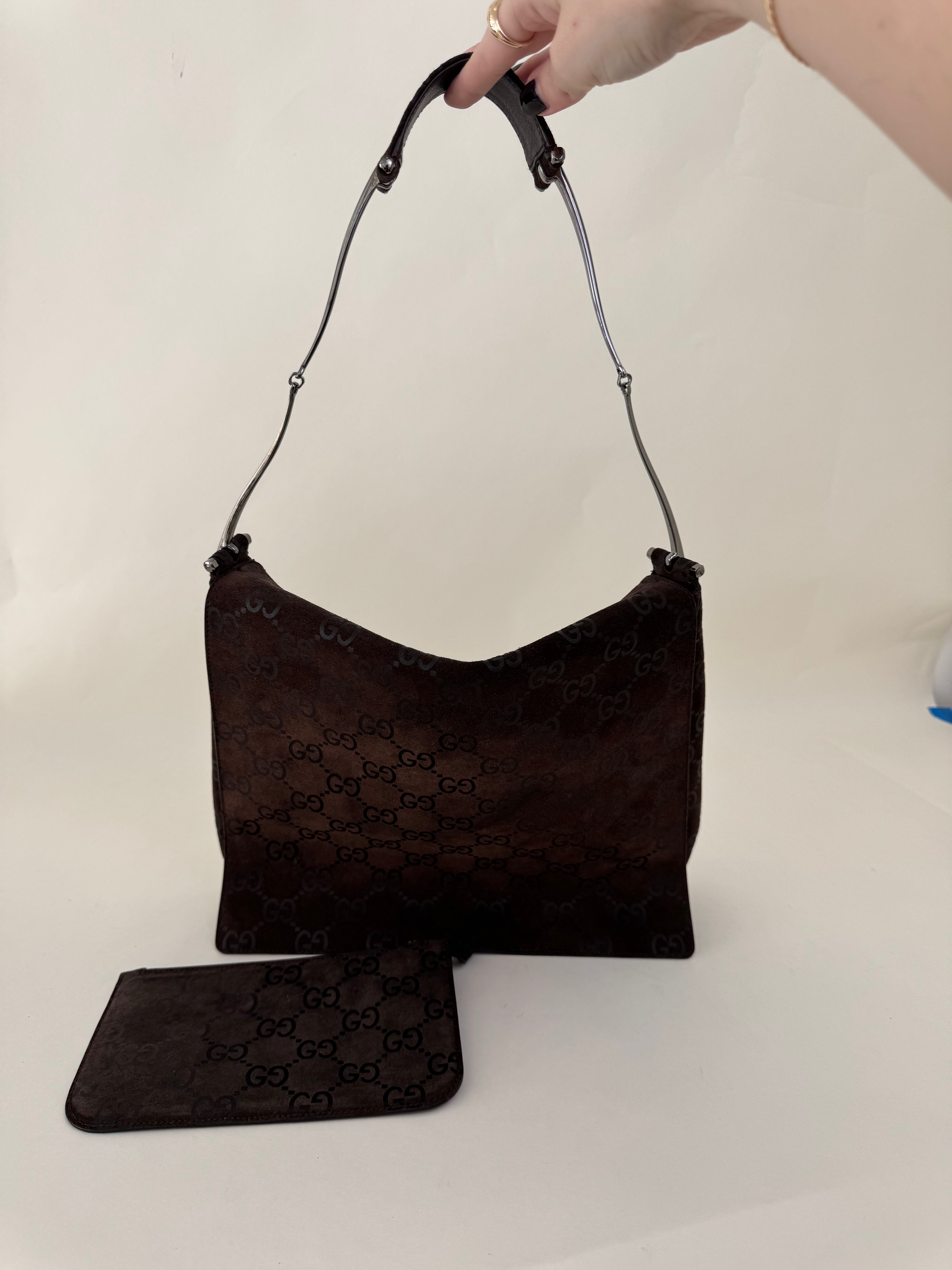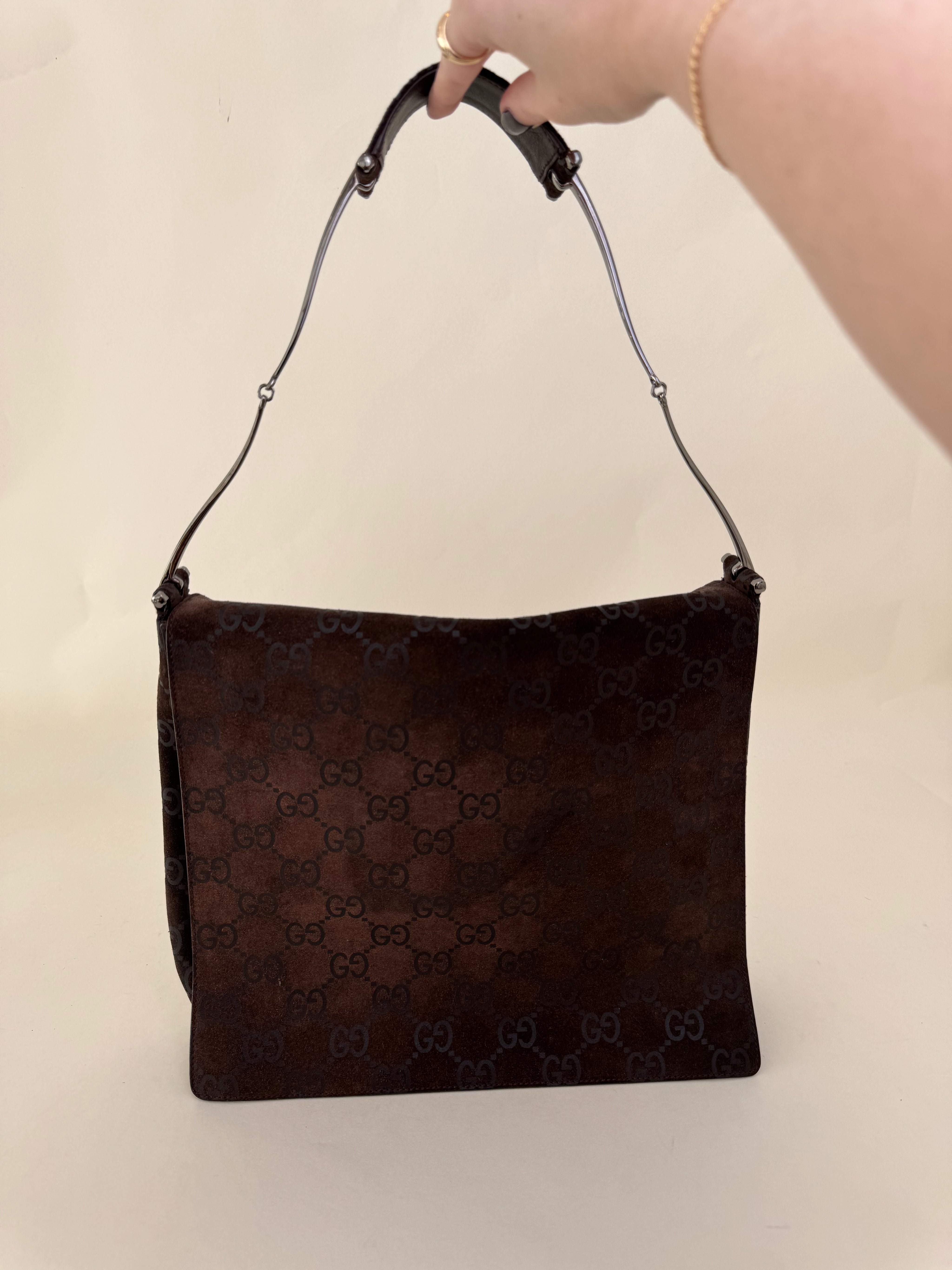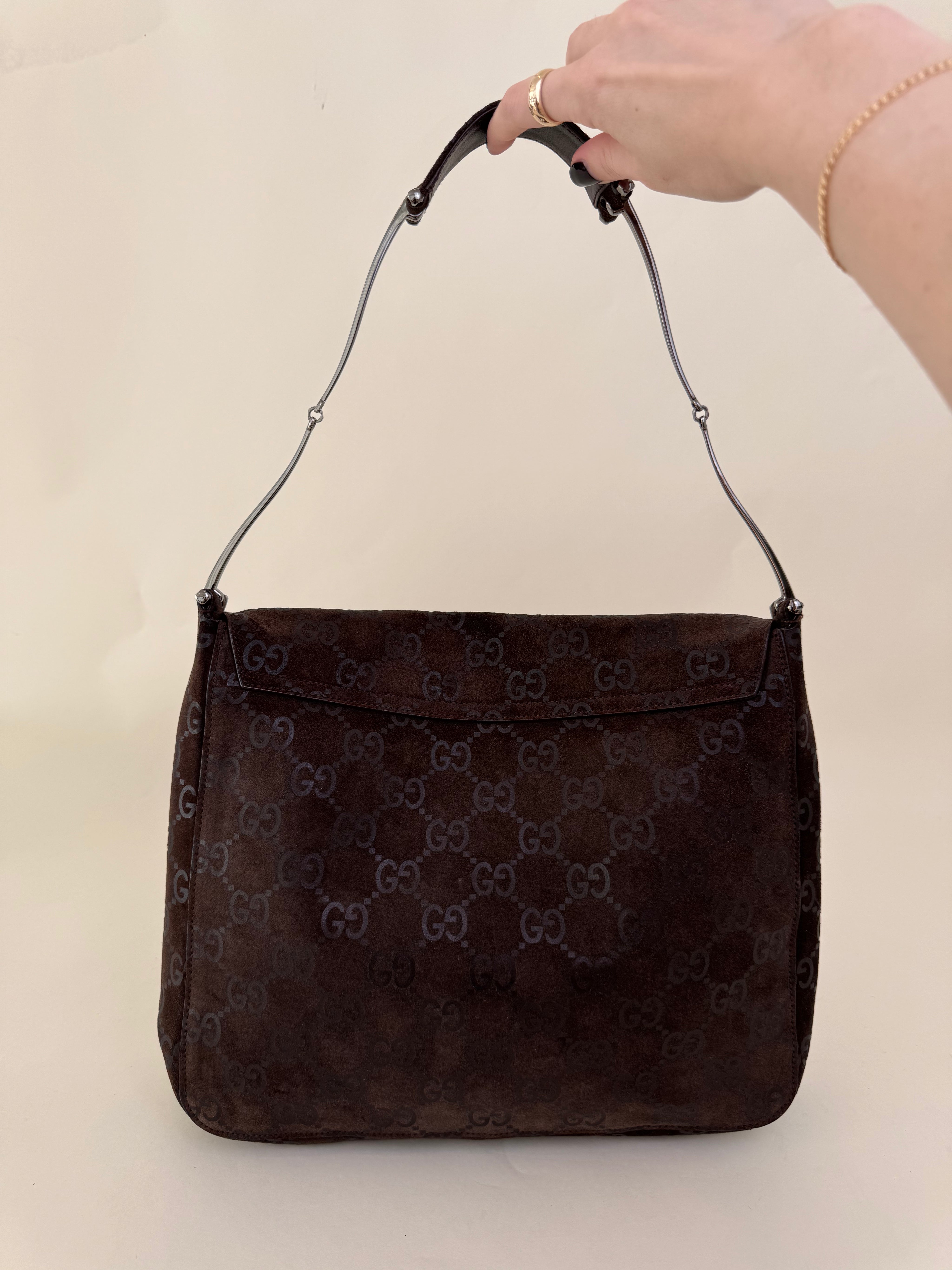 Gucci Tom Ford Slim Horsebit GG Brown Suede Flap Shoulder Bag