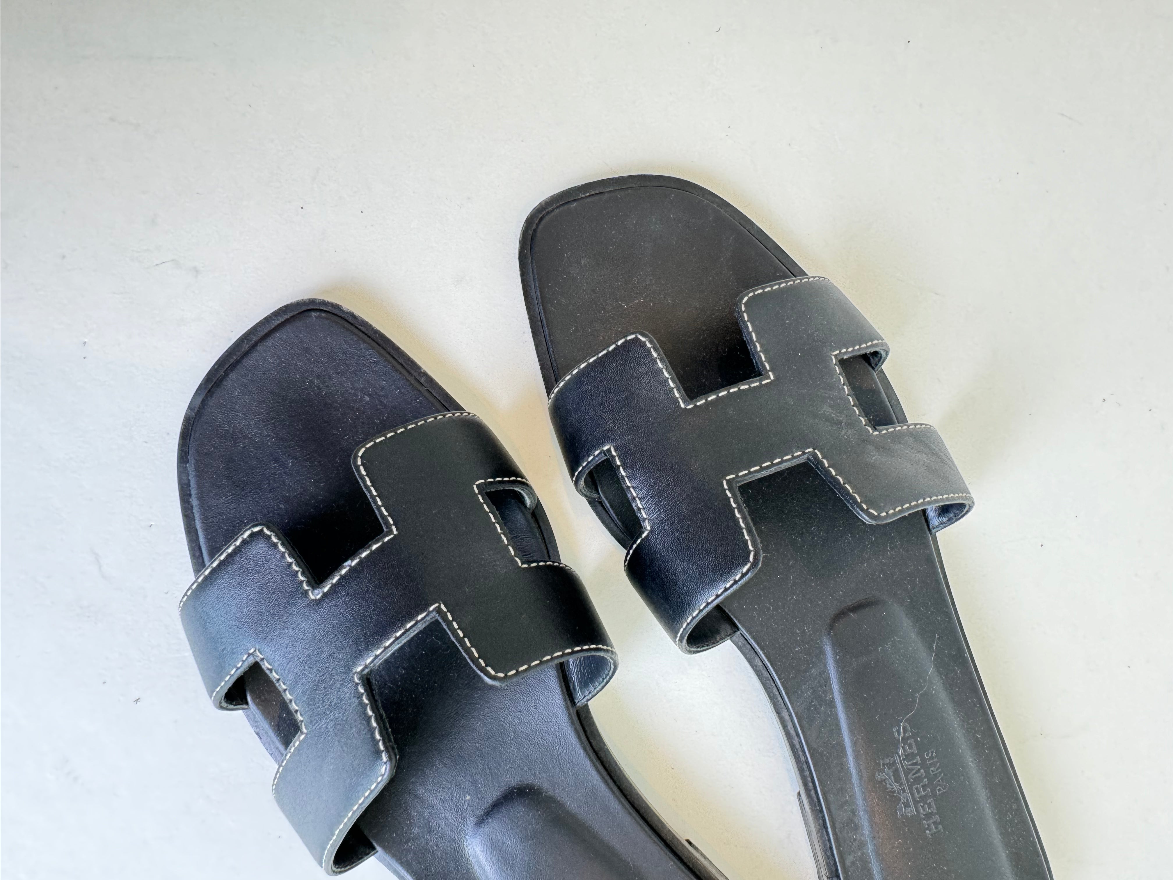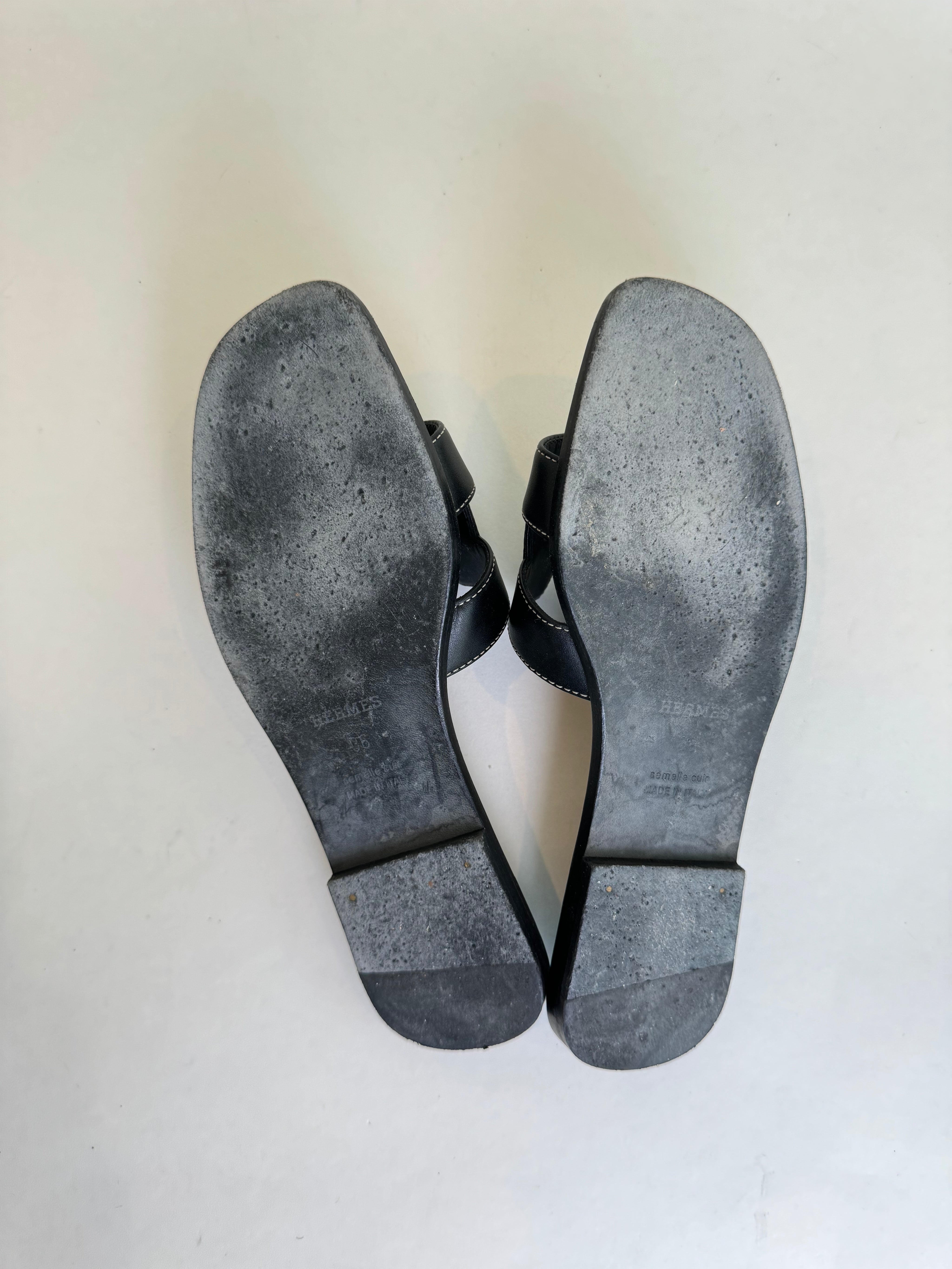 Hermes Black Oran Sandal 36