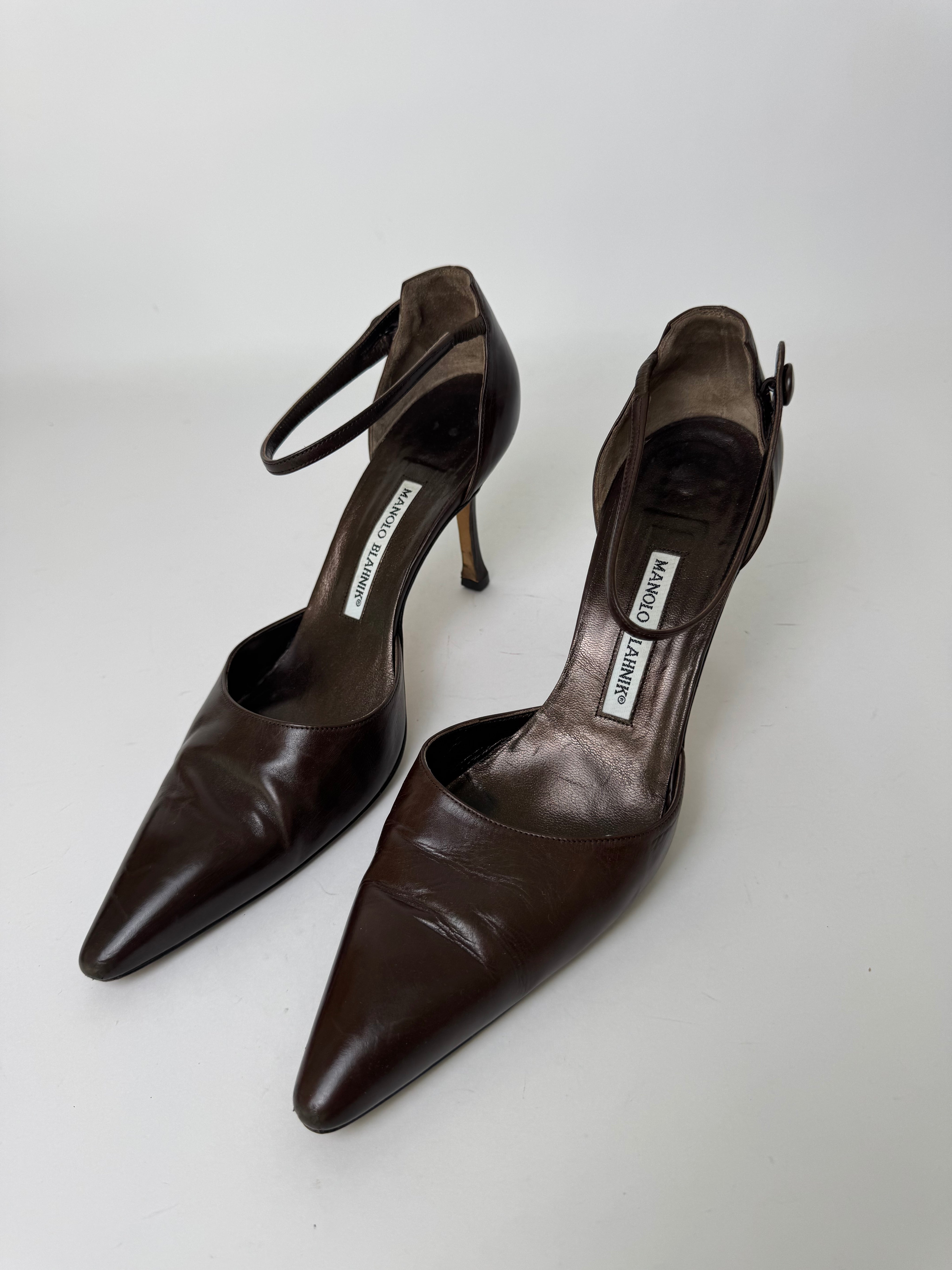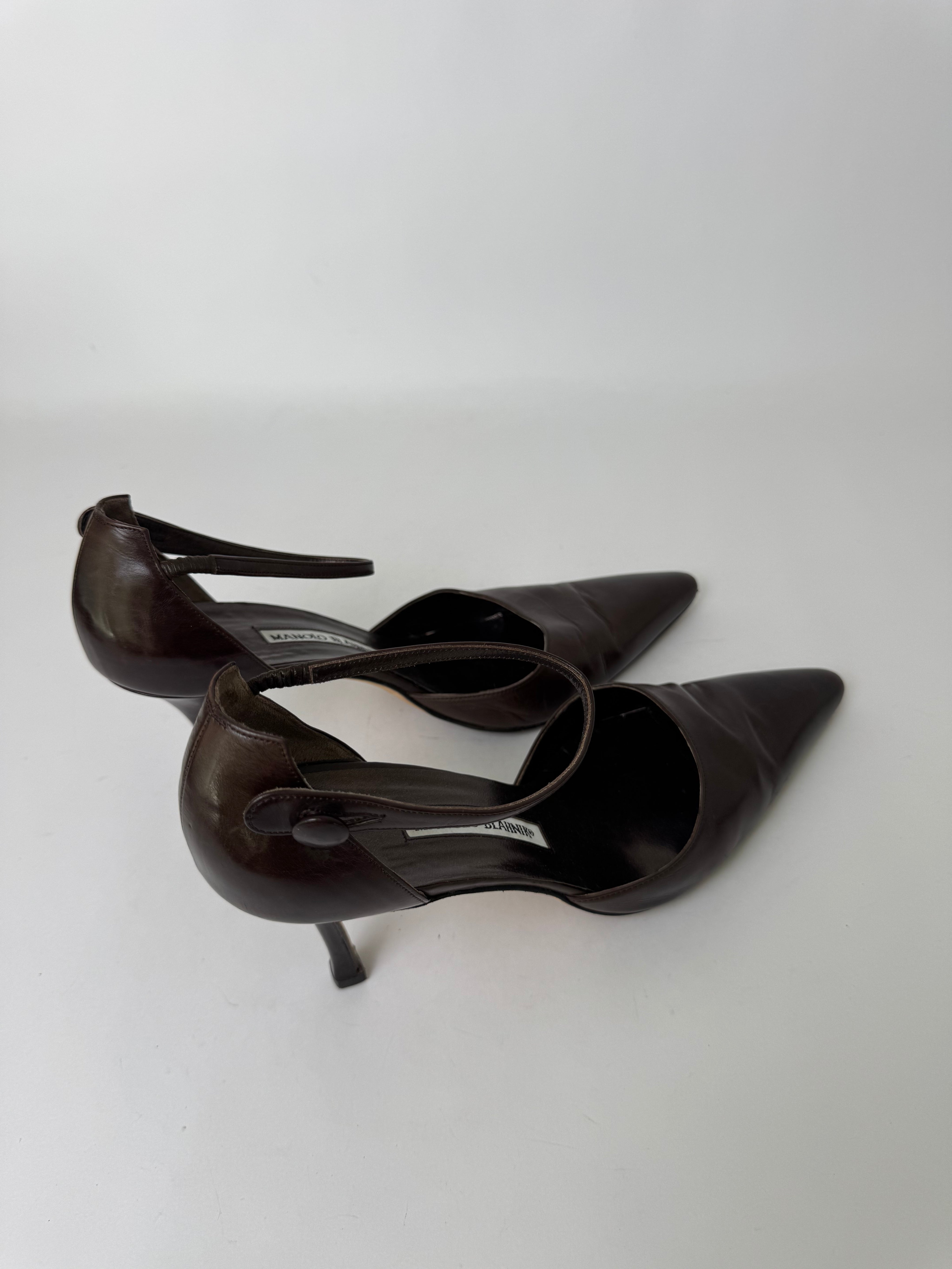 Manolo Blahnik Brown Leather D’Orsay Pumps 39.5