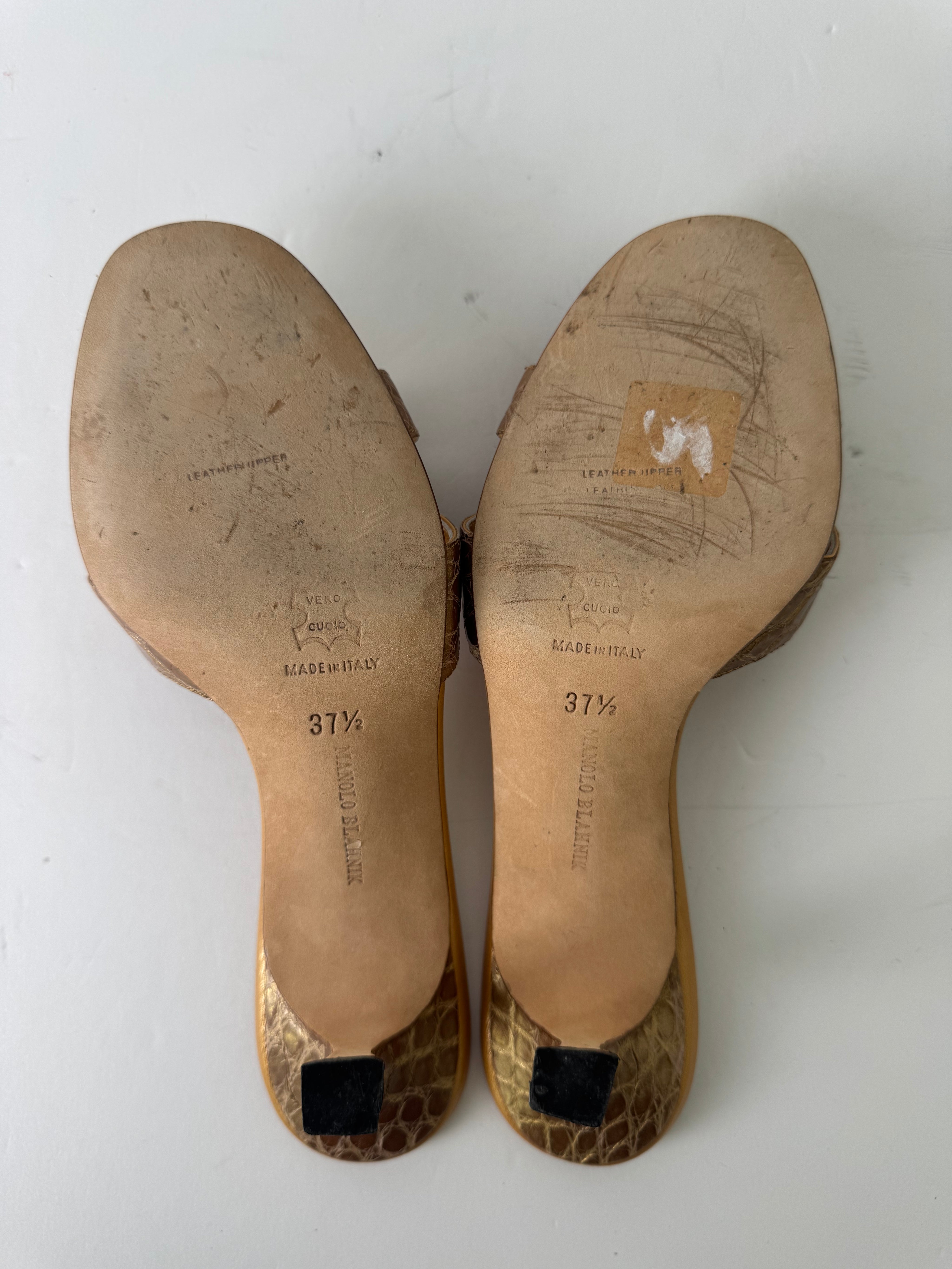 Manolo Blahnik Vintage Croc Embossed Sandal Heel - 37.5