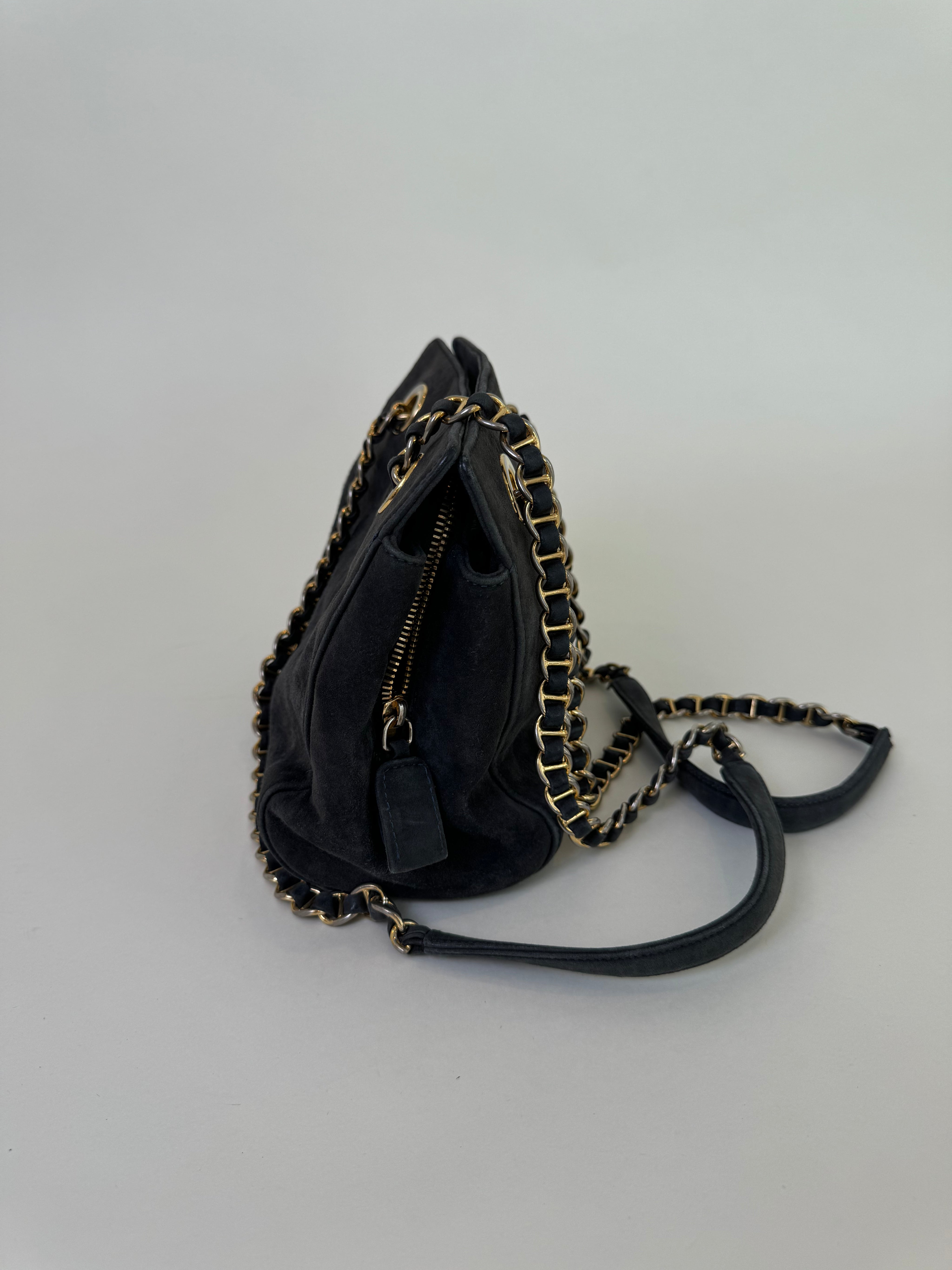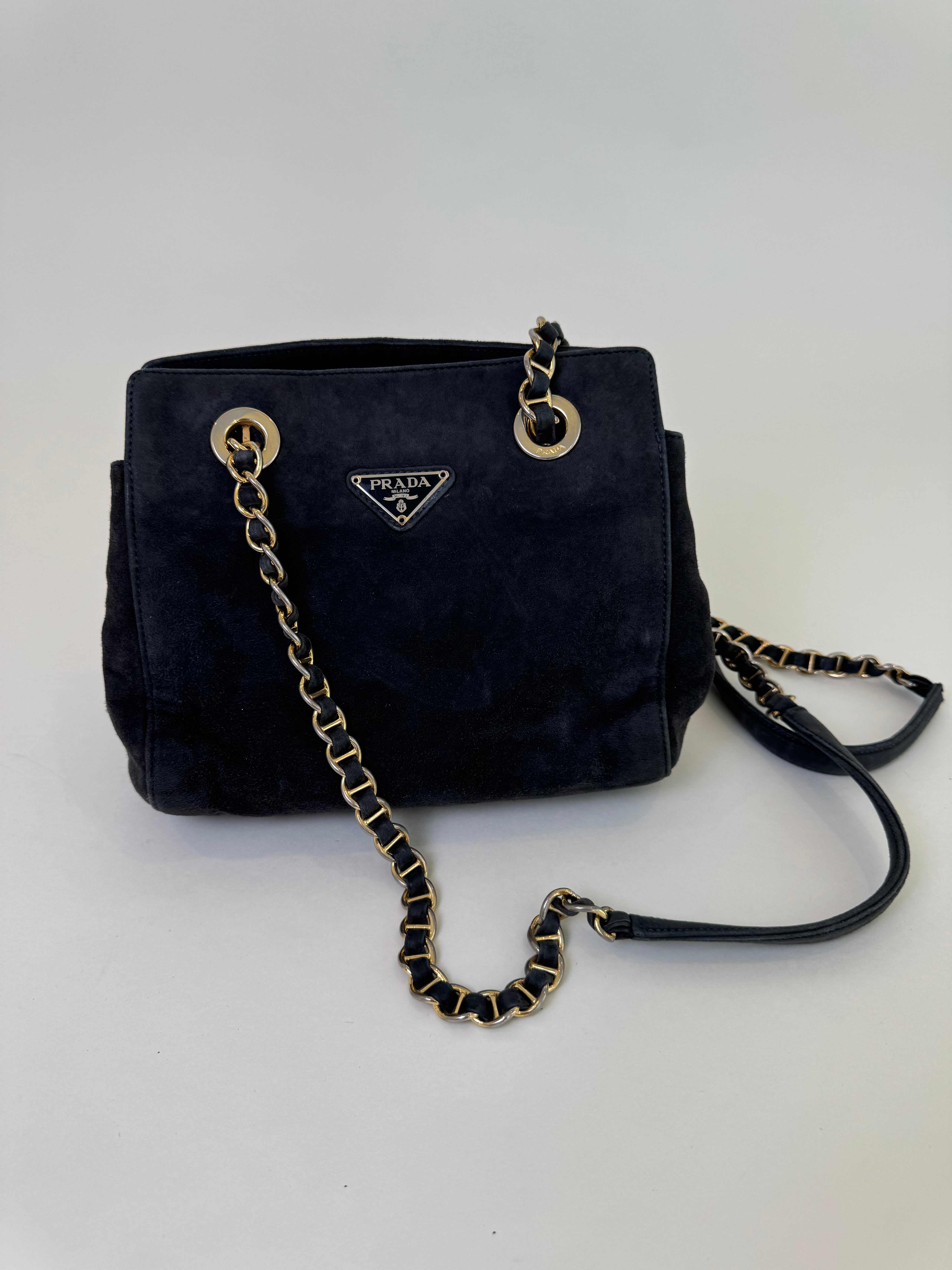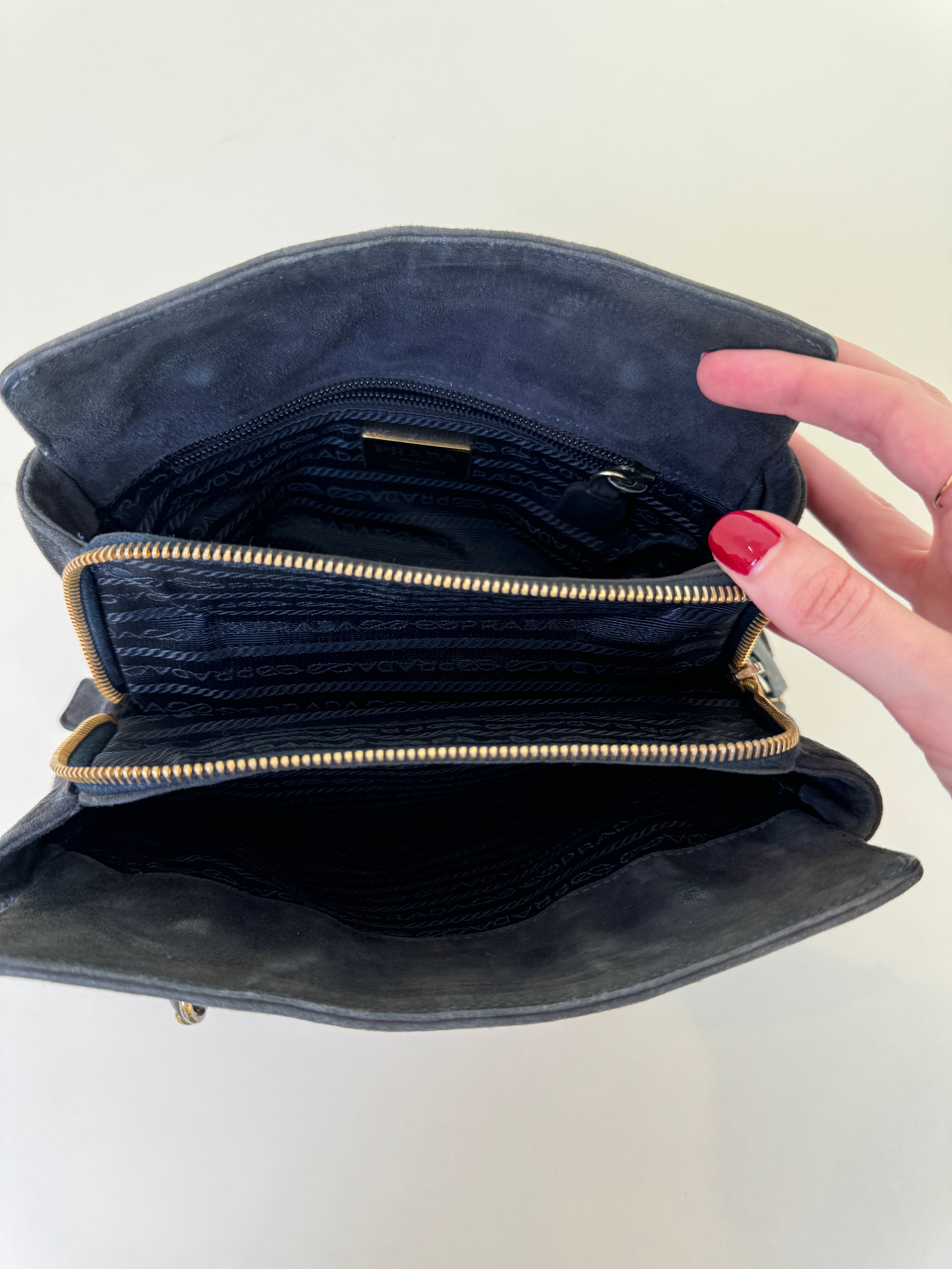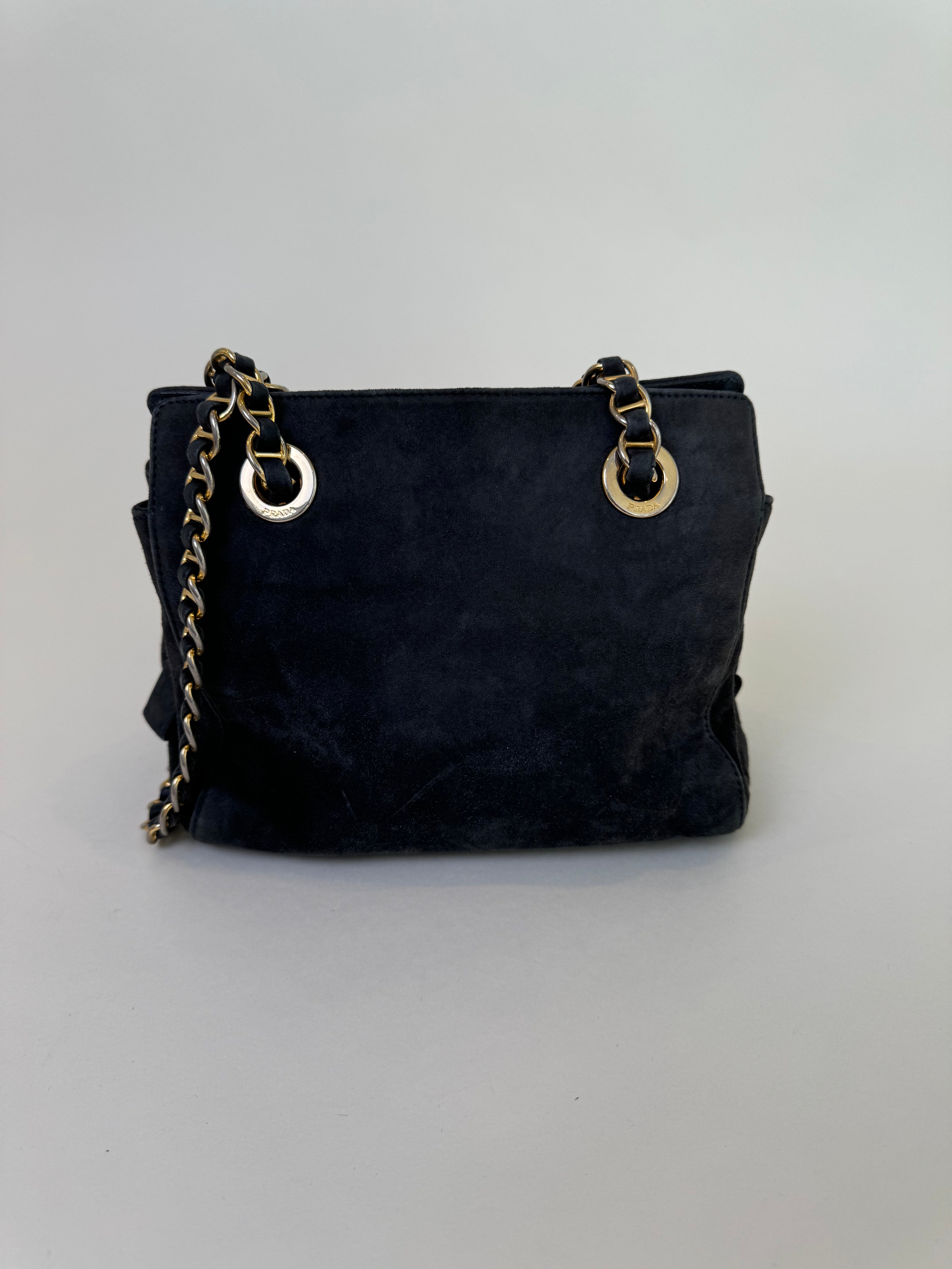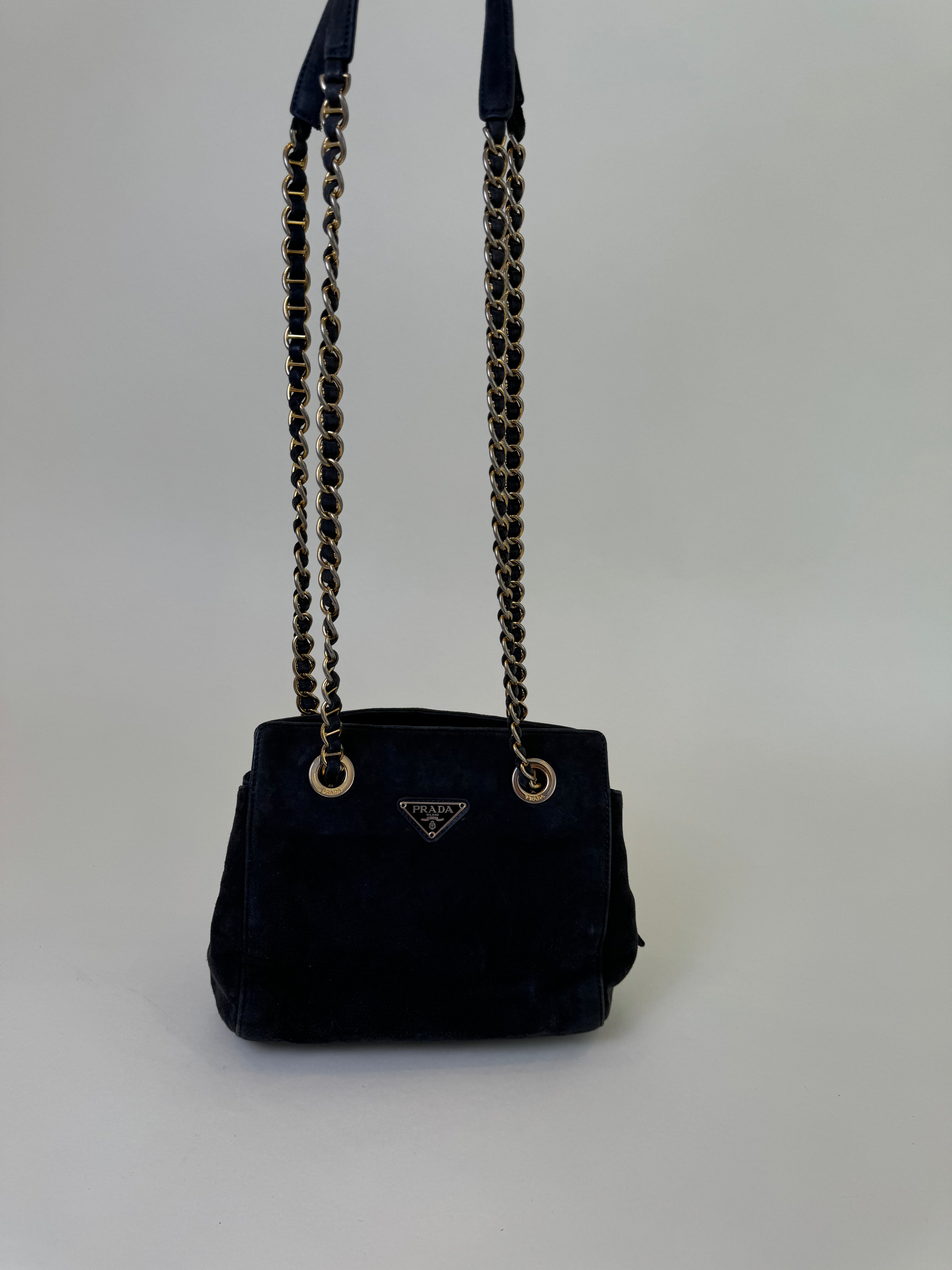 Prada Navy/Grey Suede Shoulder Bag