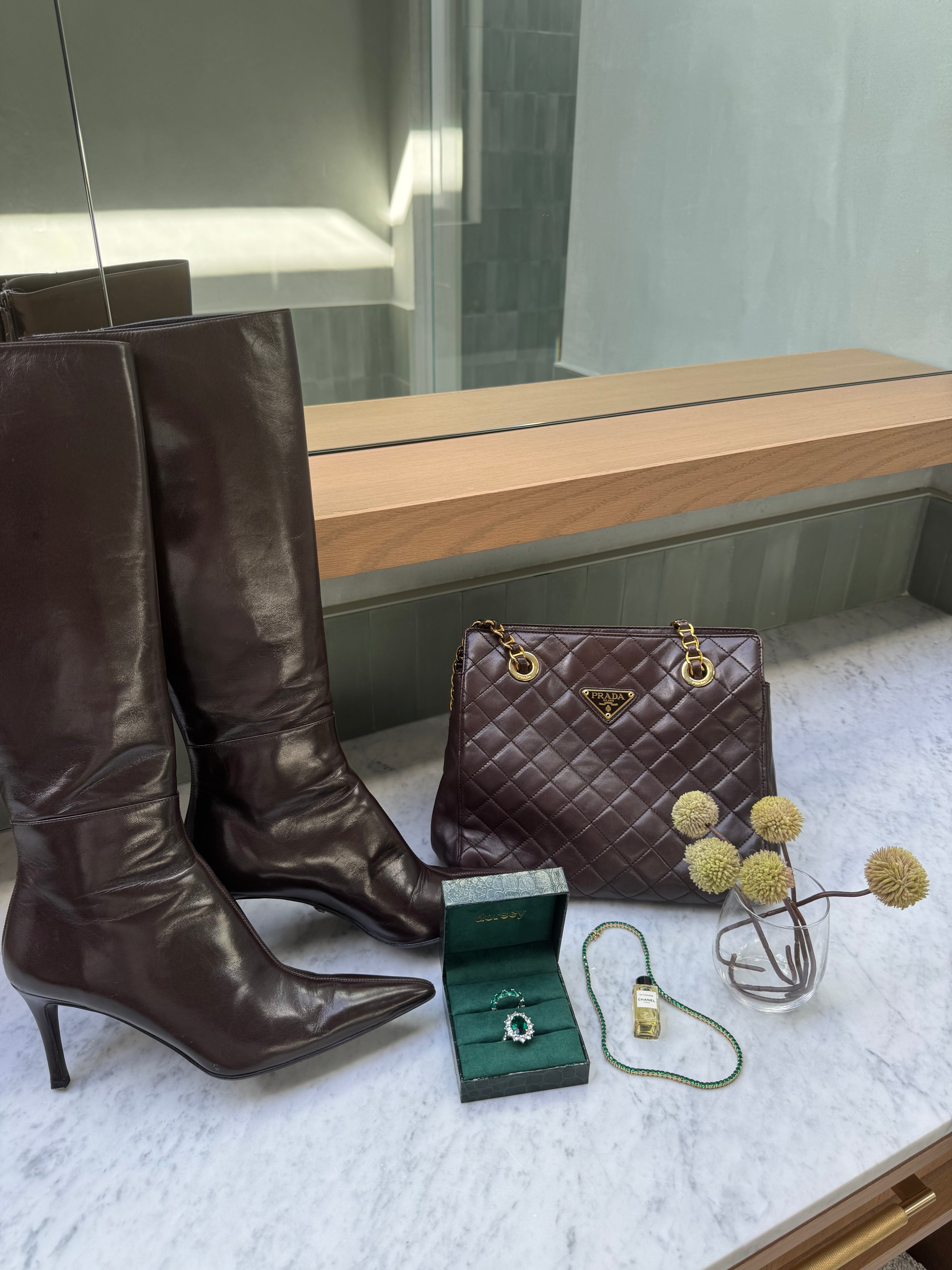 View Similar ProductsDark Brown Quilted-Pattern Exterior