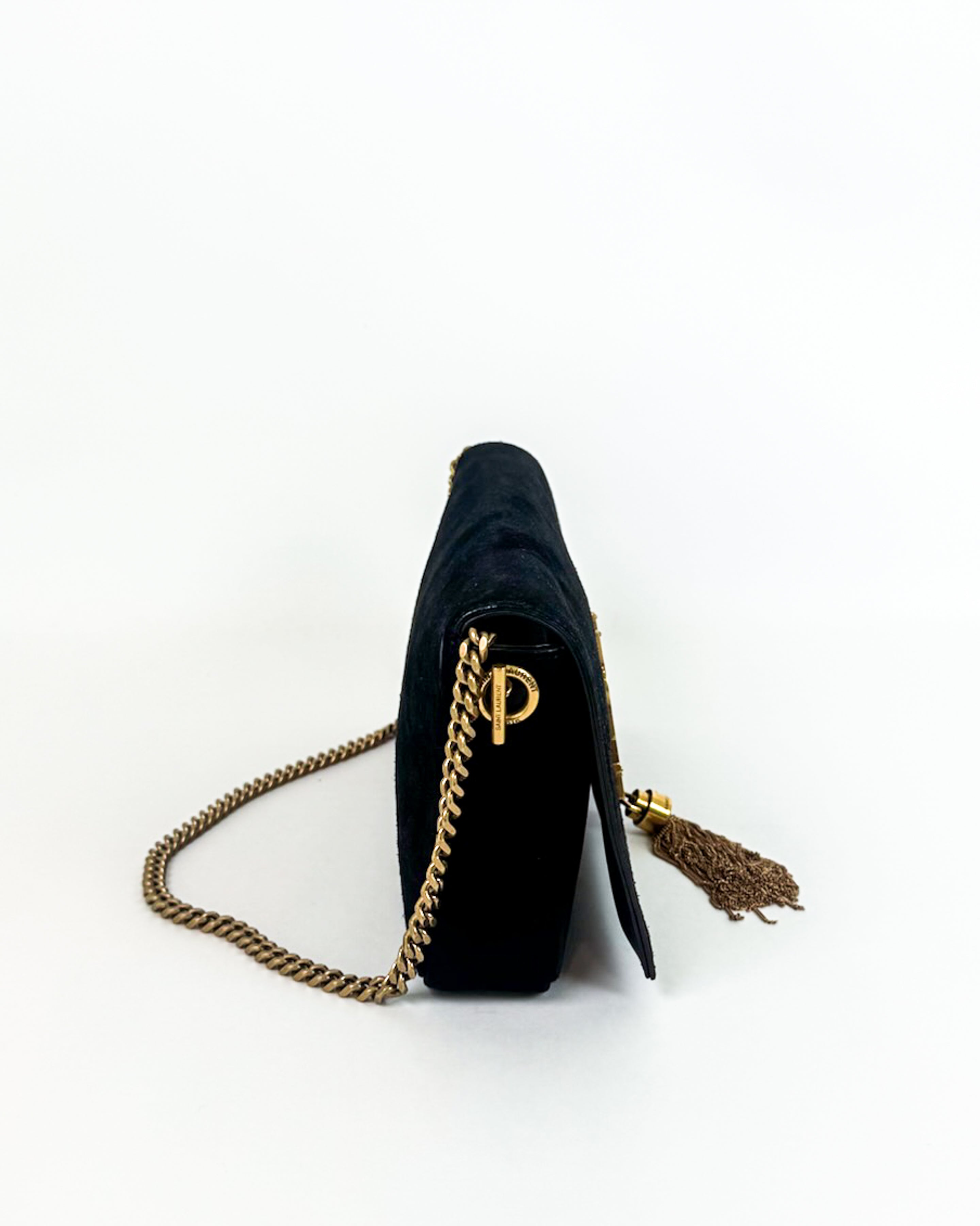 YSL Black Velvet Tassel Clutch/Shoulder Bag
