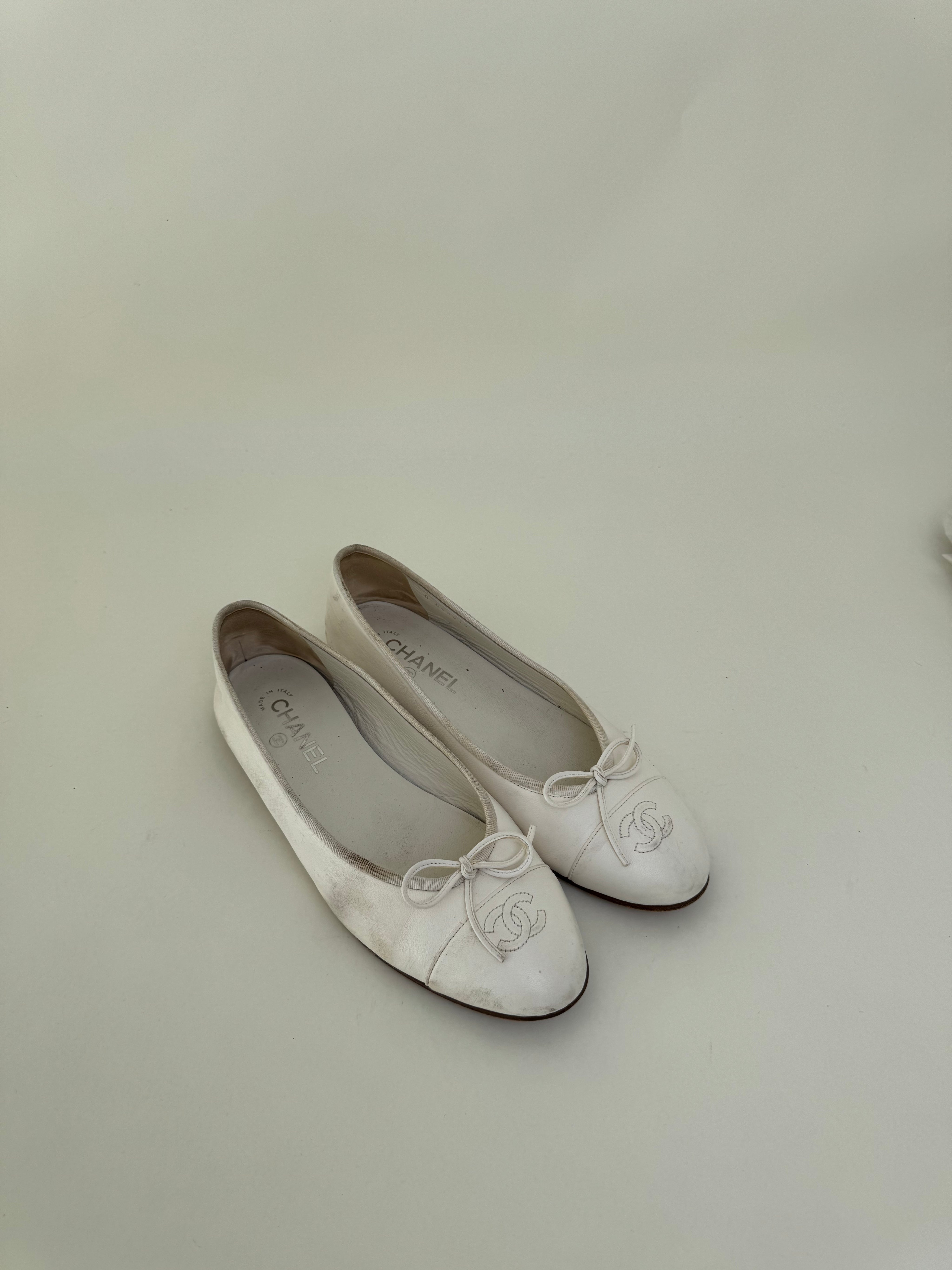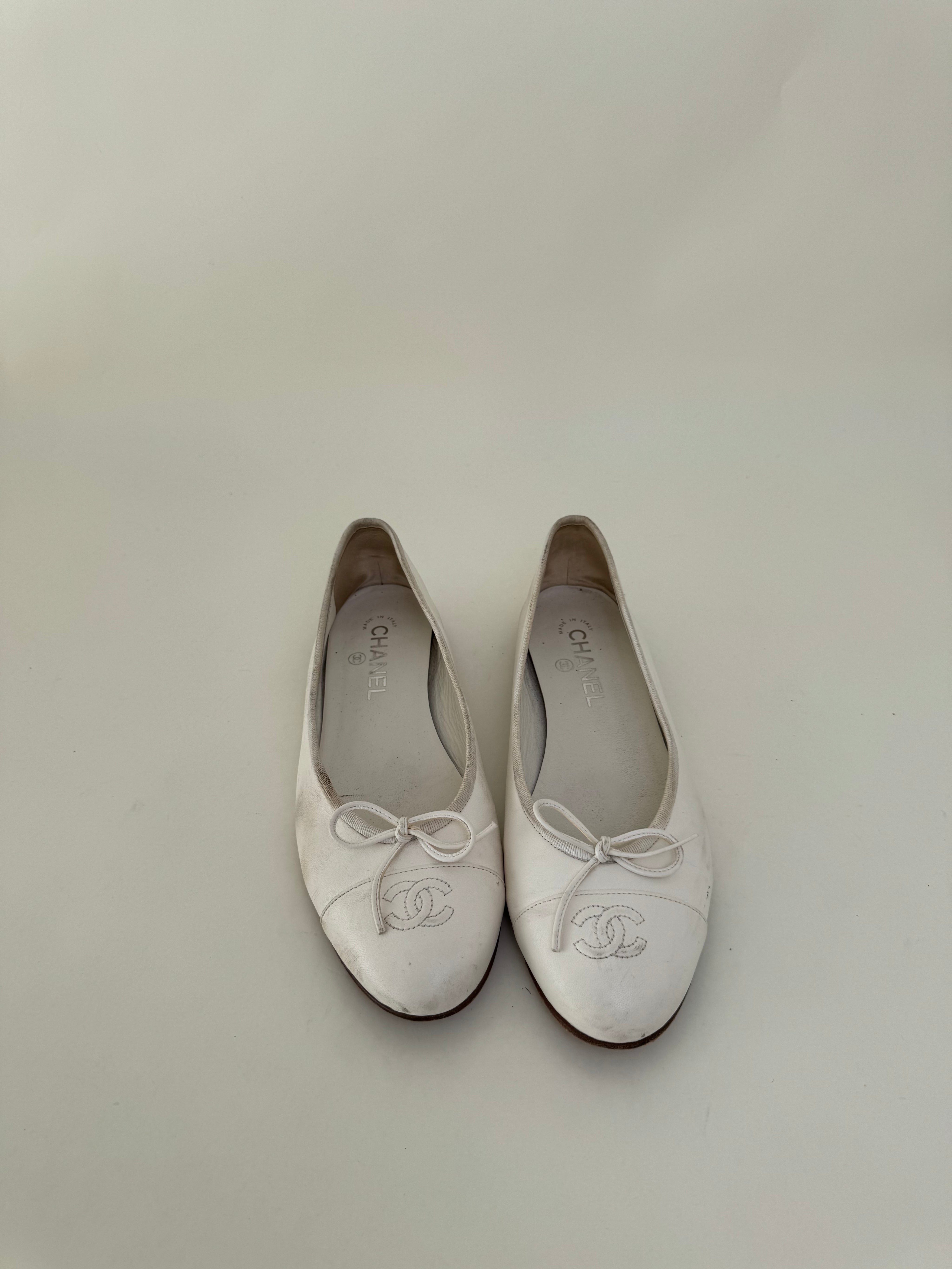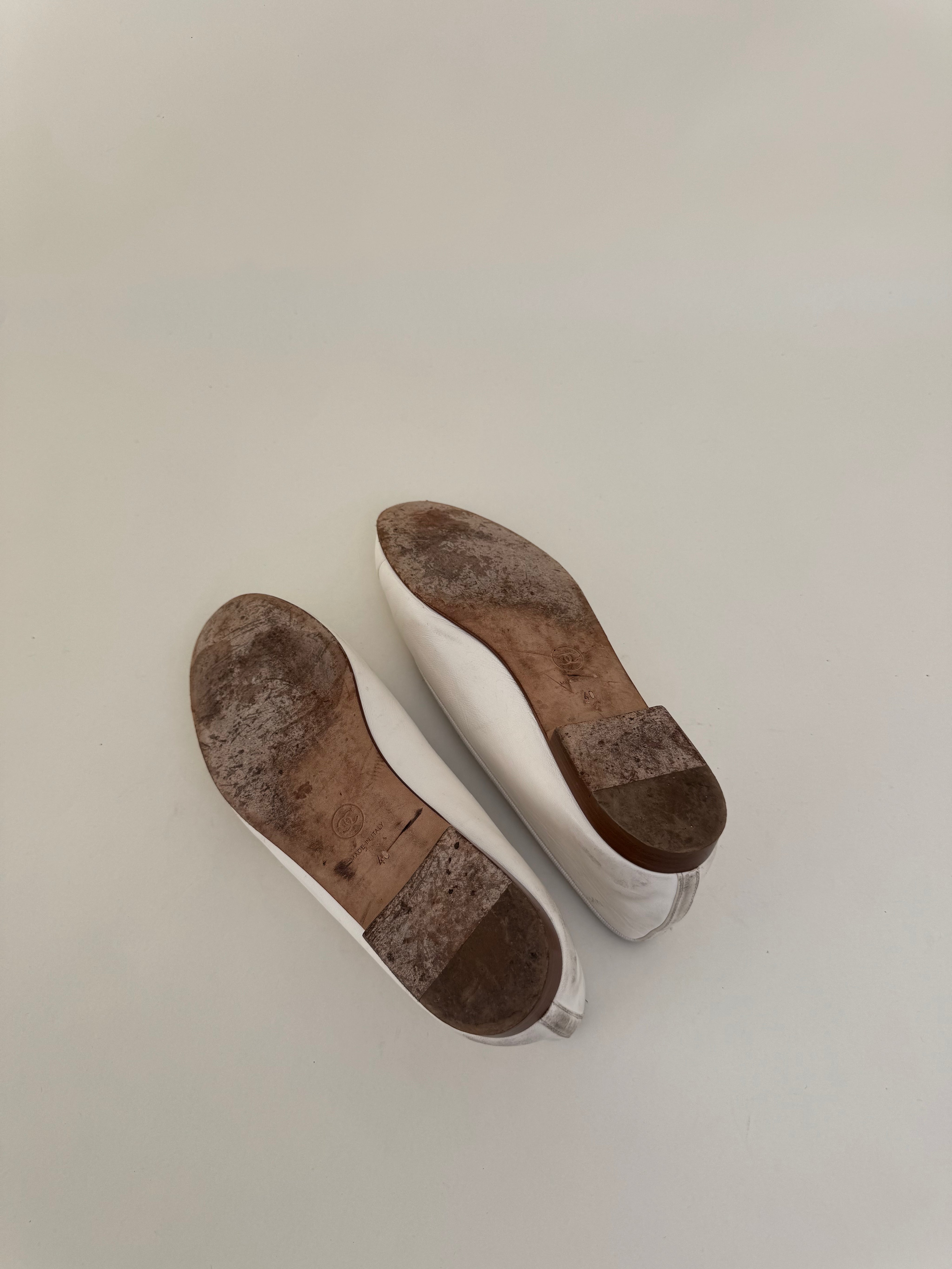 Chanel White Ballet Flats 40