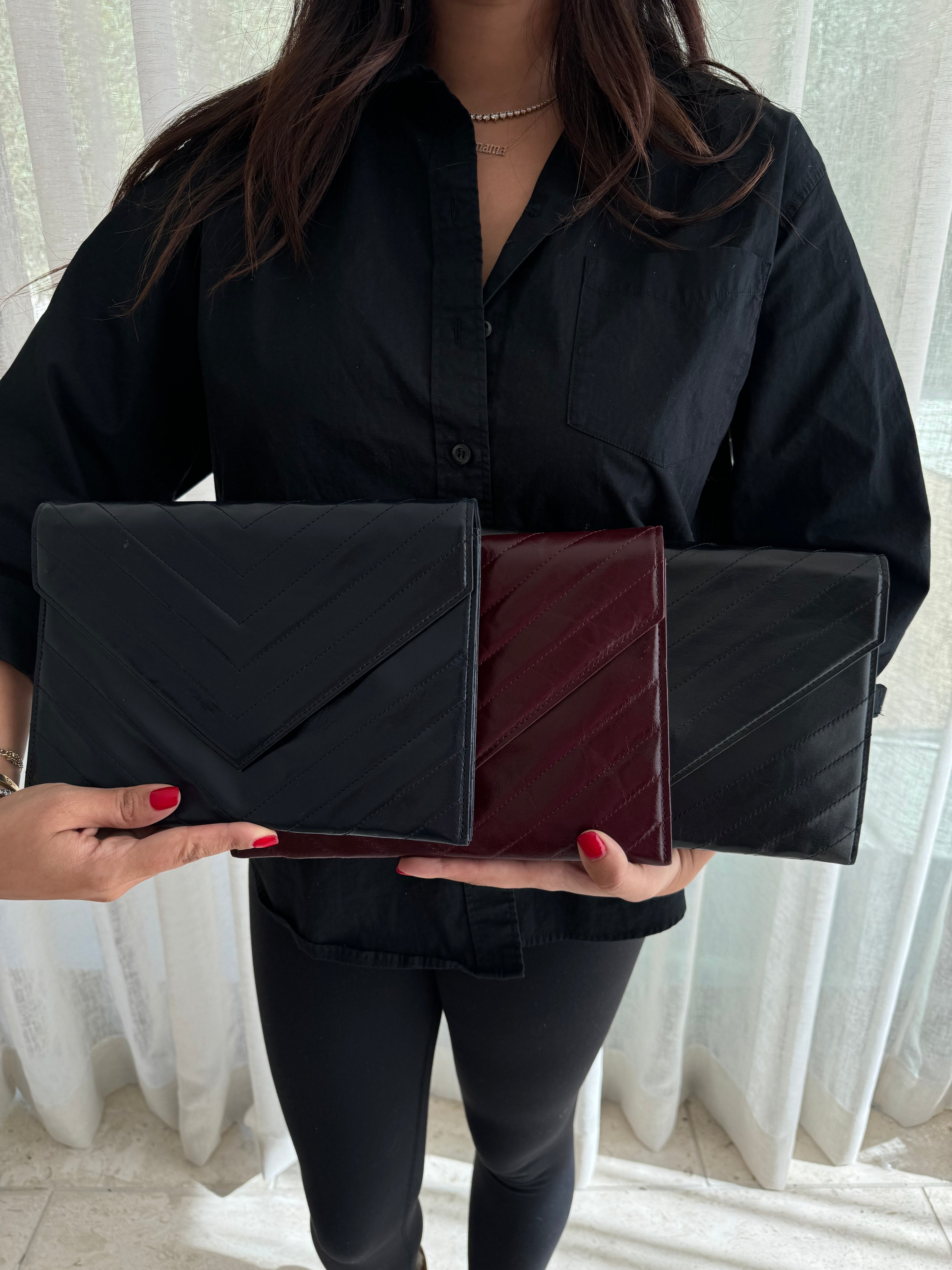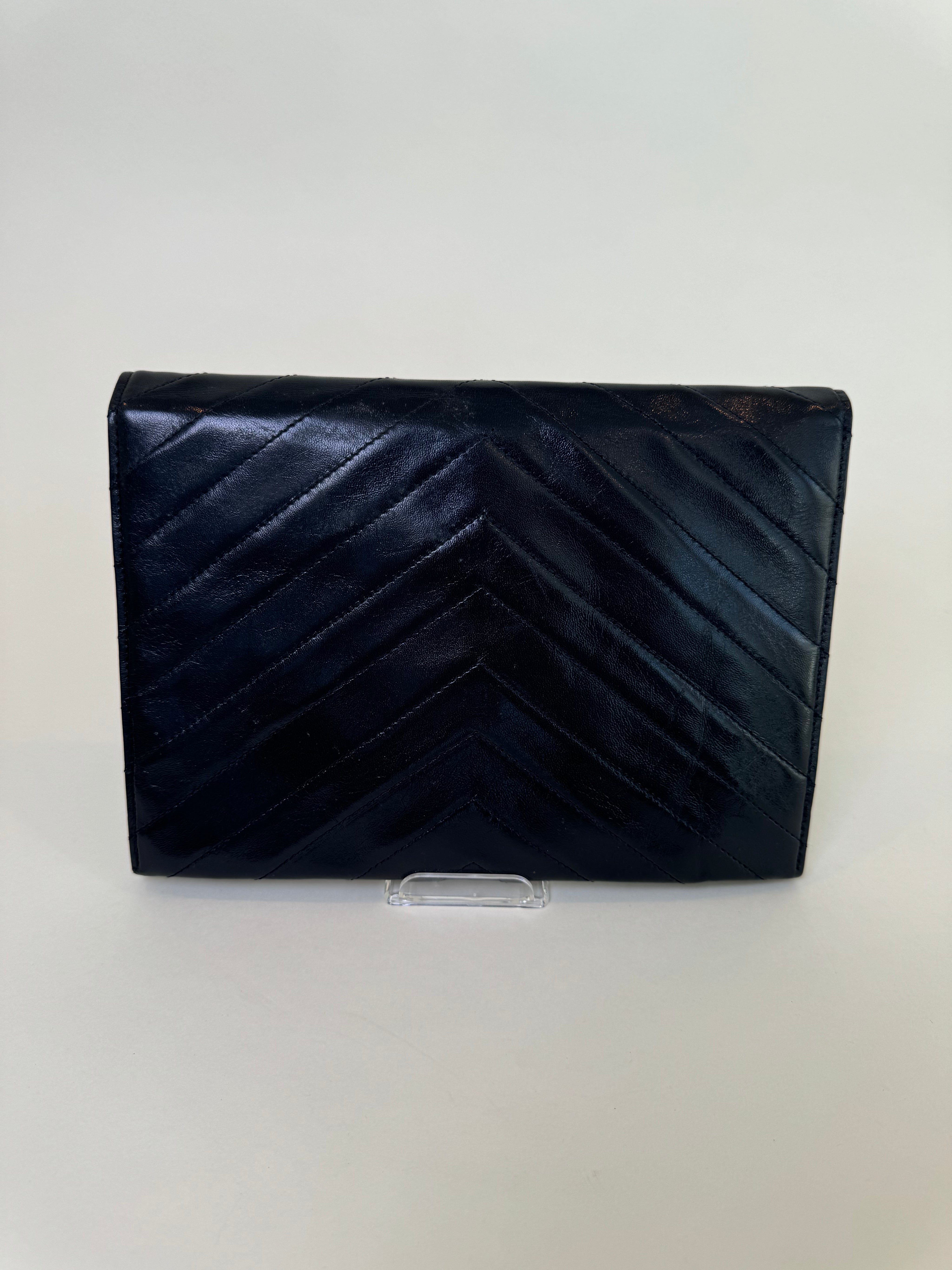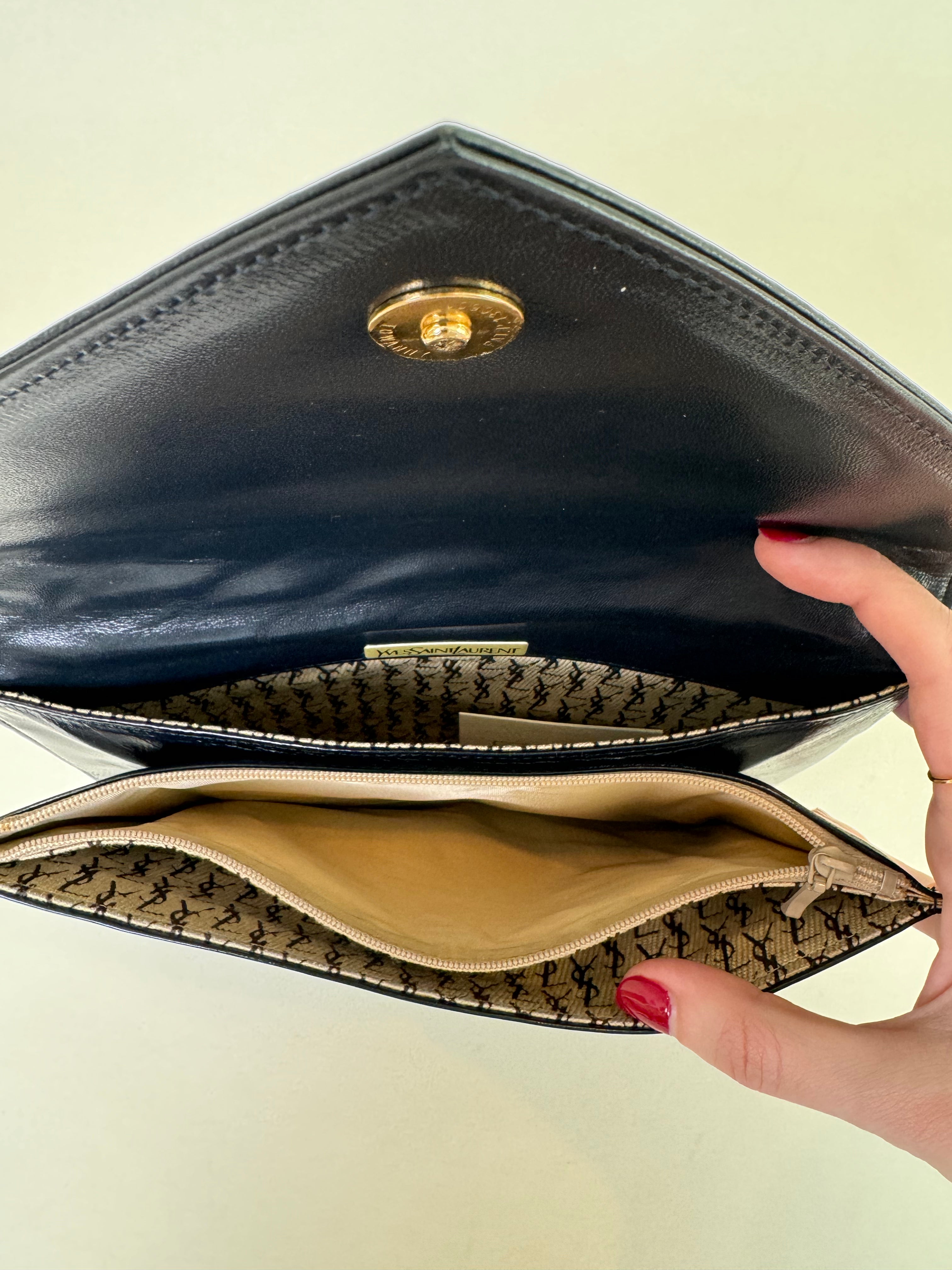 YSL Navy Leather Clutch
